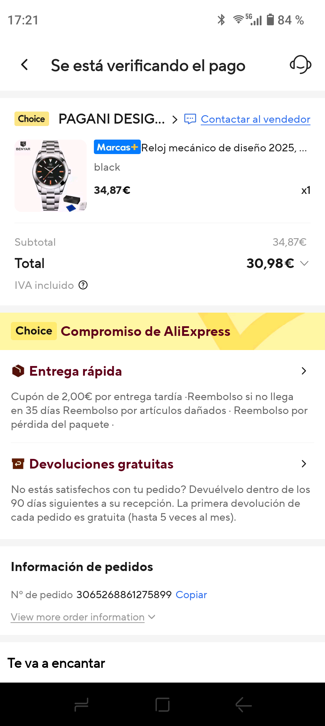Solamente el calibre han sido 36€, más caro que este reloj completo. Esperaré impaciente a ver si de primeras por lo menos lo envían! ![]()