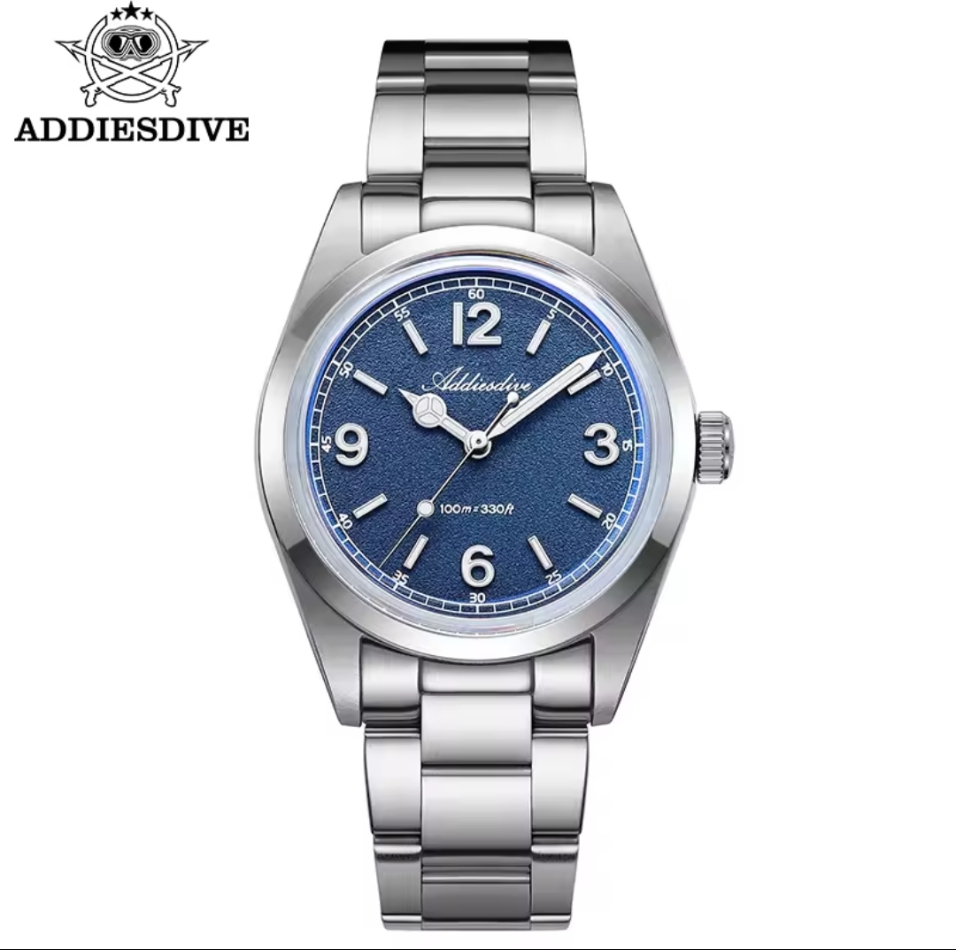 Reloj ADDIESDIVE exquisito GMT para hombre, regalo luminoso, reloj de acero resistente al agua 10Bar, regalo para hombre, reloj de cuarzo de cristal con espejo de burbuja AD2065