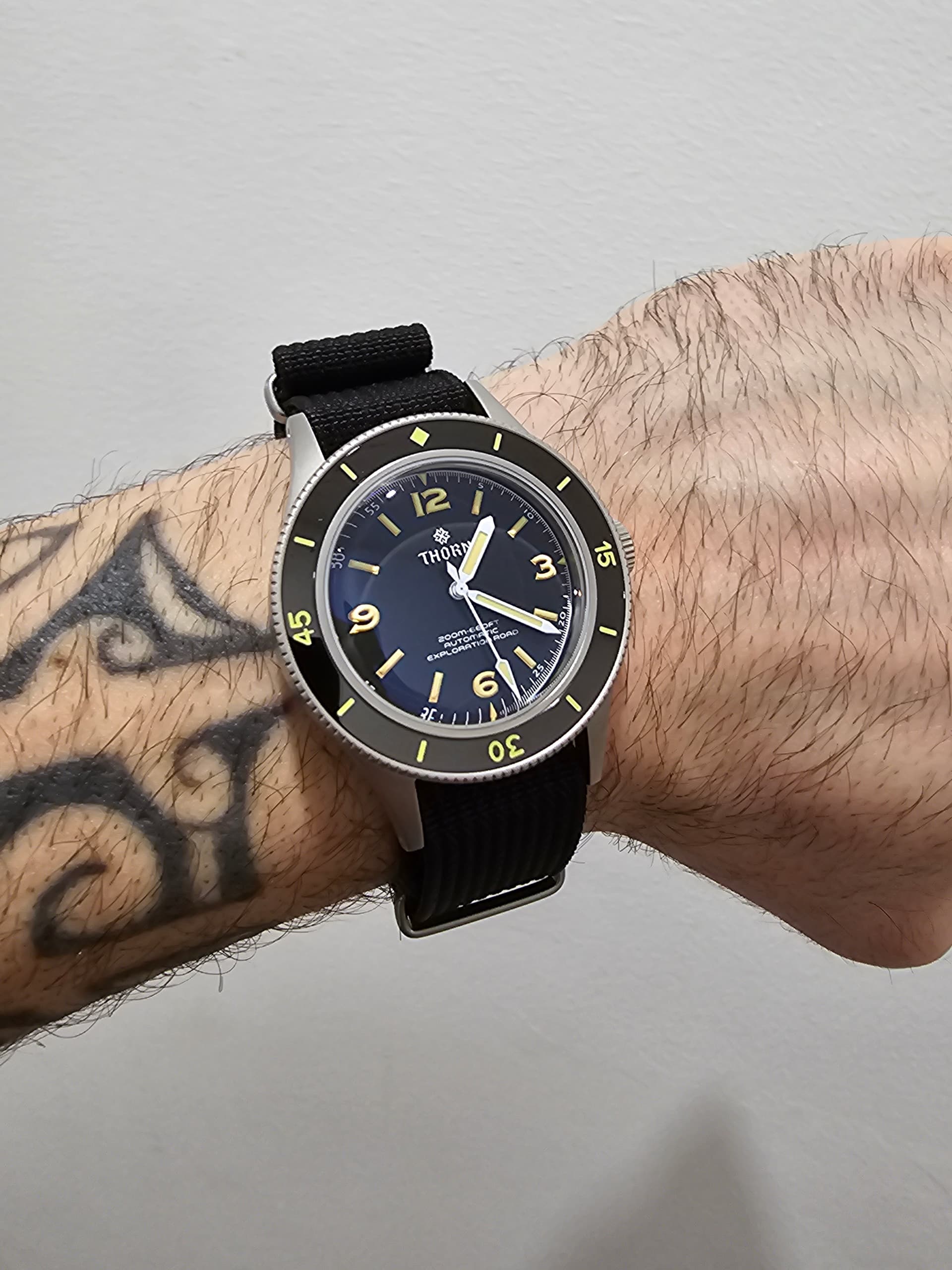 Leyendo comentarios hay para todos los gustos…unos dicen que esos 40mm del Thorn se ven muy pequeños en la muñeca, otros que está bien…a ver si algun compi con una muñeca de 19 parecida a la mia me sube alguna imagen con el puesto…que se que varios lo tenéis por el foro. ![]()