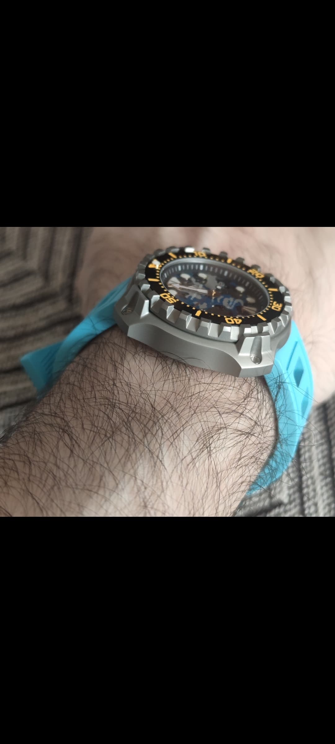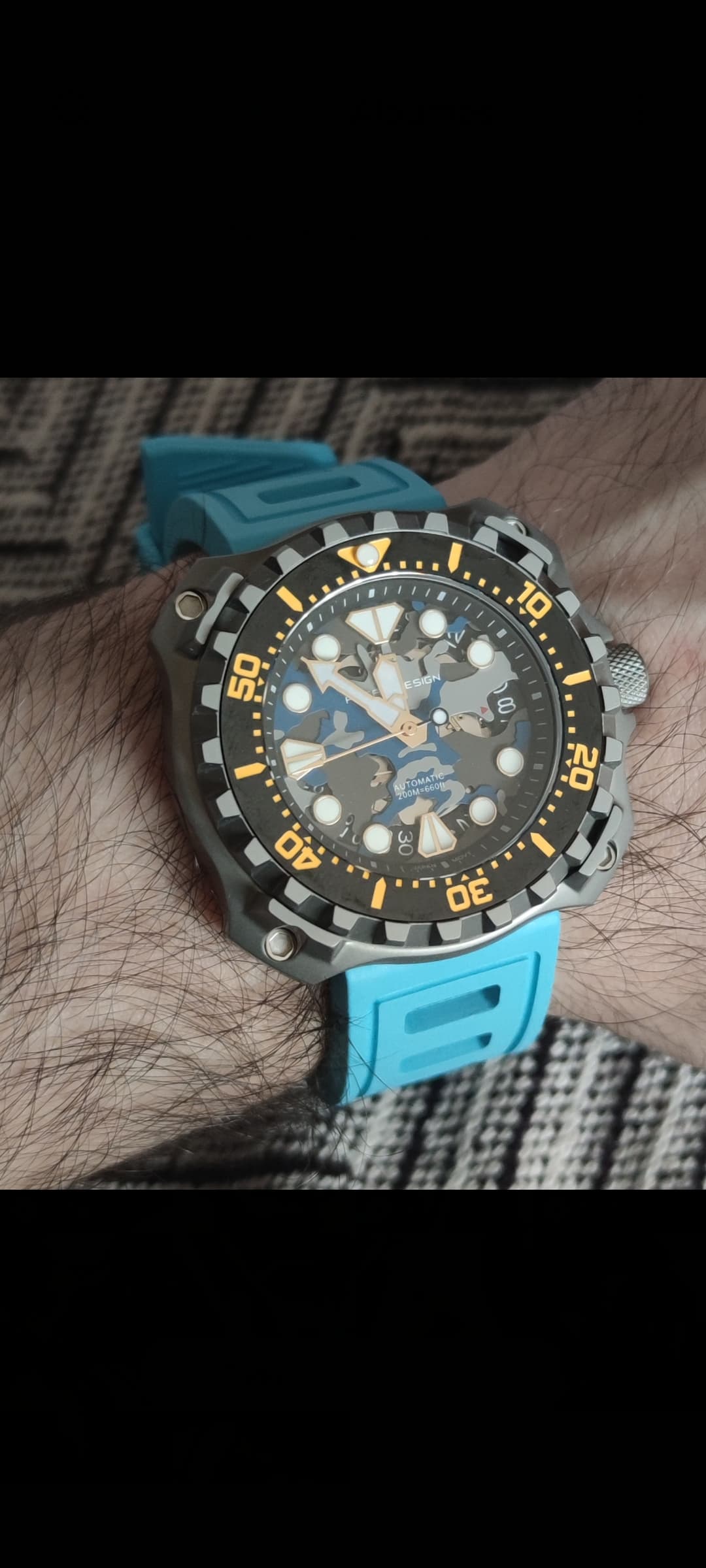 Es la segunda vez que me pongo la tanqueta, os recomiendo esta correa (la que tenía preparada para el deco timer, la famosa tipo isofrane que muchos hemos descubierto a raíz del hilo del forero @tertuliano) le encaja y le da una presencia que le faltaba ya que la que trae de serie es muy finita, con esta correa, su cristal de zafiro, bisel cerámico, 200 metros de resistencia al agua, trasera por impresión de aceite y su nh 35 hace que sea un relojazo por lo que vale actualmente aunque nosotros lo pillasemos algo más barato, lo único malo que la corona roza un poco pero se sube un poco y arreglado.
