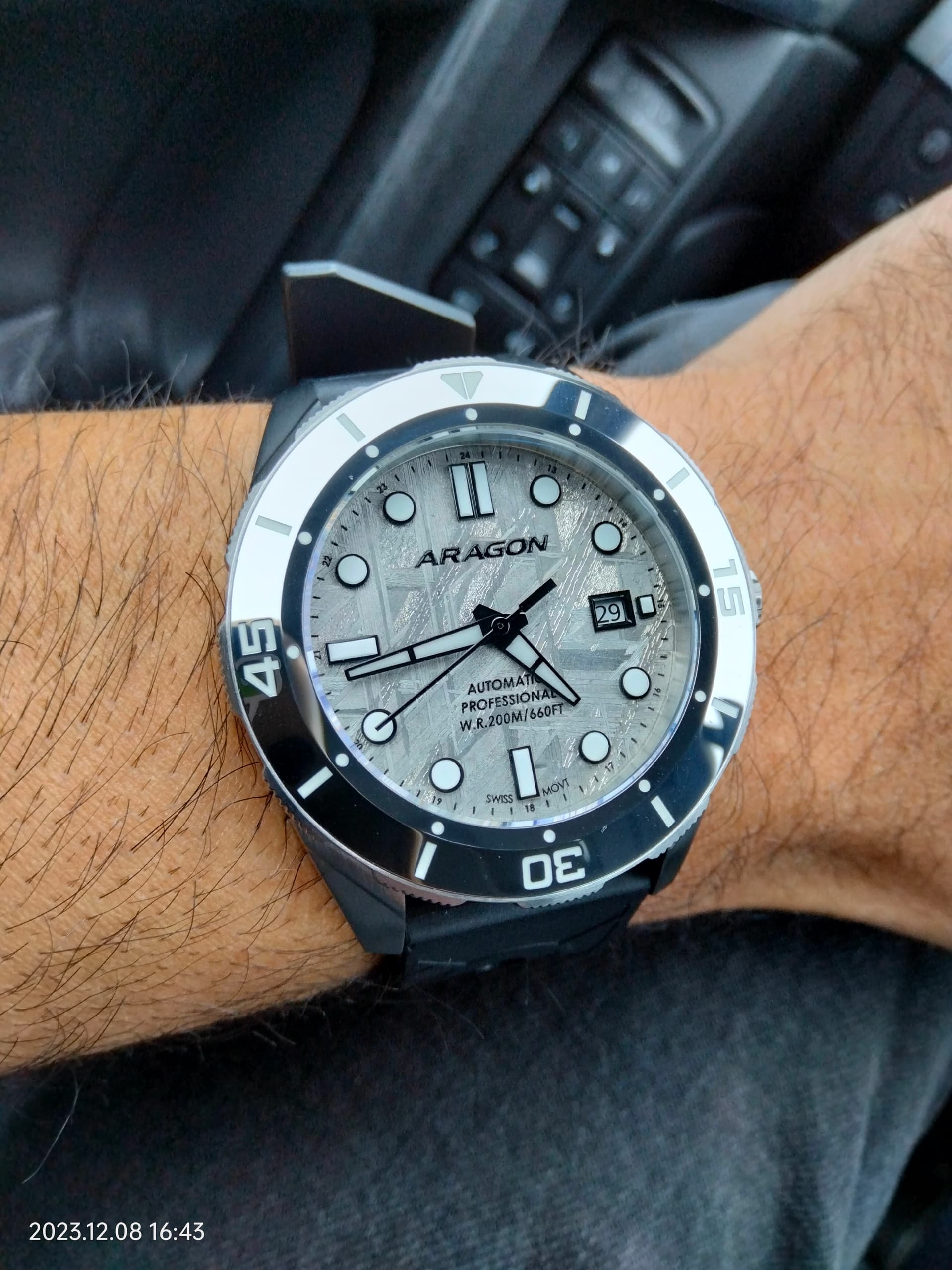 El bisel de tungsteno, la esfera de meteorito, y monta una ronda r150 que va como un tiro.