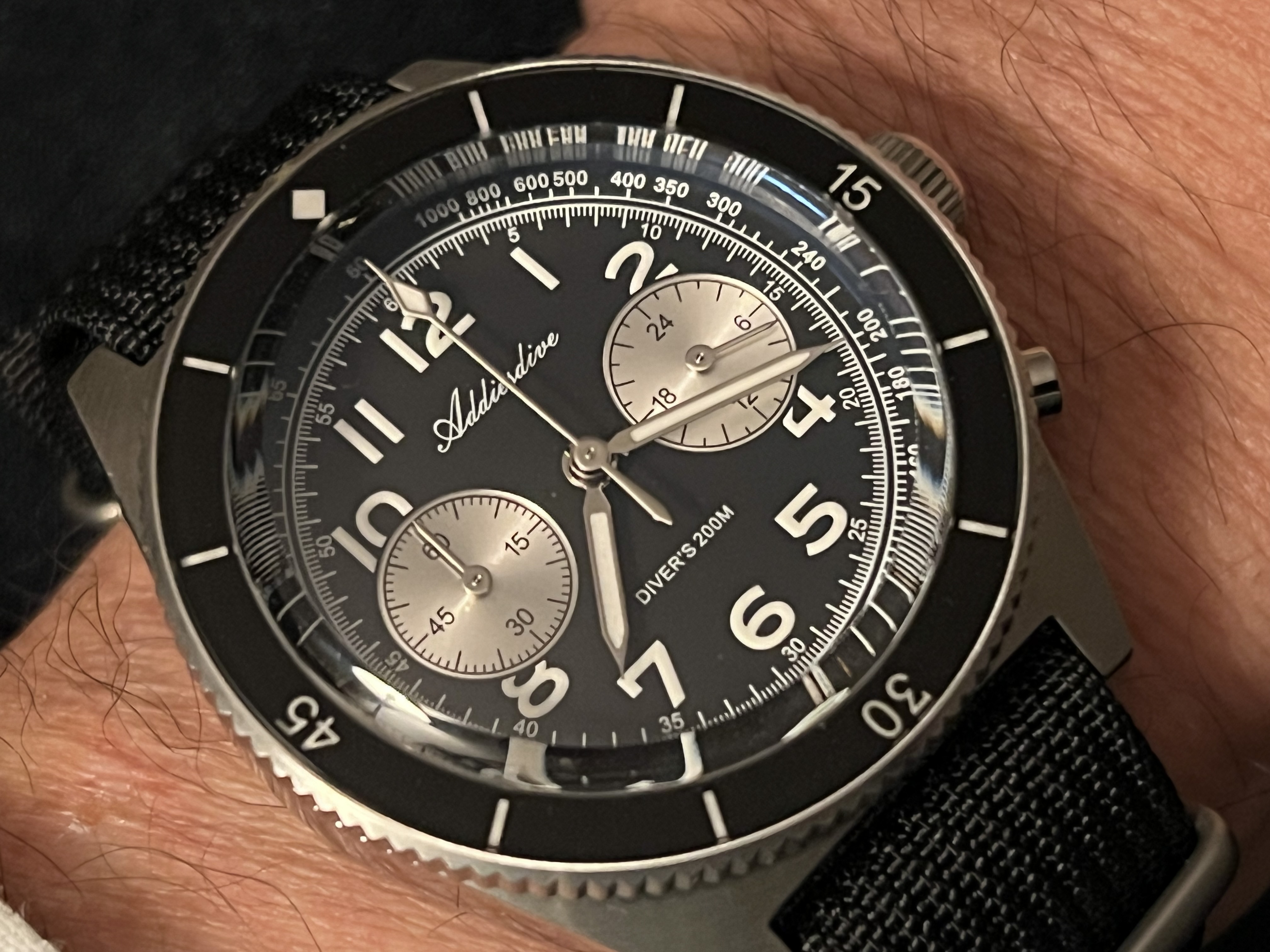 Acabo de encontrar este increíble artículo en AliExpress. ¡Échale un vistazo! 87,45€ 84%de DESCUENTO | ADDIESDIVE reloj de pulsera para hombre, cronógrafo de cuarzo, cristal de zafiro, acero inoxidable, esfera de Panda, súper luminoso, 20bar