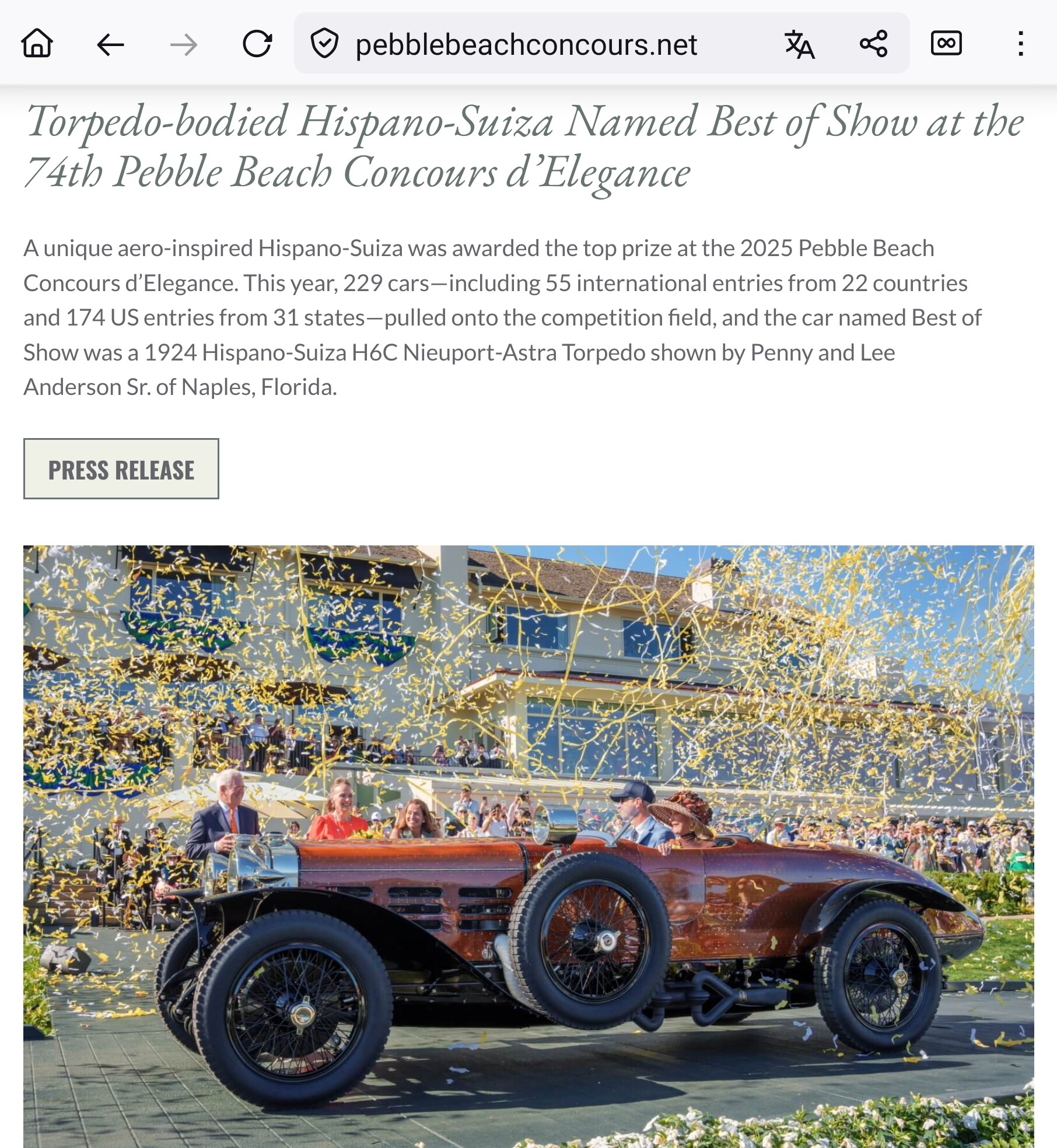 Ha ganado un coche español en el Concurso de Elegancia más famoso de EEUU.