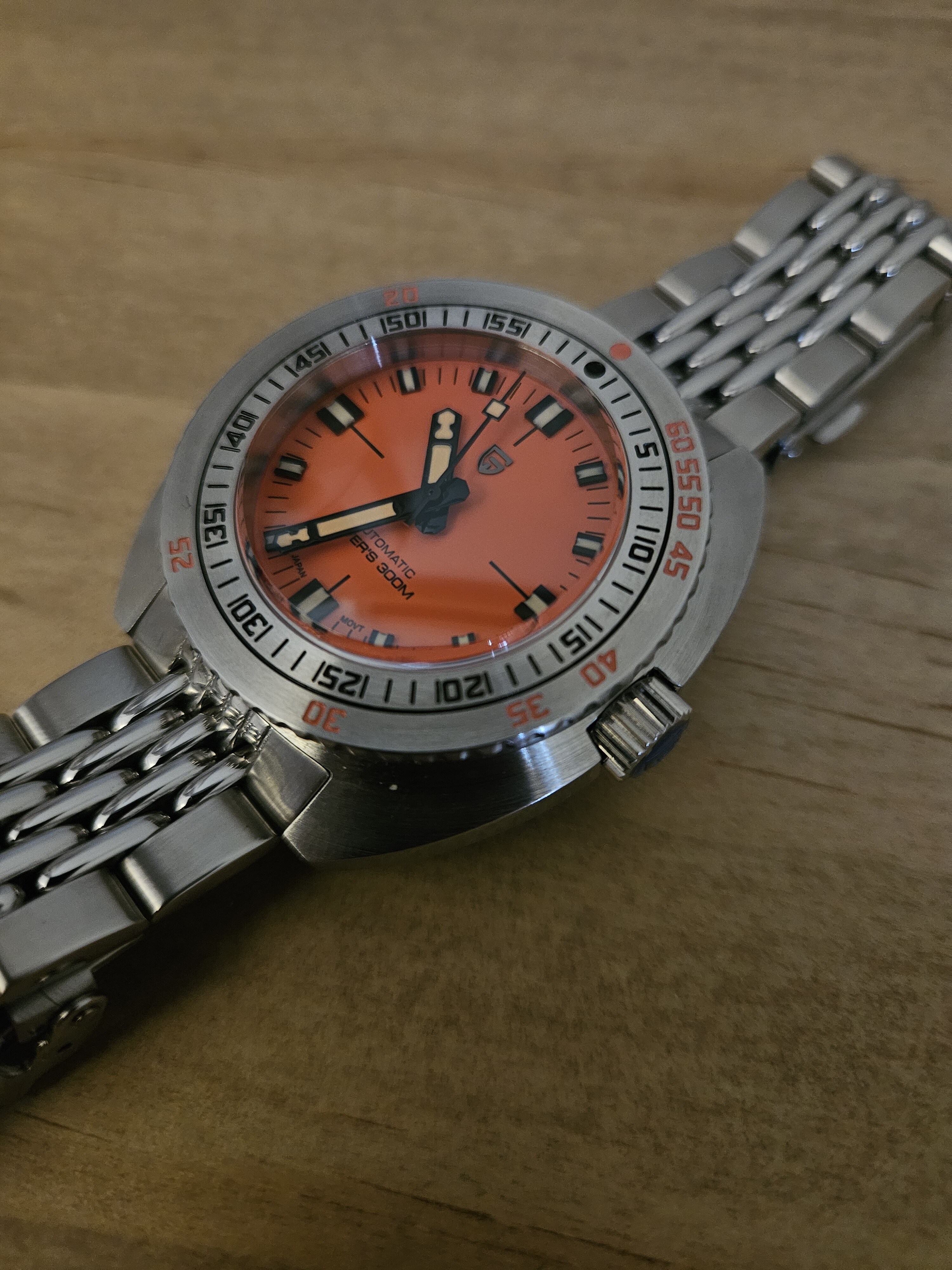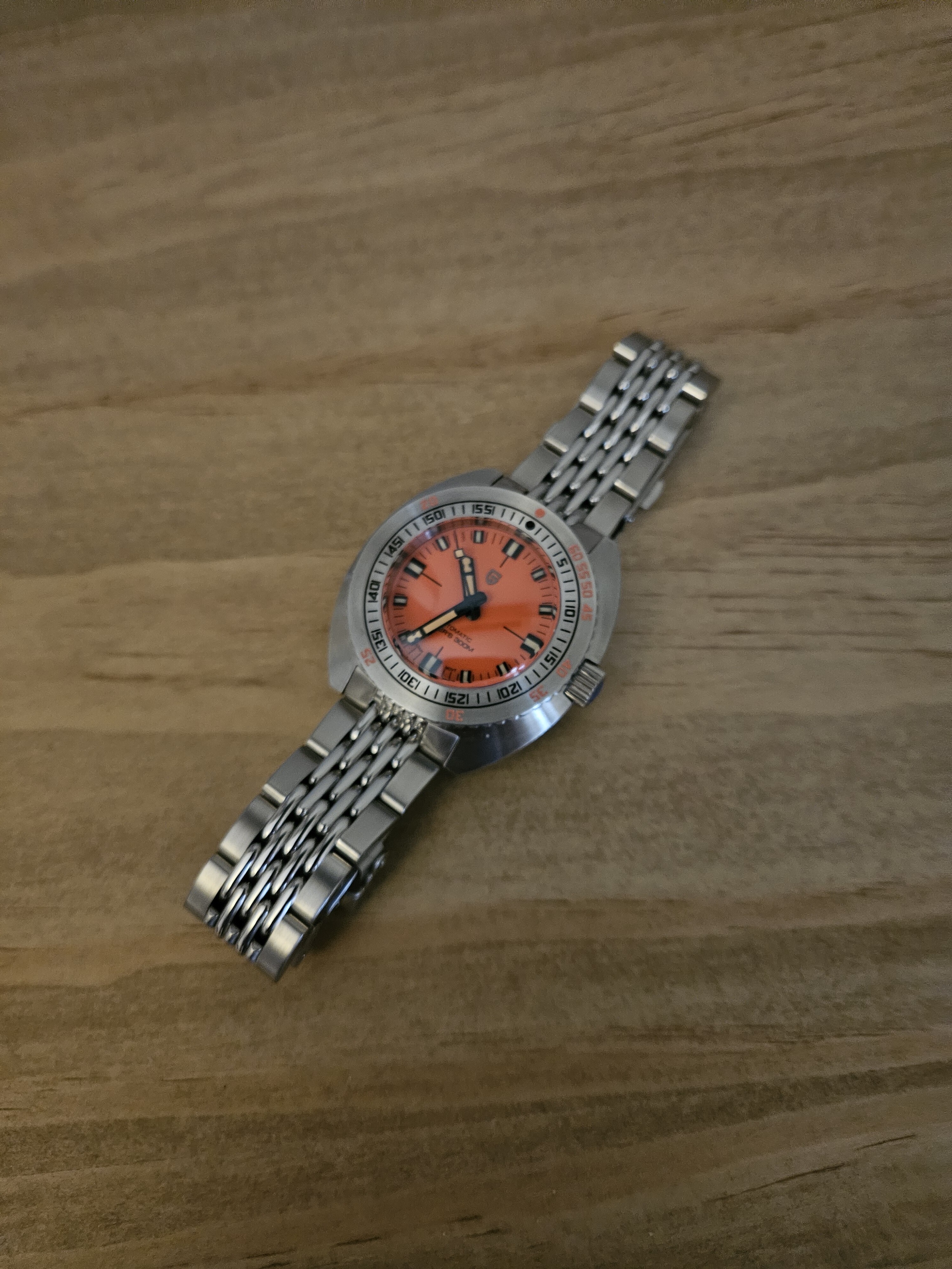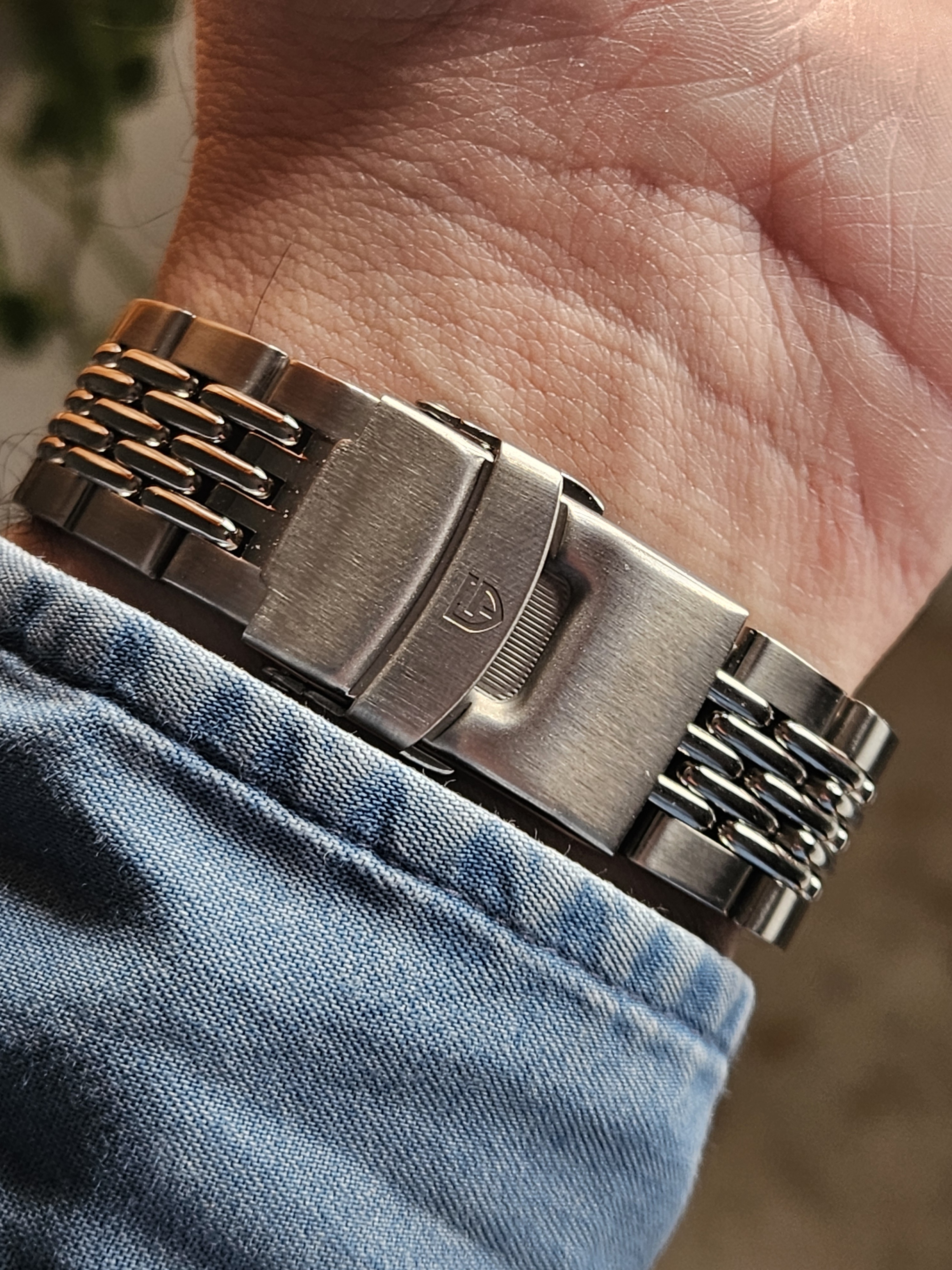 En cuanto al brazalete, me ha sorprendido muy positivamente. Está muy bien terminado y es guapísimo. Diría que hasta ahora, lo mejor que he visto en chinos de menos de 150€. El cierre también es más decente de lo acostumbrado en otros relojes.