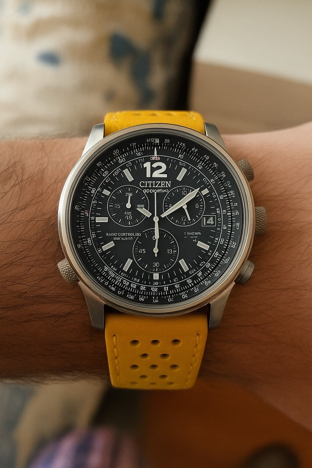 Tengo que cambiarle la correa original de piel negra estilo racer. El pespunte blanco ya se ve muy sucio… no me termina de convencer en gris y en amarillo.