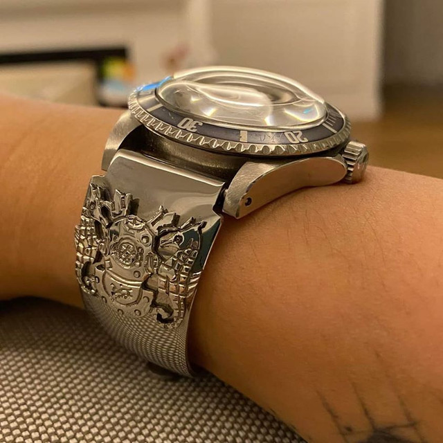 Yo este reloj con armis no lo veo (no quiere decir que no lo vaya a usar, pero en principio no es lo que visualizo para él). Habéis puesto buenas ideas, que tengo que repasar. Por otra parte, como ya ha dicho un compañero, no quiero saber nada de correas de silicona (blandengues, pegajosas…). Tiene que ser caucho (incluso prefiero esa réplica, bastante pintona por cierto, de plástico malucho de CheapNatoStraps que se ha posteado antes, que igual es tipo los primeros Casio que había cuando era un crío, que se rajaban al cabo de un par de años; cualquier cosa menos la silicona). El cuero me gusta. Normalmente, como también se ha comentado, no veo cuero en un reloj de buceo pero… No sé. Con éste, al ser una edición tan peculiar con un trasfondo tan especial, podría hacer una excepción (como si me imaginara a un soldado, como el propio Willard, poniéndole cualquier correa que encontrase después de romper la suya). Digamos que el contexto, para mí, lo pone en lugar intermedio entre un reloj de buceo y uno militar.