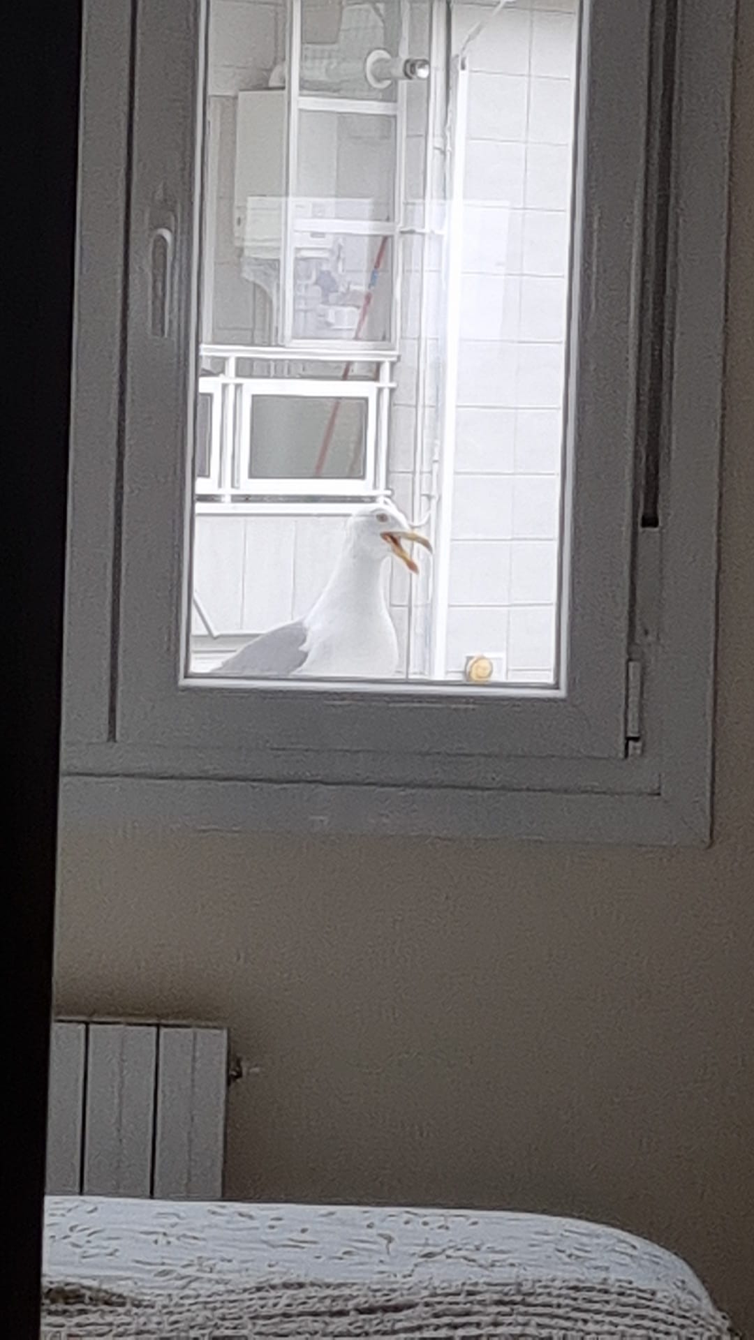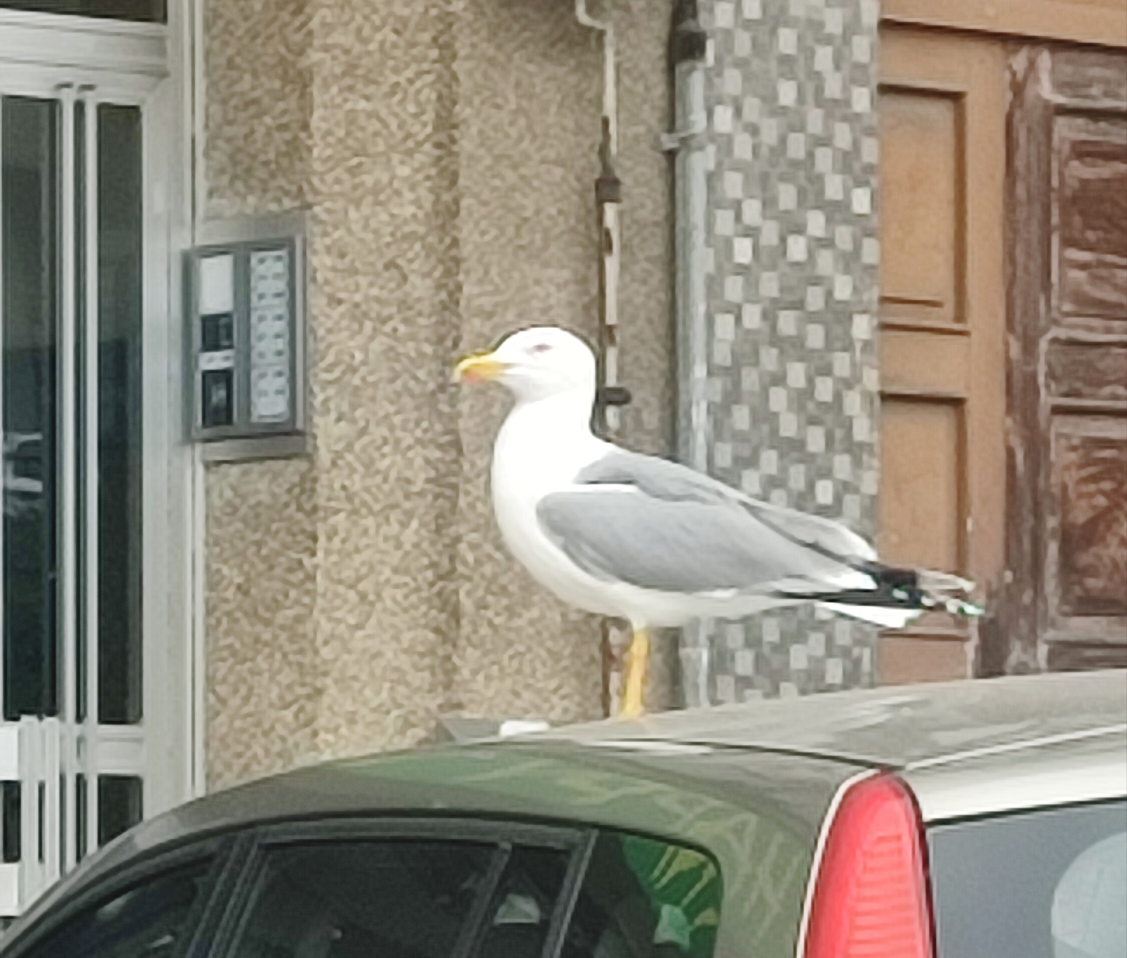 Pues aparte de que el juego de palabras te ha salido redondo, fliparías con esa gaviota. Ha estado (que yo haya visto) 9 HORAS encima del coche. Hay un bar delante del que, por lo que se ve, se surte la interfecta. Acojonante el troquelado de esos animales por obra y -des-gracia de la sociedad urbana… ![]()