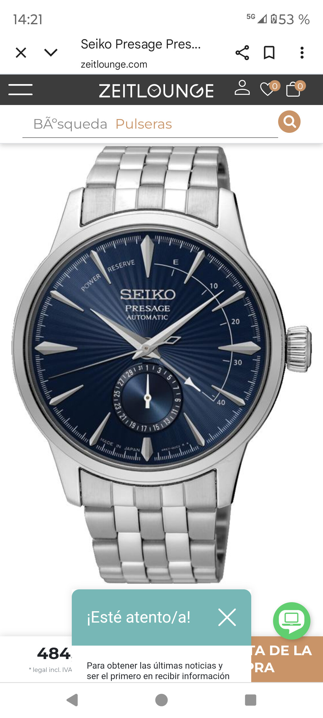 Según le he entendido al compañero quiere que el reloj incorpore reserva de marcha y ese presage no la incorpora,en cambio es GMT