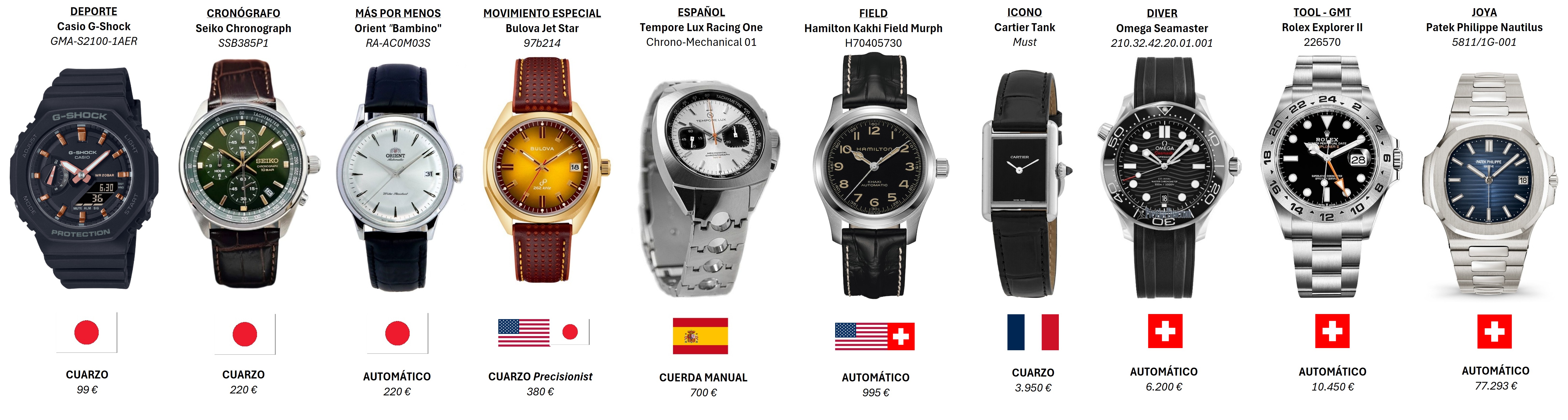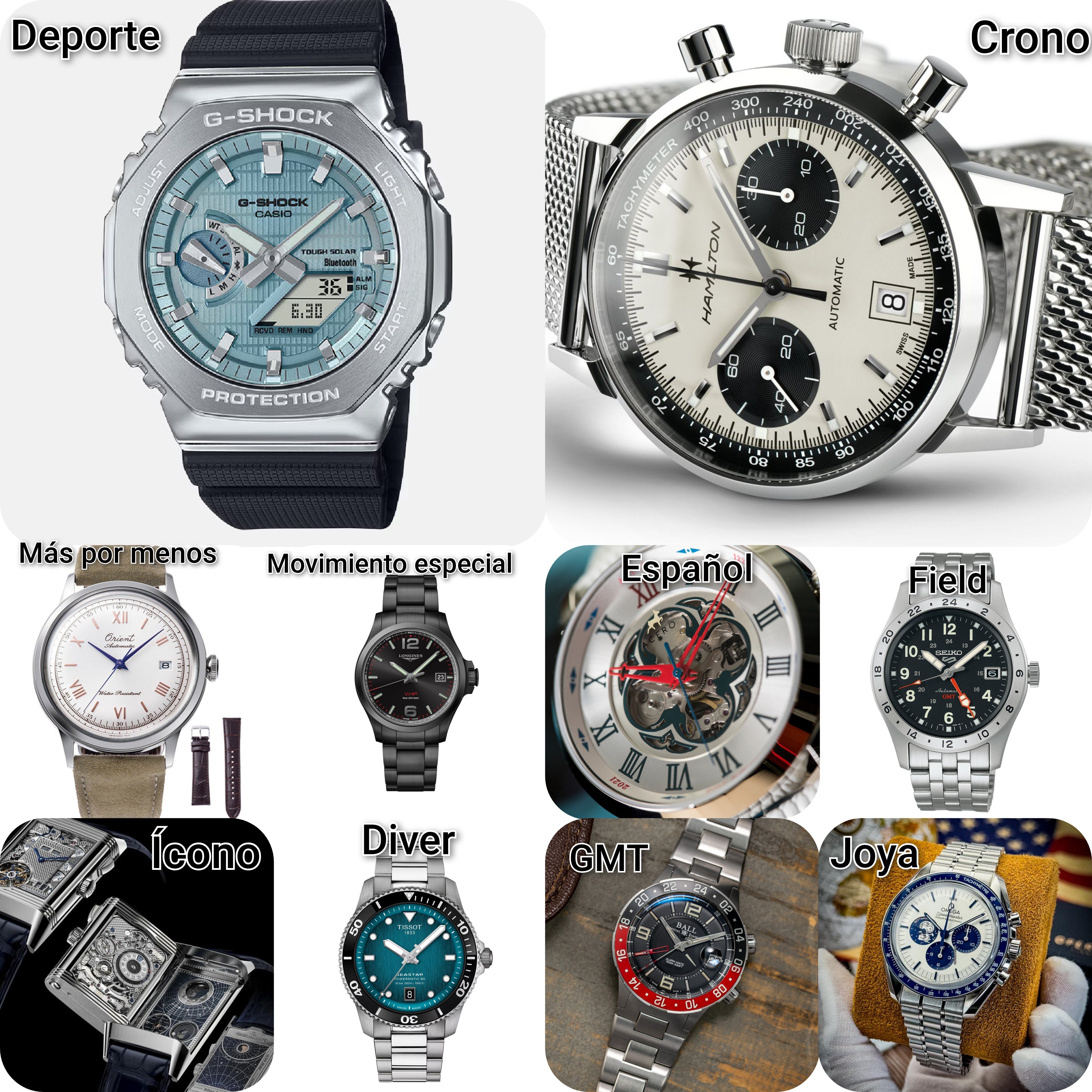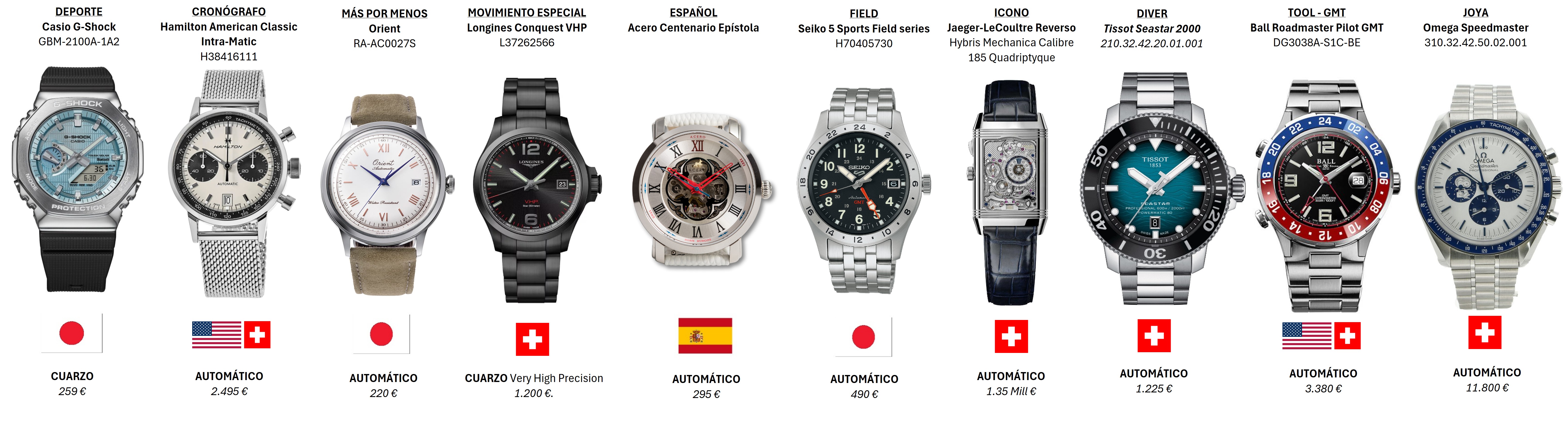 Sois libres de cambiar el tipo de reloj aunque la idea de las categorías es limitar y que no sea una colección repetitiva. Creo que el espectro de tipos de relojes interesantes que abarca es bastante amplio, para mí claro está. ¿Cuál sería vuestra elección?
