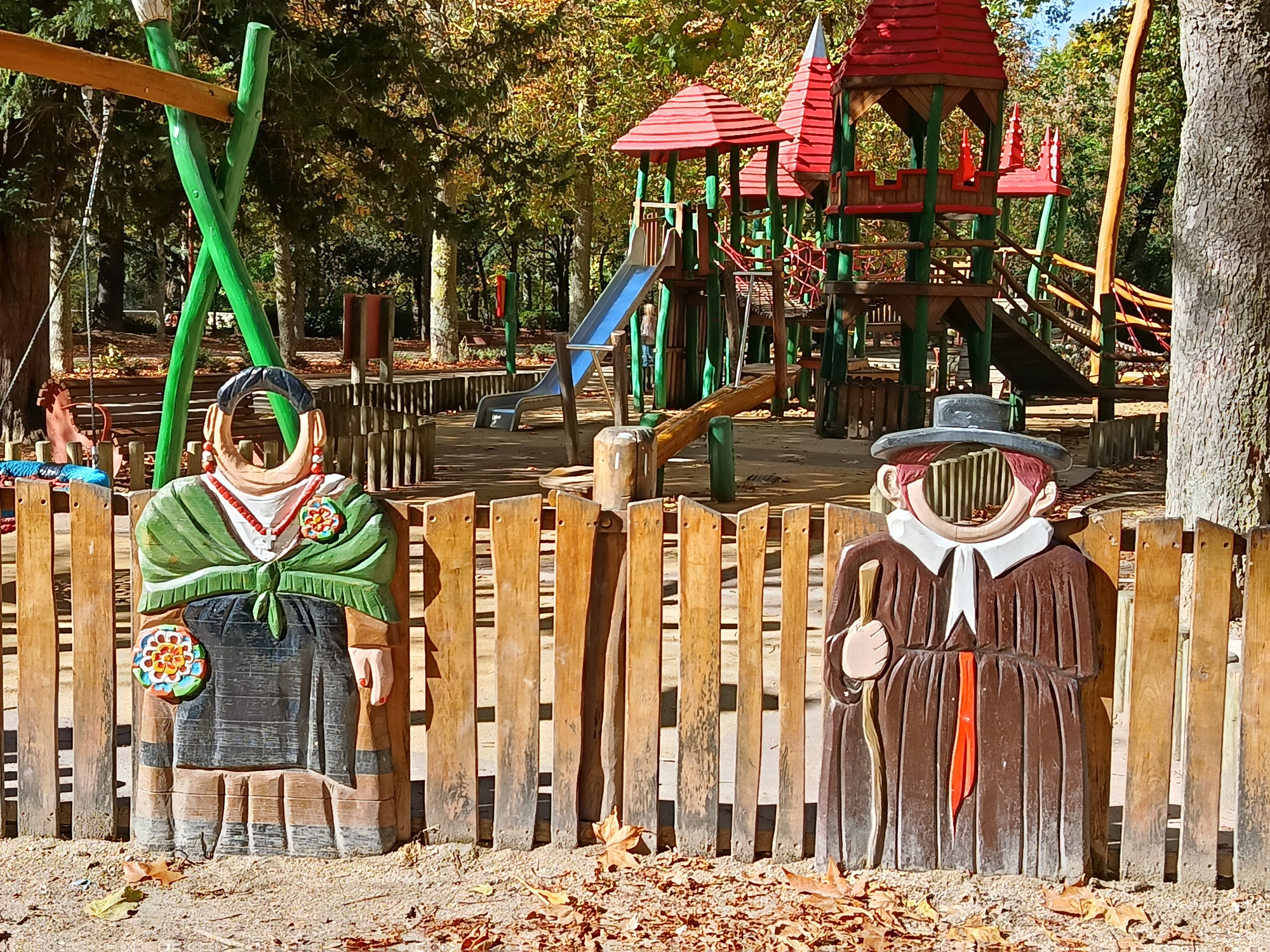 Parque infantil con personajes de la cultura popular burgalesa el Papa Moscas, las espadas del Cid, los gigantillos, los seises ayudan a los niños a conocer de cerca las tradiciones de la ciudad