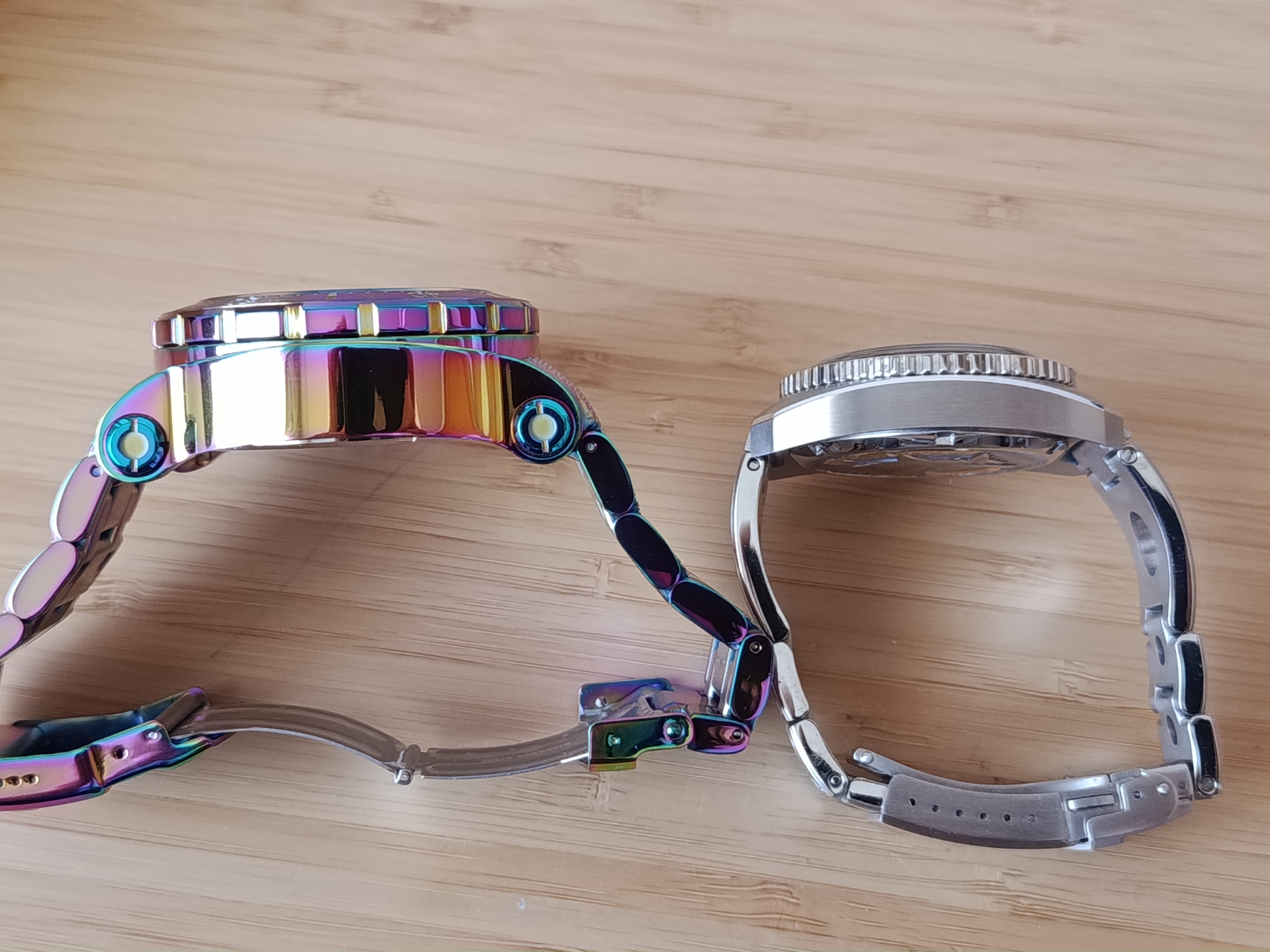 Brazalete de buena factura, muy comodo. Algo dificil de ajustar porque aunque parezca lo contrario no todos los eslabones son iguales. Cierre aceptable.