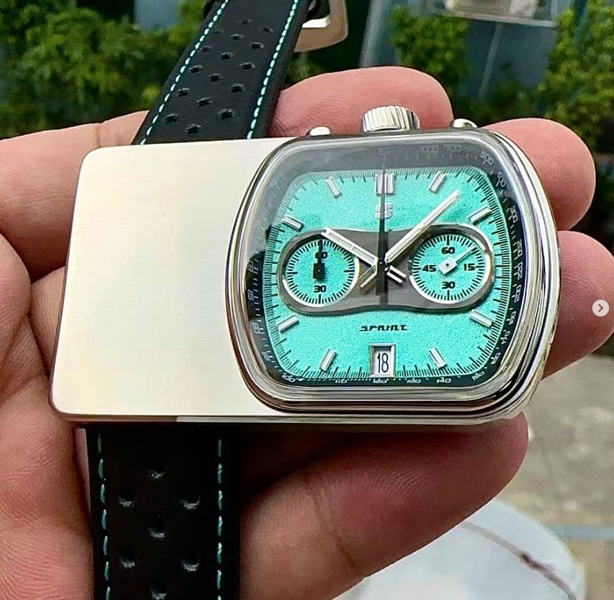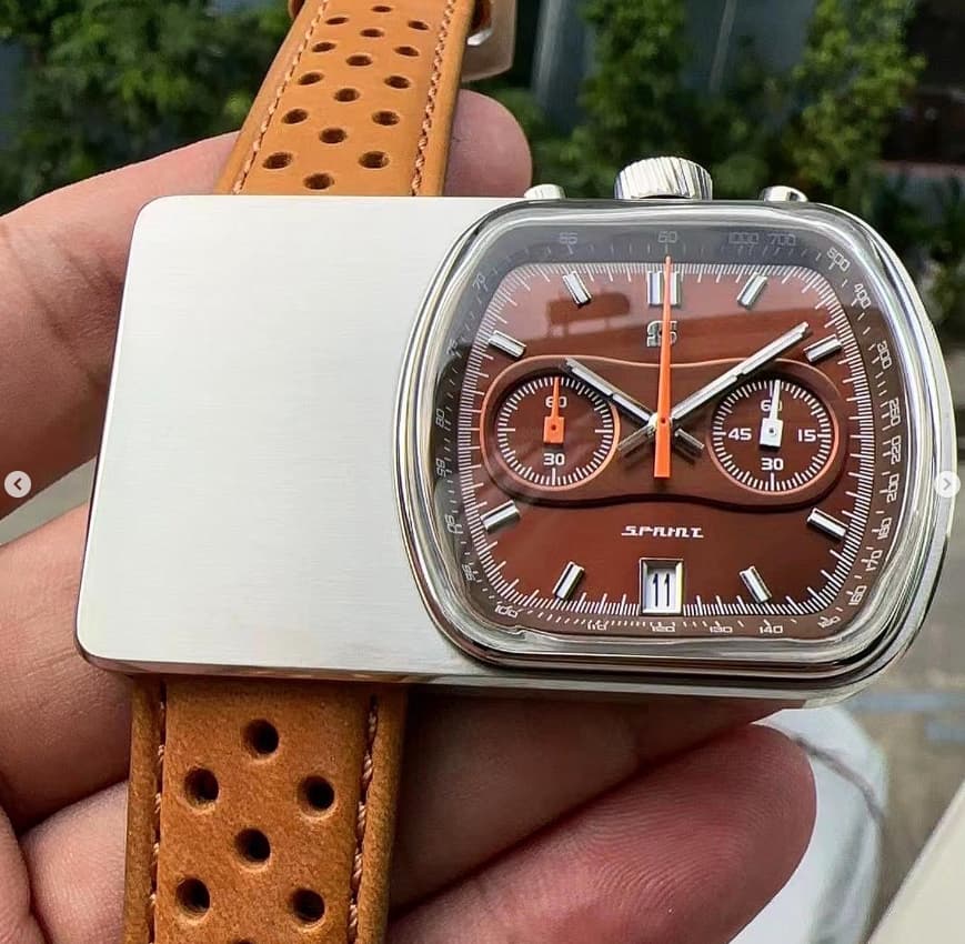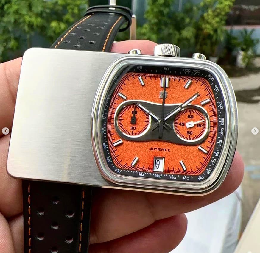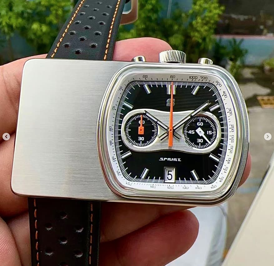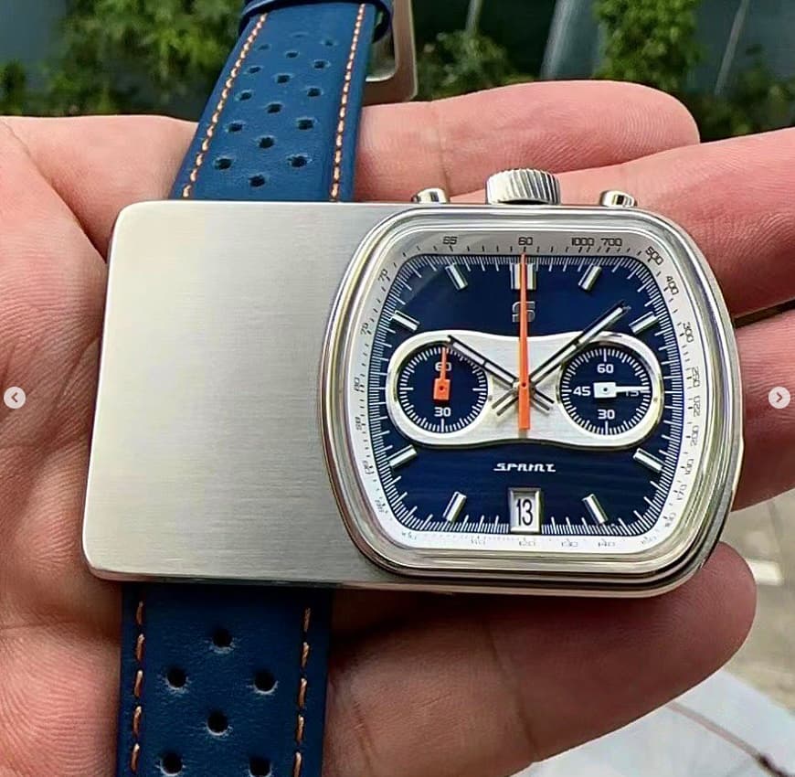 En octubre lanzará la que sin duda es su propuesta más rompedora, el Sprint, un homenaje al Cuffbuster anteriormente mencionado. De momento aún no se conocen todos los detalles más allá de que tendrá un precio de lanzamiento en torno a los $350, que monta meca-cuarzo y que tiene un grosor de 12mm incluyendo el cristal. Las otras dimensiones de momento no las he visto mencionadas por ningún lado pero, como referencia, el Cuffbuster original tenía una caja de 58,4x37 mm. Ya se pueden ver los prototipos.