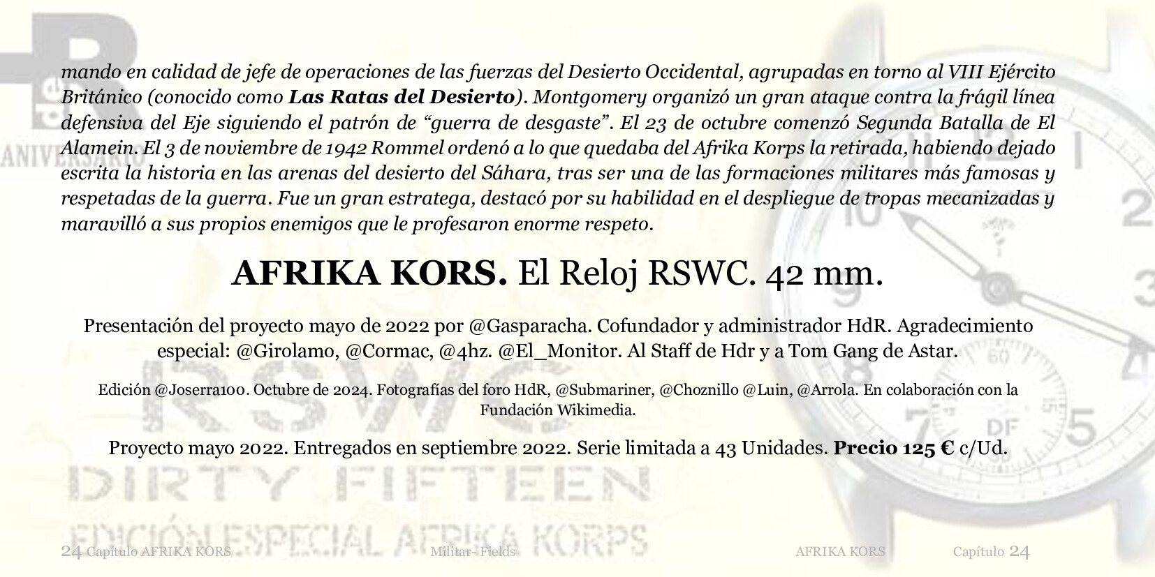 Nota en el libro grande, la página de portada del capítulo del Afika Korps la ocupa la fotografía de @submariner ganadora de una de la ediciones de los concursos de fotografía, al igual que en otros capítulos aparecen otras fotografías ganadoras a lo largo de estos años.