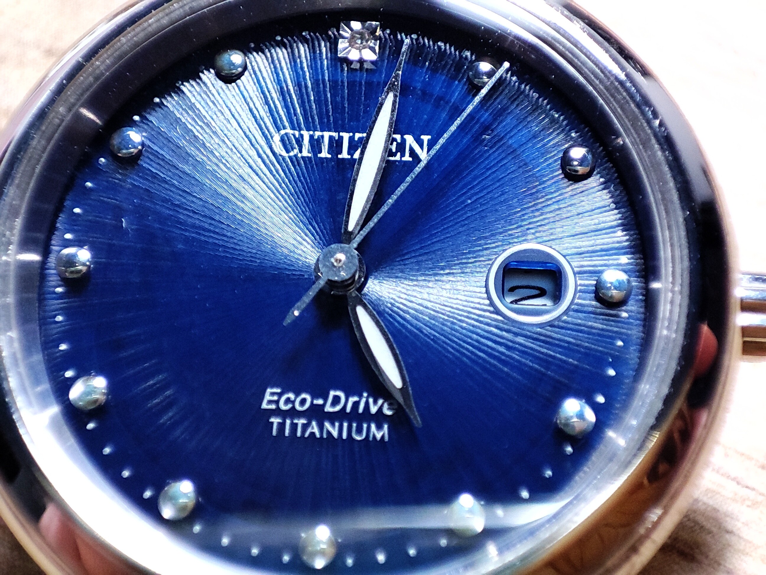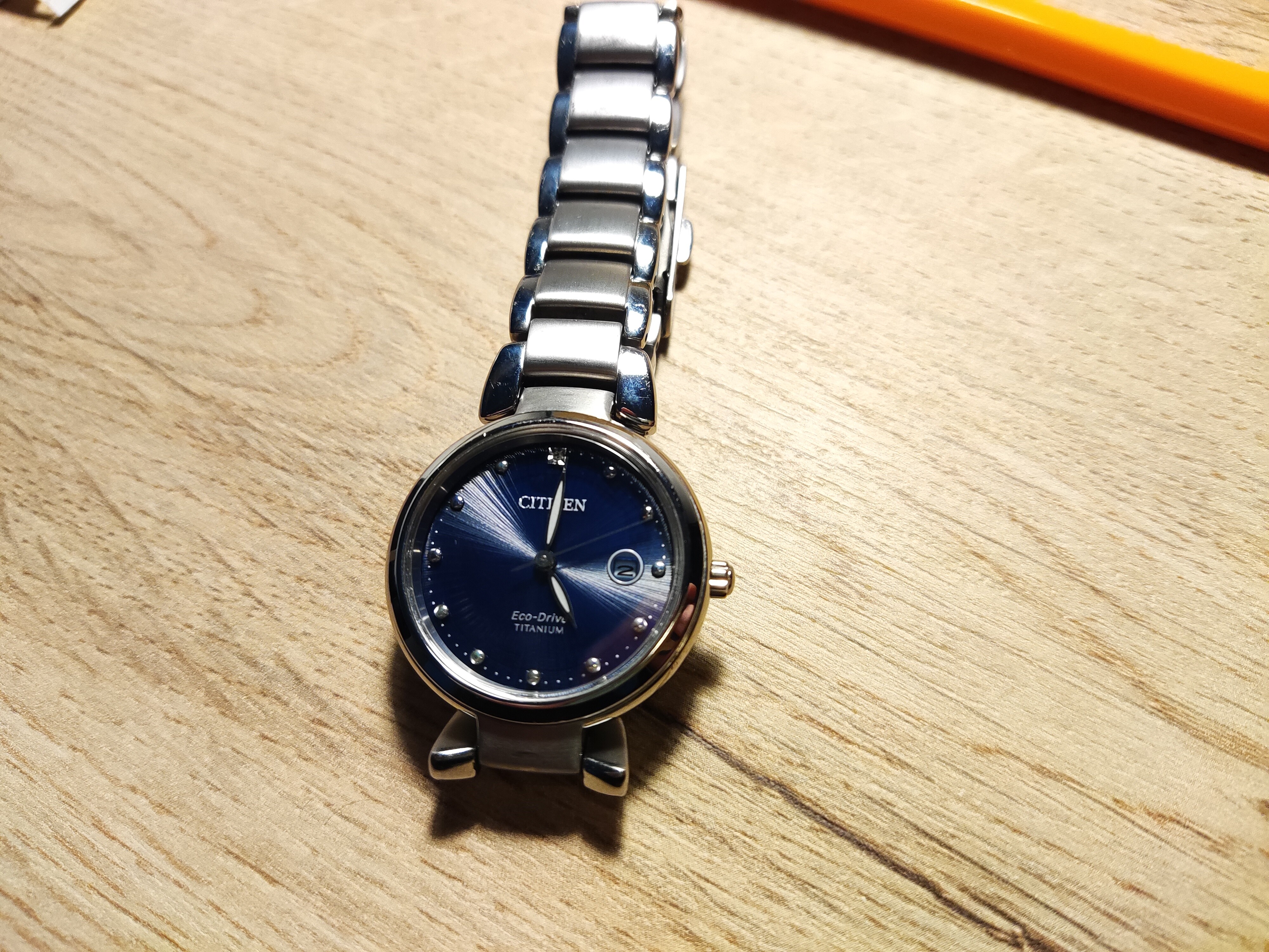 Día 5. Otra vez, haciendo algo de trampas, pues éste también es de mujer. Es un reloj que le regalé a mi mujer por nuestro décimo aniversario, es un Citizen de titanio, con la tecnología Duratech, lo que lo hace más duro a los rayones, y se ve de verdad, apenas tiene marcas. También es Eco-Drive y con cristal de zafiro y, por último, un diamante a las 12.
