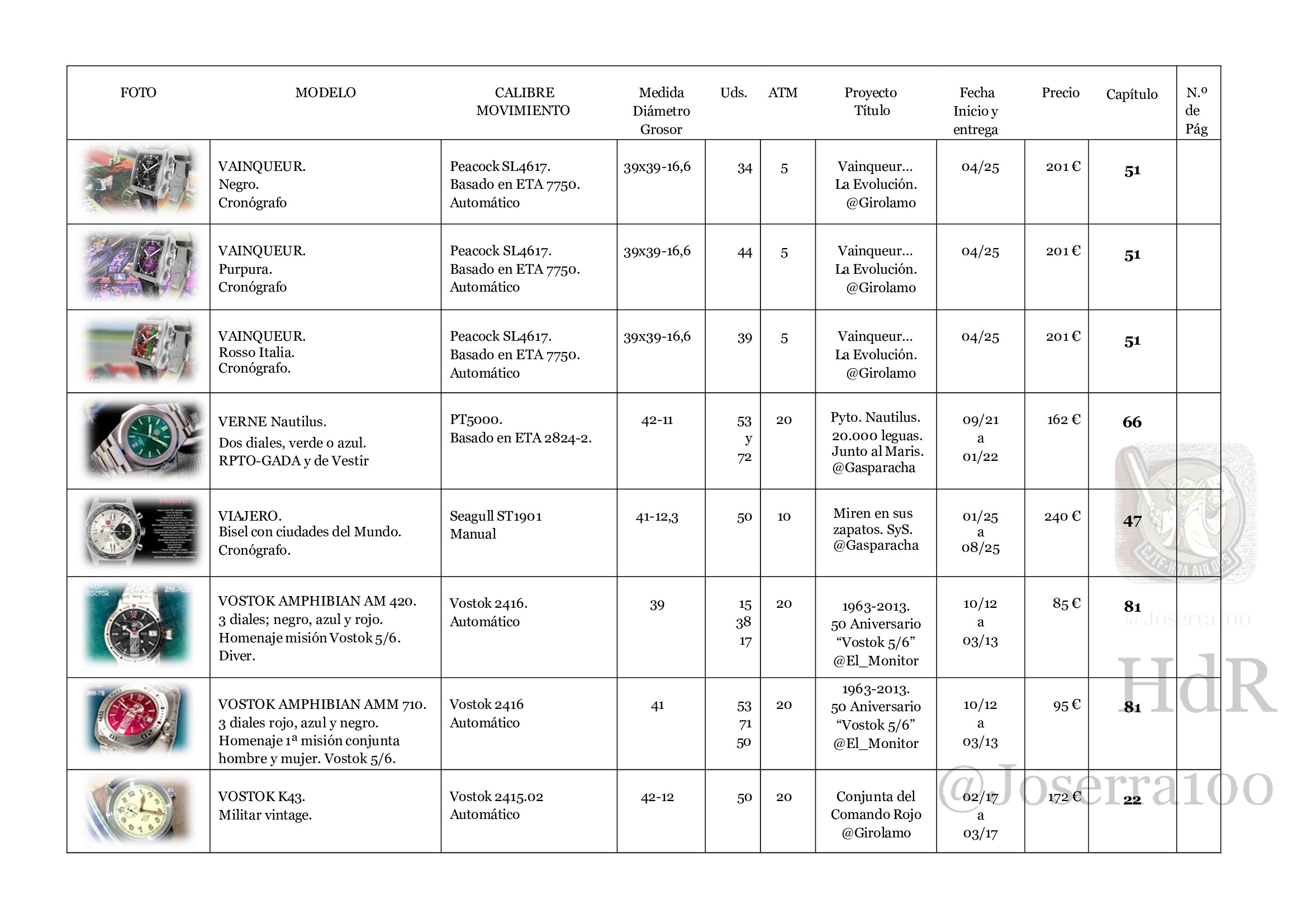 Este trabajo es un proyecto personal y se ofrece de forma altruista al Foro Hablemos de Relojes, el Equipo del foro es independiente y no hace ninguna petición, pero a título personal sí que indico que a quien le parezca interesante el presente trabajo, al igual que el realizado durante más de 18 años por los compañeros, en señal de reconocimiento y de forma voluntaria haga una donación a este foro por el importe que considere oportuno, con objeto de colaborar al sostenimiento de la plataforma, el servidor y la difusión del espacio. Para ello puedo hacerlo siguiendo el procedimiento habitual establecido por el foro a través de PayPal.