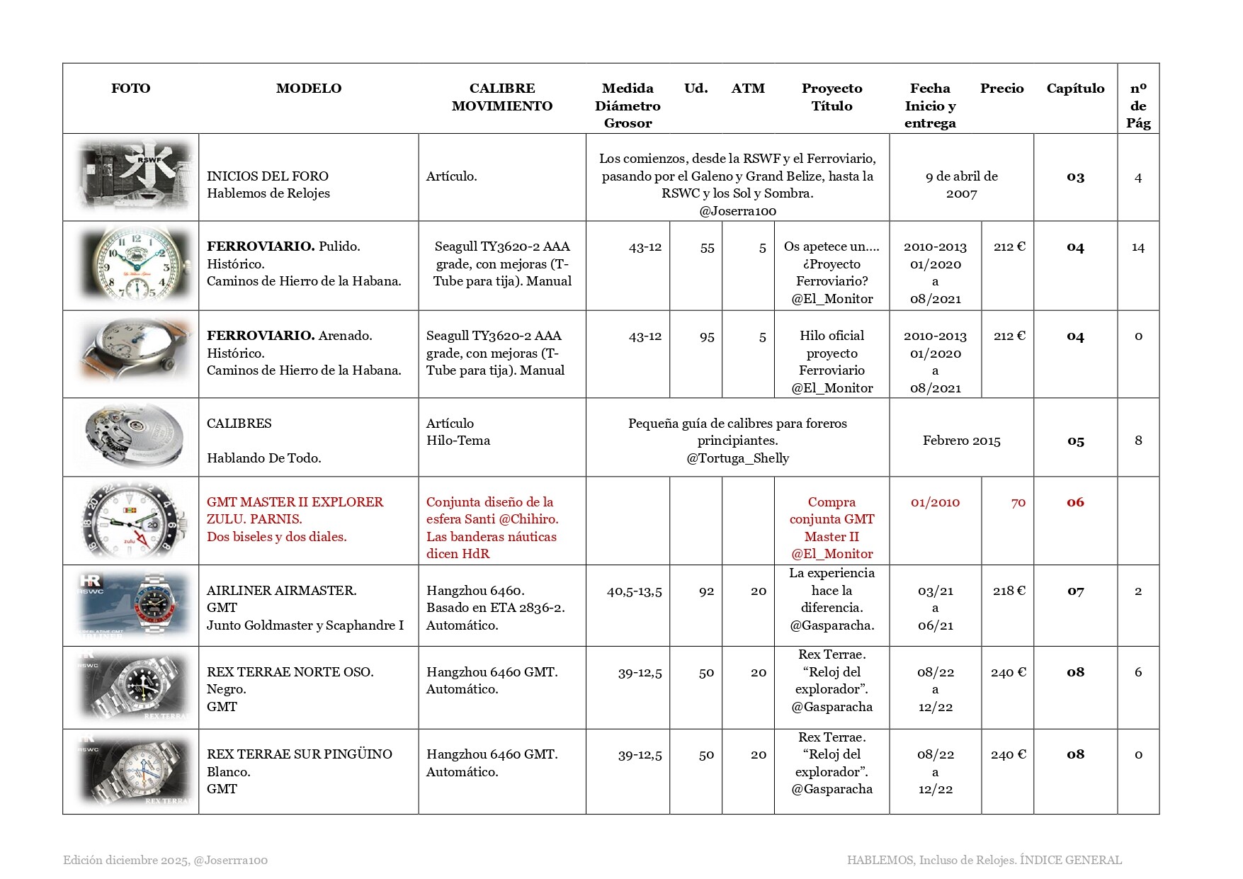 LISTADO ÍNDICE GENERAL de Relojes, para consulta ordenada; AGRUPADOS por complicaciones, con este orden.