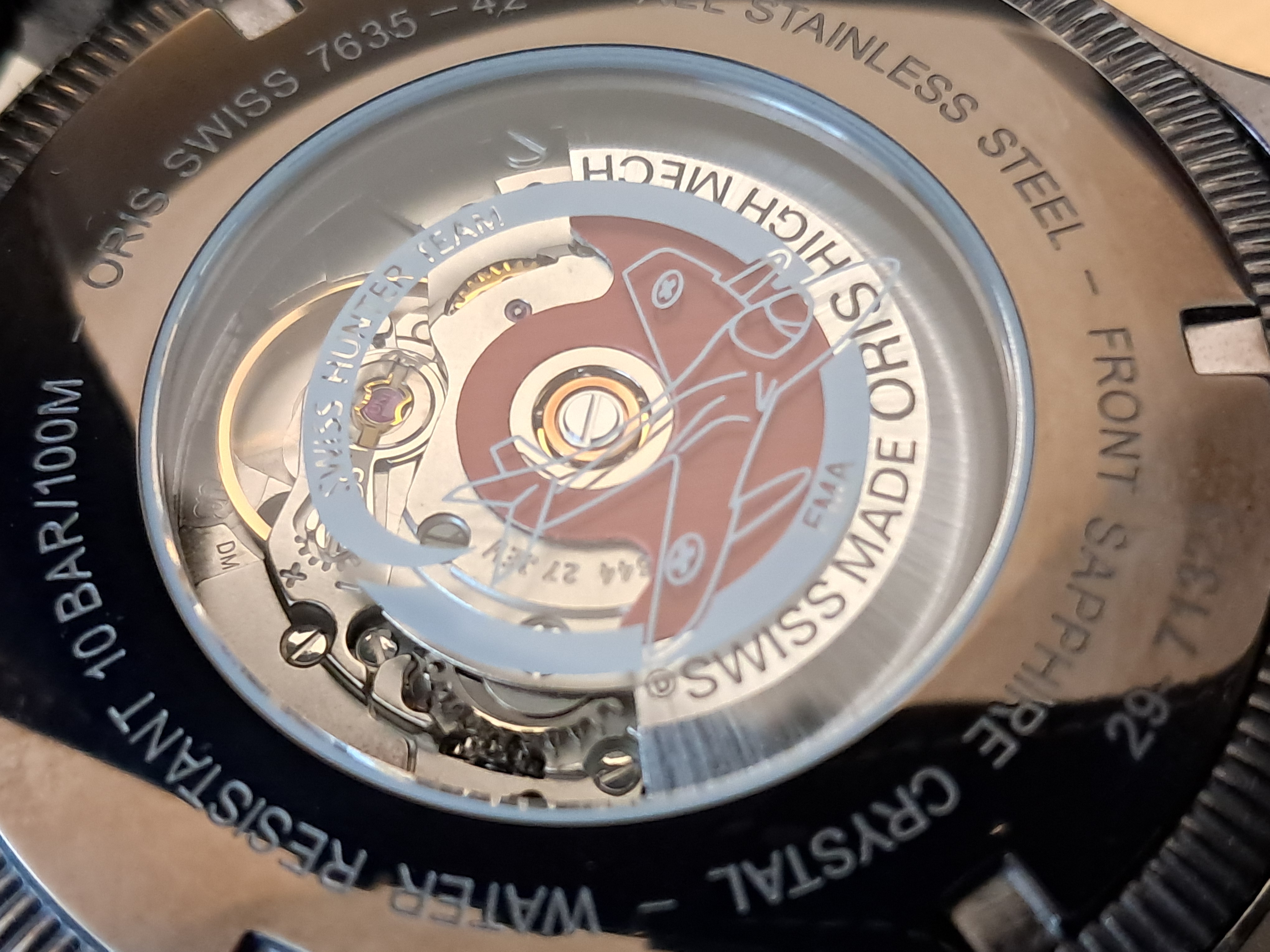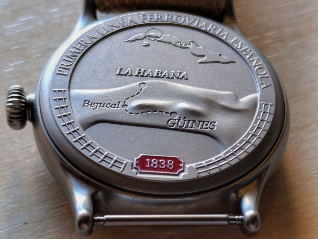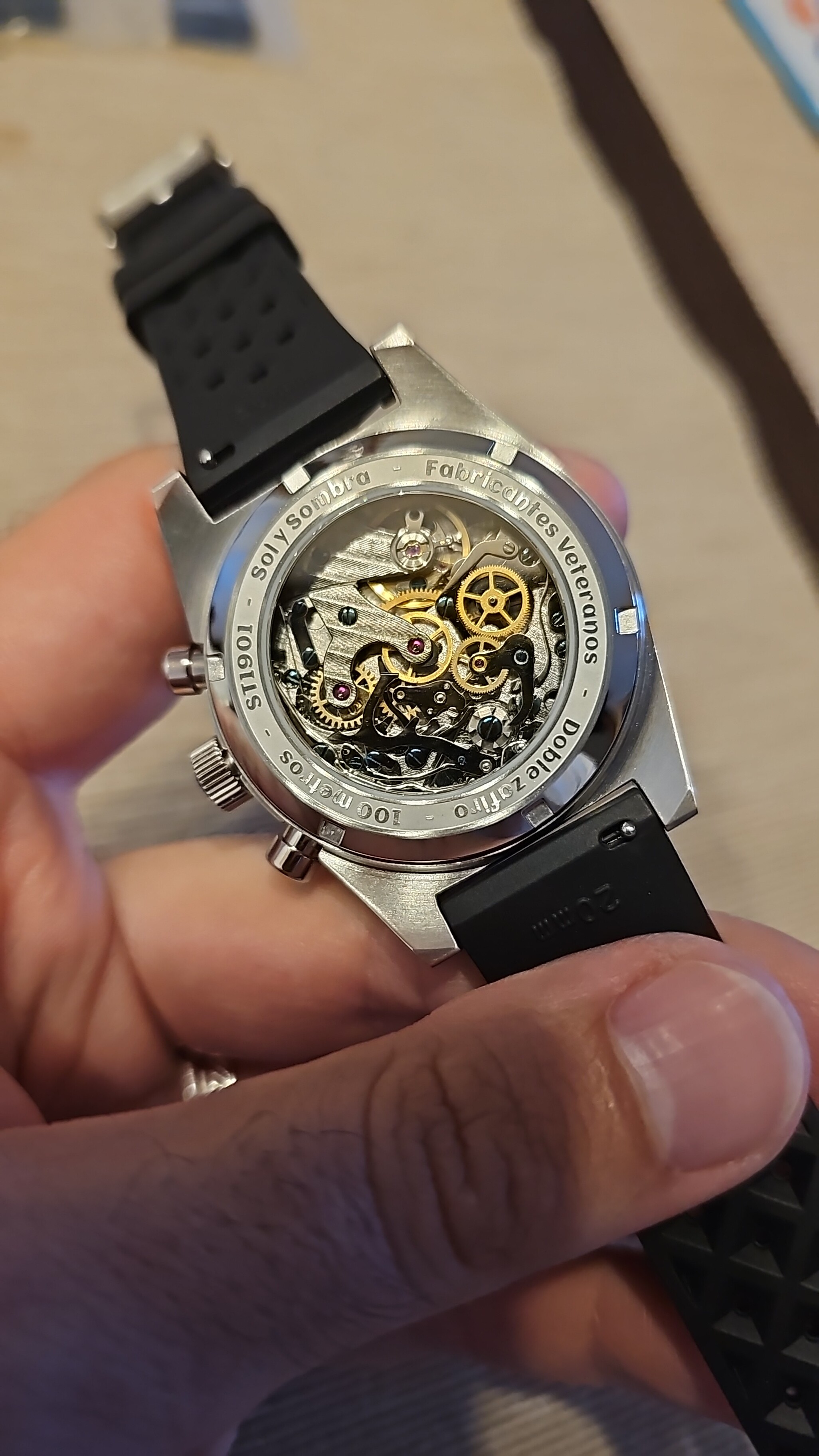 Acabo de hacer una foto a la trasera del Ferroviario (que es el reloj que llevo hoy); y no puedo resistirme a ponerla aquí (aunque supongo que ya lo había hech, porque creo que es la trasera más conseguida que tengo). ![]()