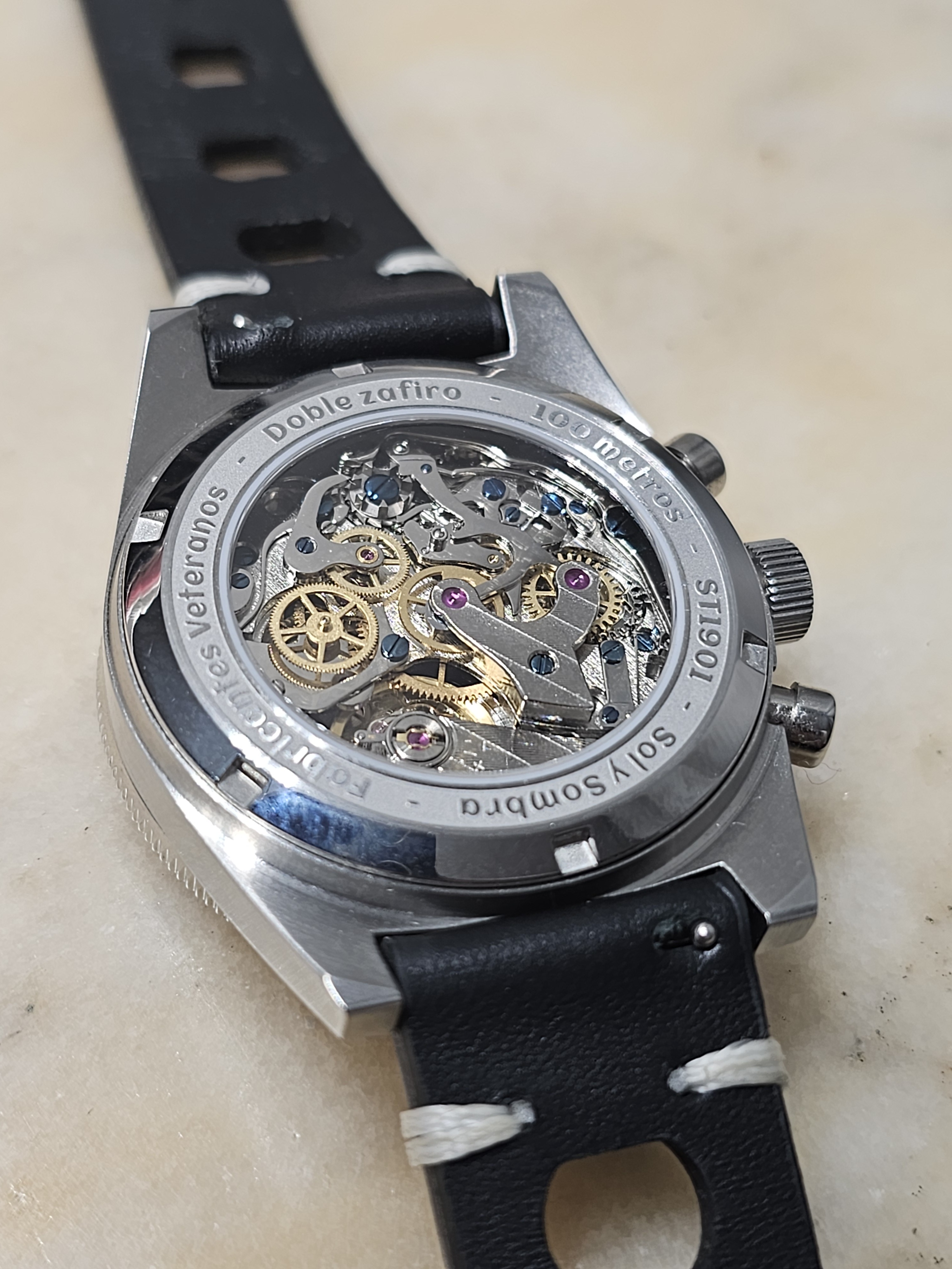 Yo tengo bastante menos muñeca, pero con este me atrevería sin problemas porque me ha encantado. Tiene un rollo brutote-militar muy atractivo, rematado con una trasera muy chula y lo mismo con la caja tipo cojín. Funciona muy bien el conjunto. Además, tiene pinta de lucir bien con distintos tipos de correas. Disfrútalo, parece un relojazo. ![]()
