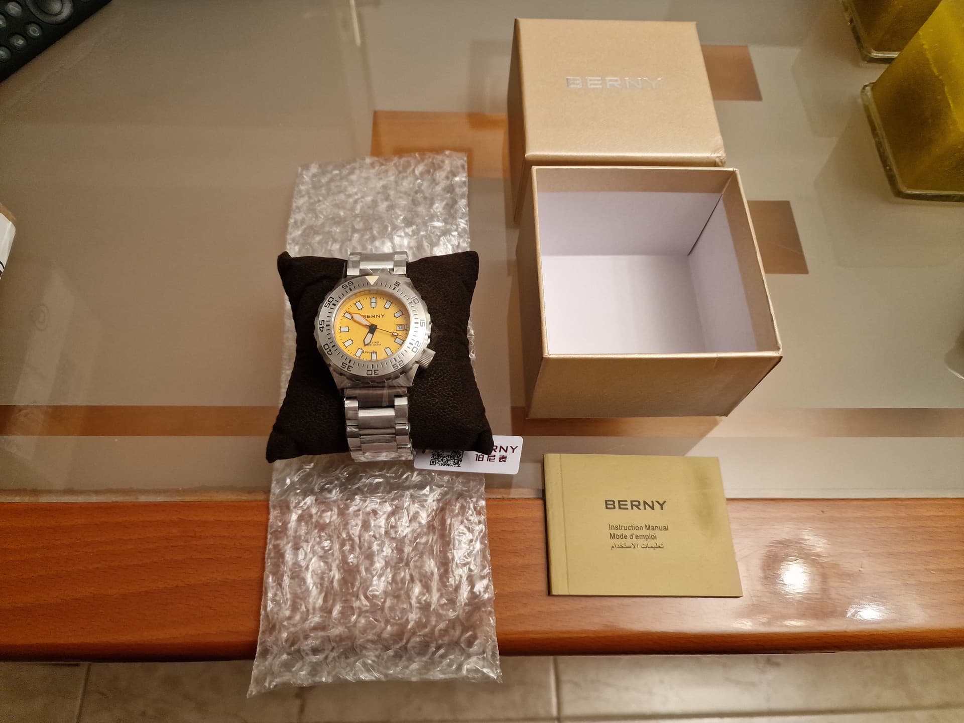 Enhorabuena por la captura, ya verás como te da grandes satisfacciones, por 167€ me parece un “chollo”, si pusiera CITIZEN u Halios…… pero BERNY ese nombre echa para atrás a mucha gente y no lo entiendo. RELOJAZO. A disfrutarlo.