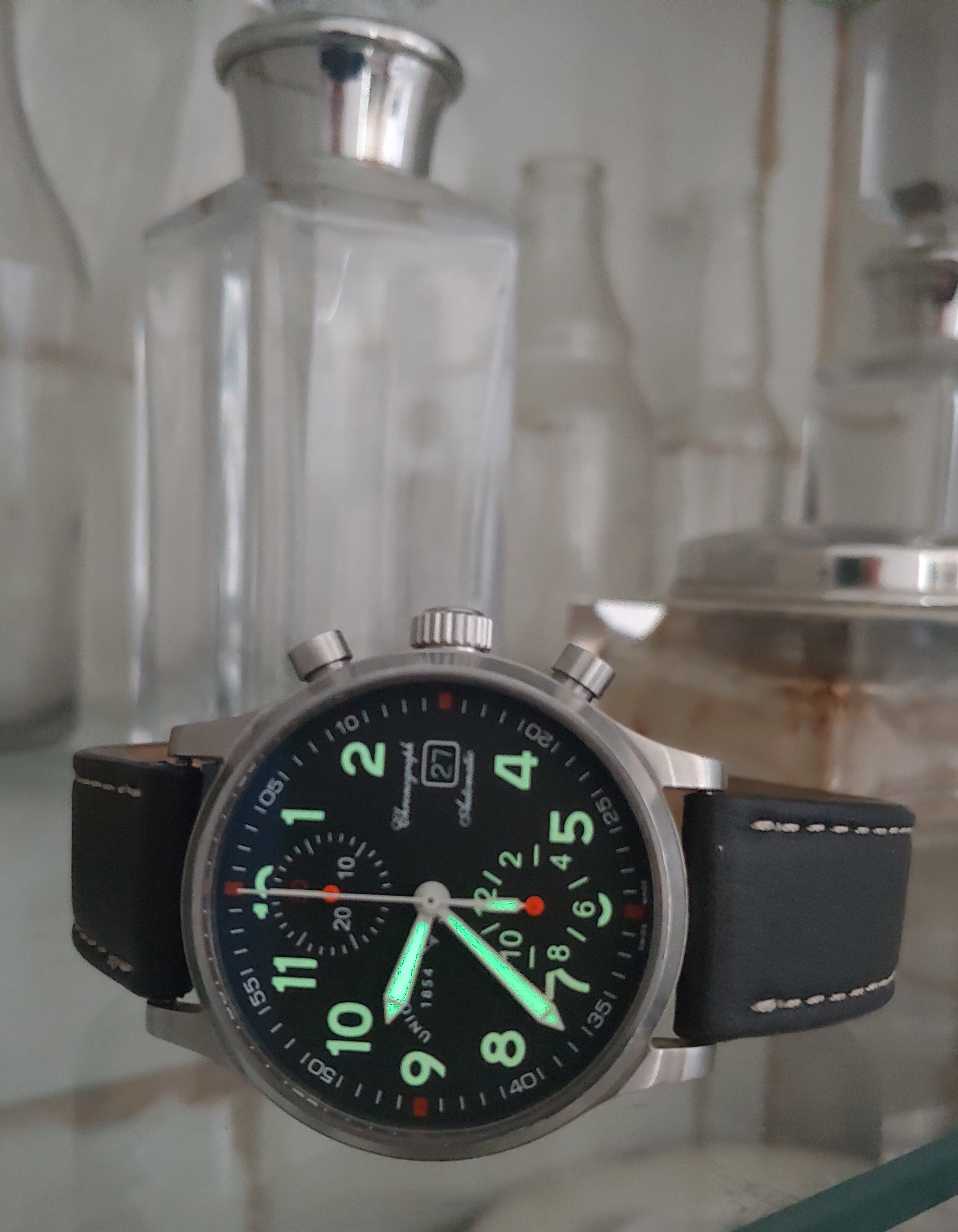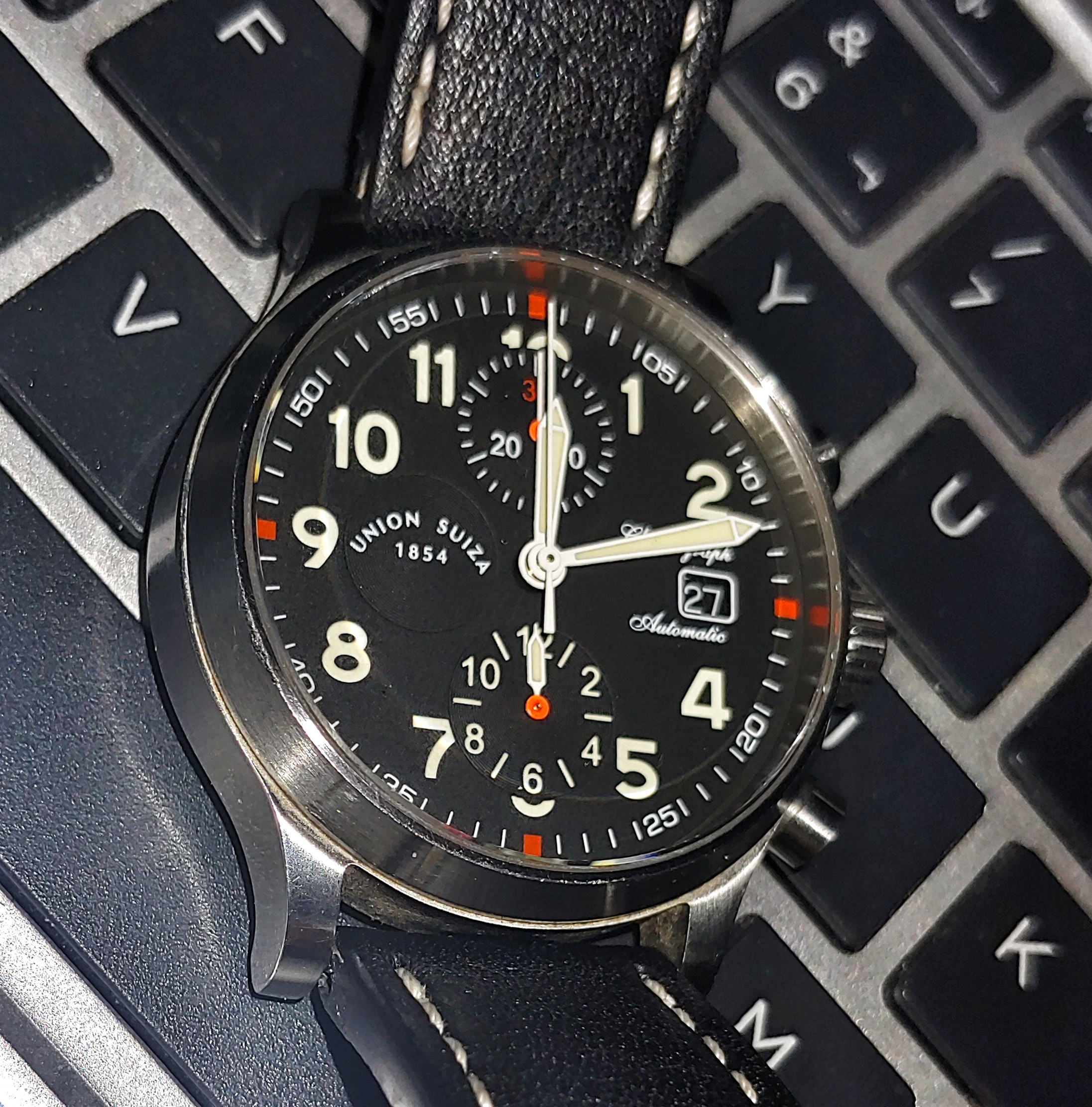 Muy chulo, los numerales son como el mío blanquito, pero el tuyo lleva la complicación del calendario y la firma de Unión Suiza en lugar del logo de Kronos (Since 1930)