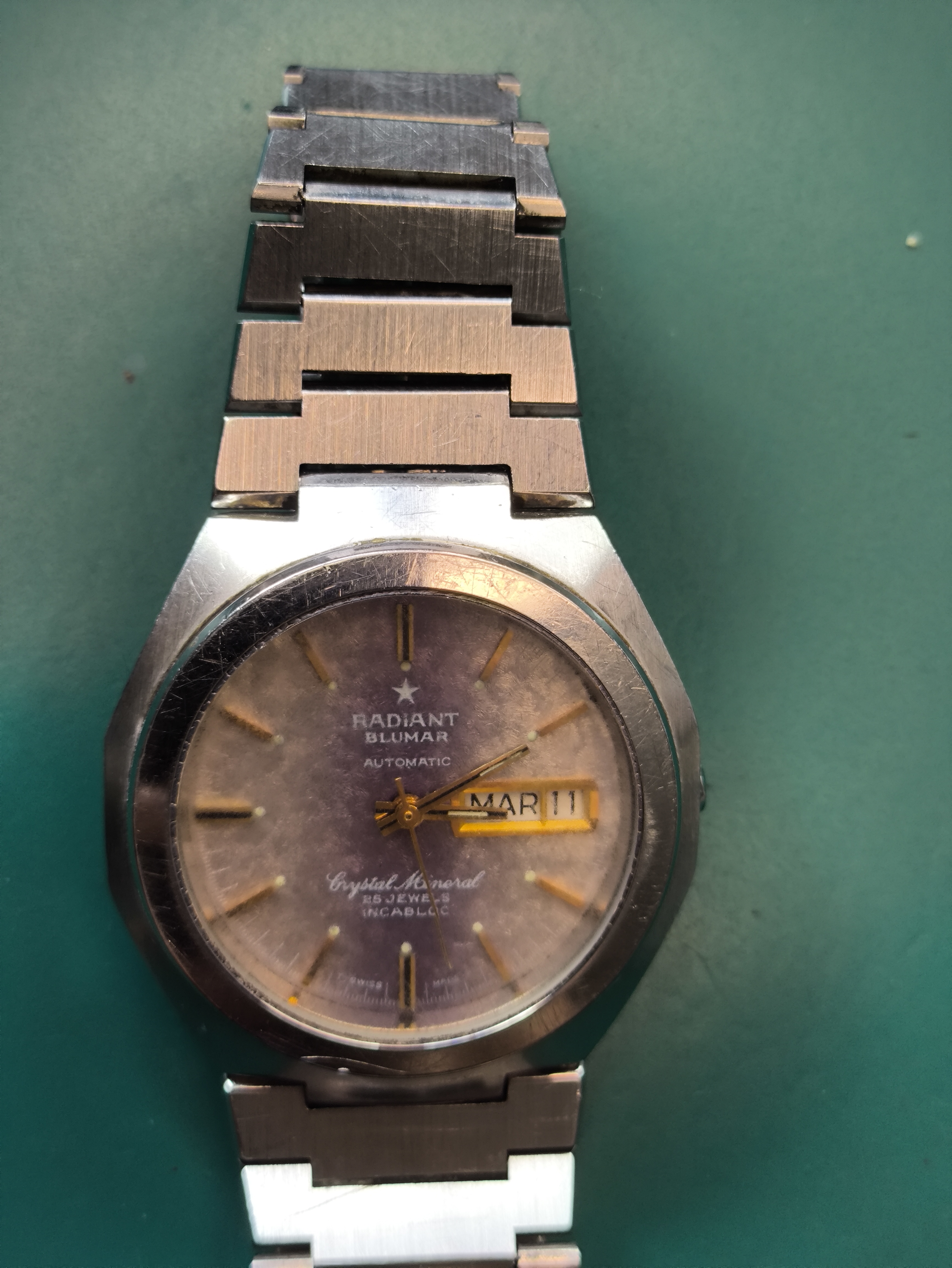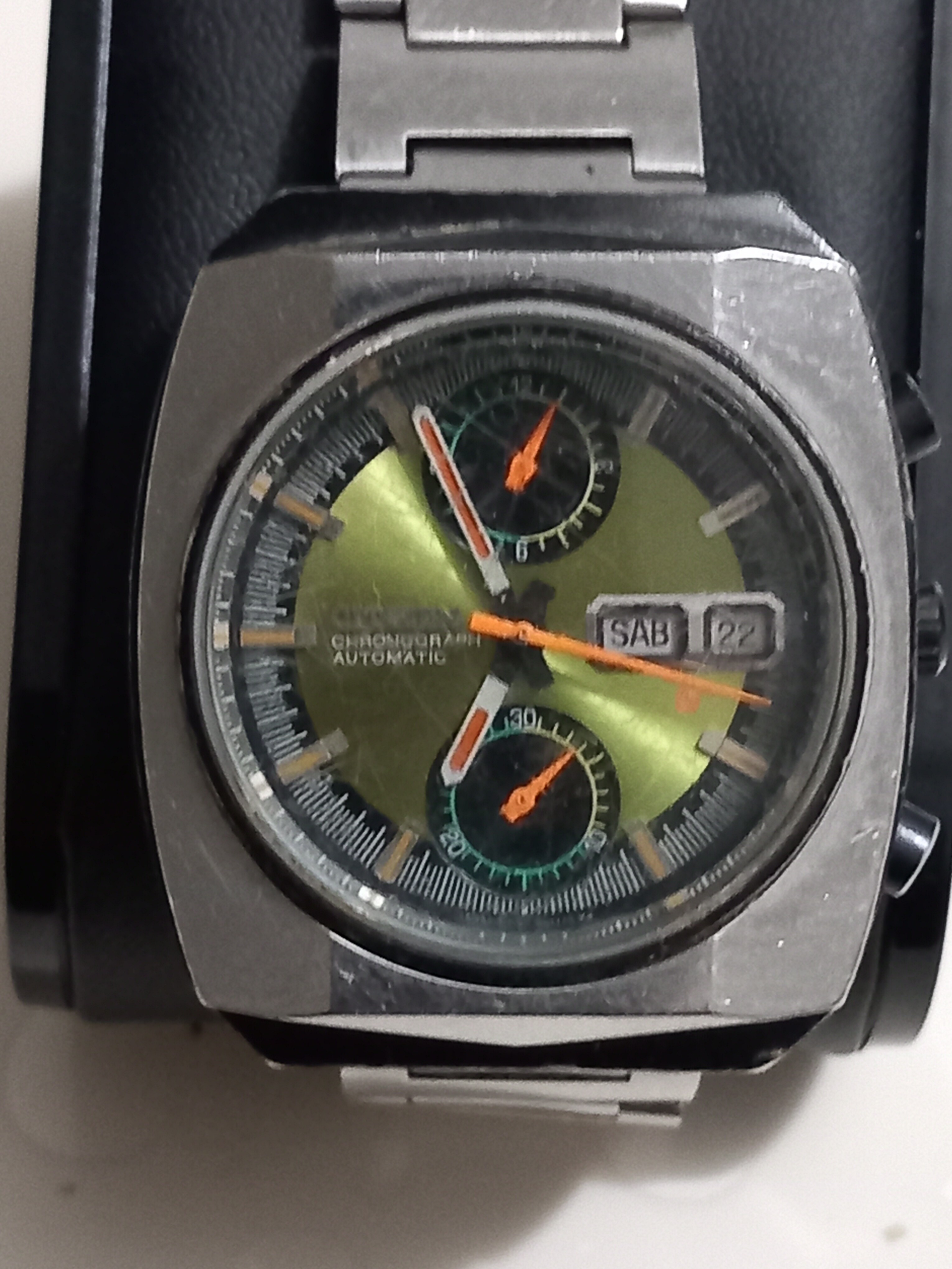 El domingo, en el rastro de Valladolid, junto al estadio Zorrilla, había un vendedor con varios de estos. También tenía un par de Orient calendario perpetuo y varios relojes vintage más; entre ellos un Certina DS con su tortuga en la trasera y todo, lástima del cristal astillado y de la esfera con manchas como de hongos que si no se hubiera venido conmigo; pedía 220€ pero se mostraba abierto al regateo.