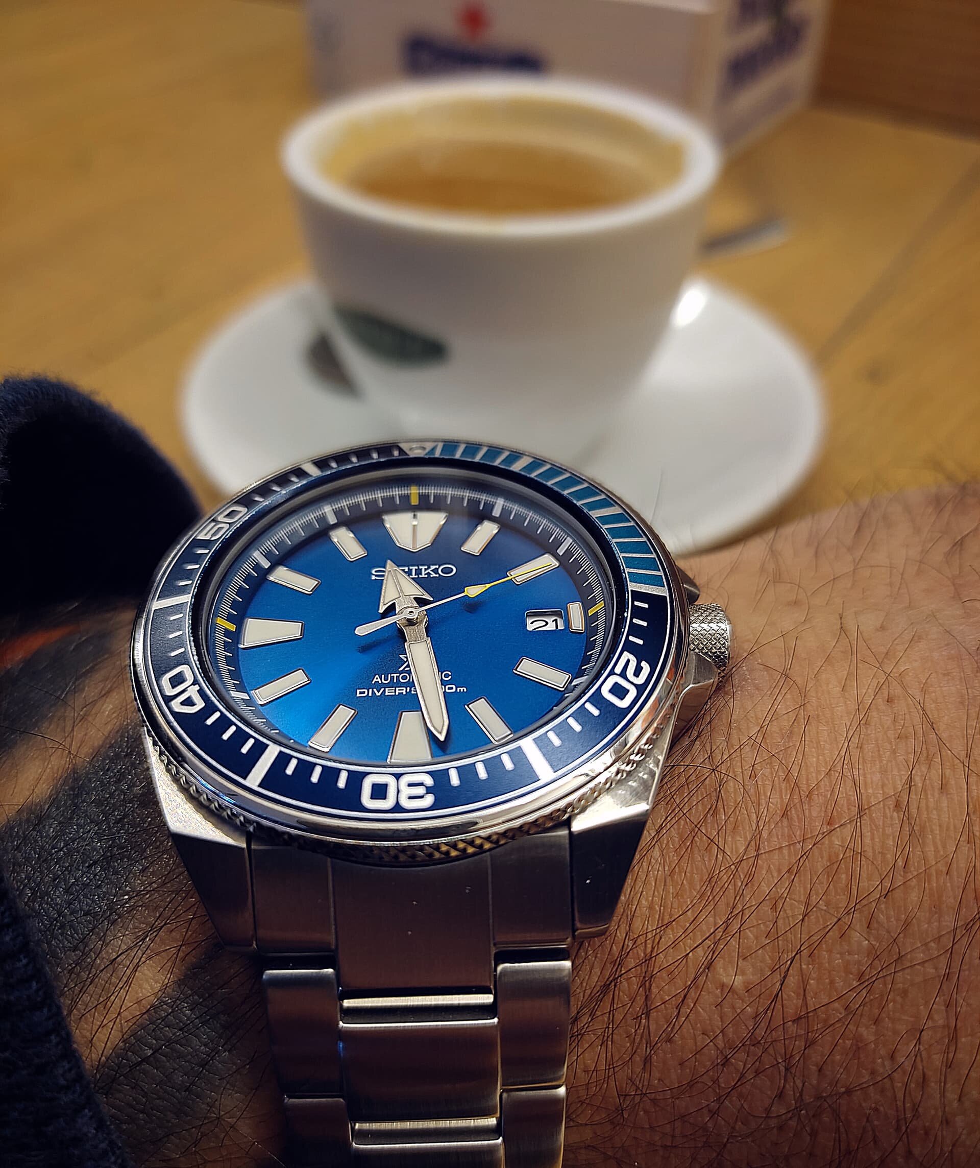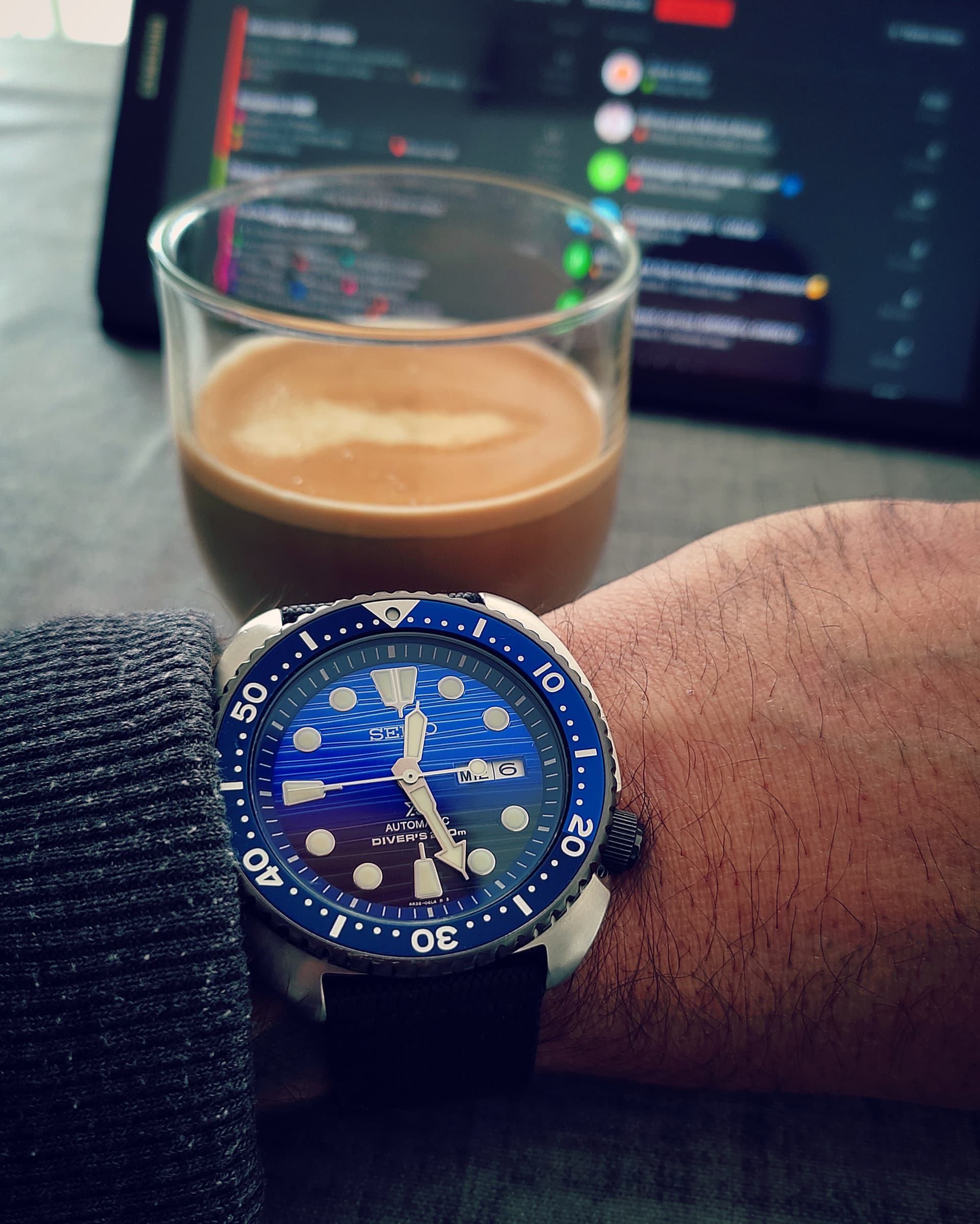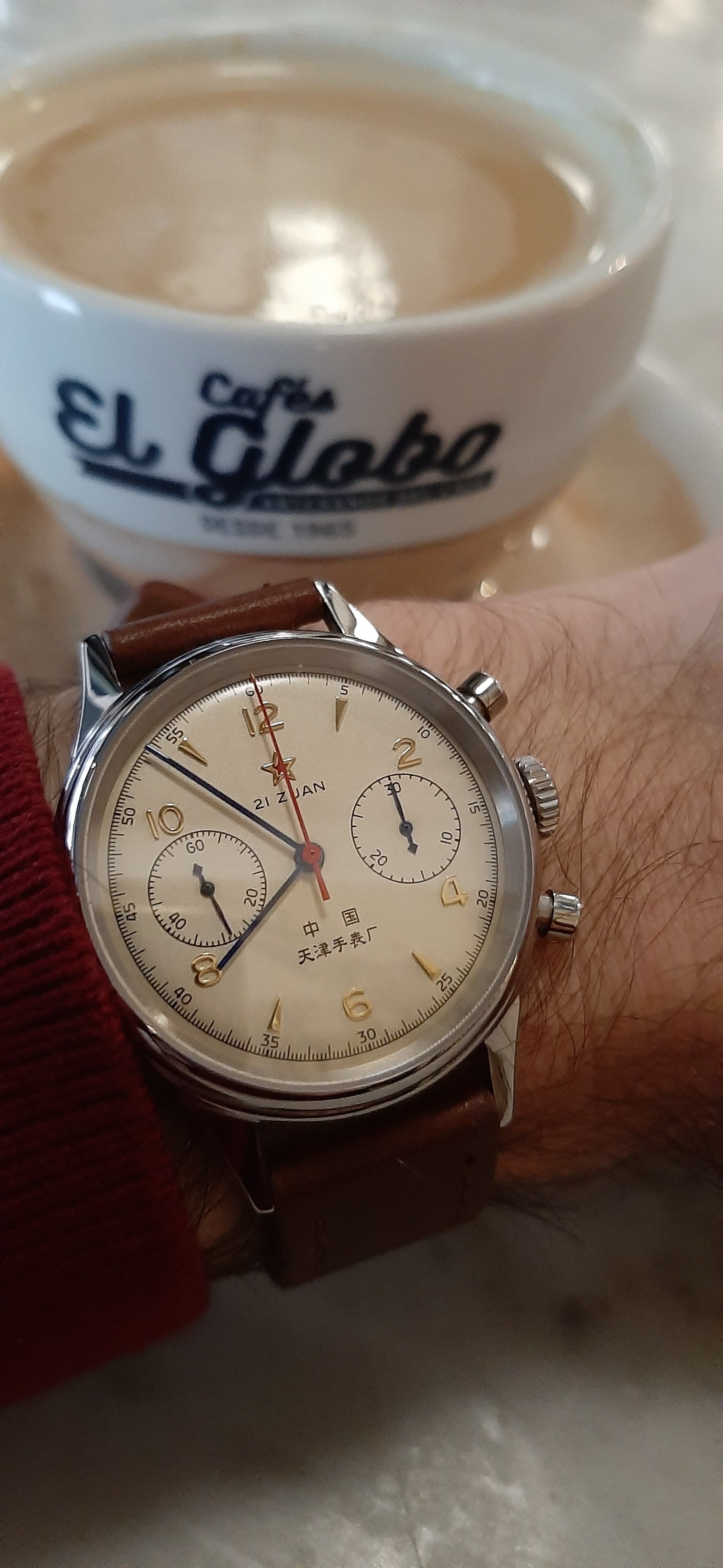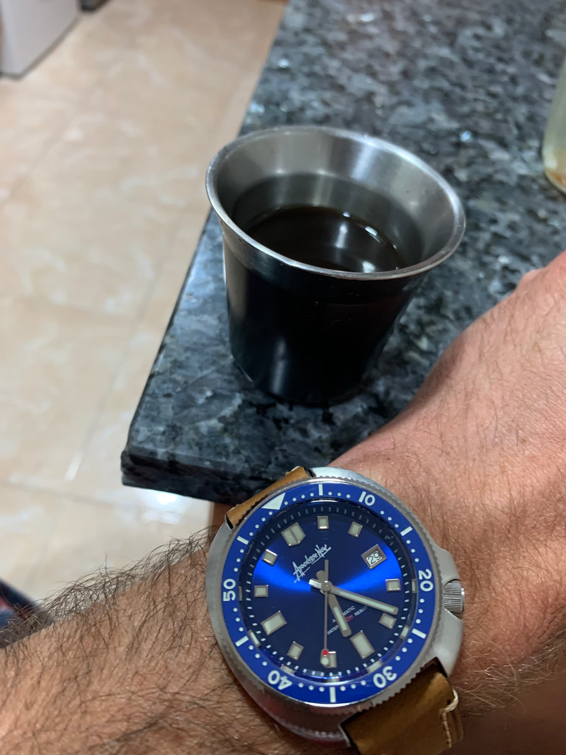 Un café de un tostador de mi ciudad, que se llama Astro, y mi pequeño Seiko military, al que le tengo cariño por ser mi primer automático