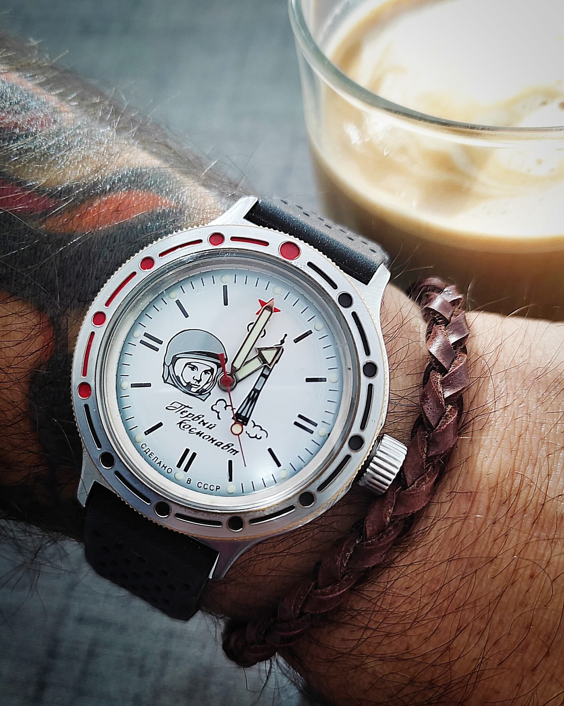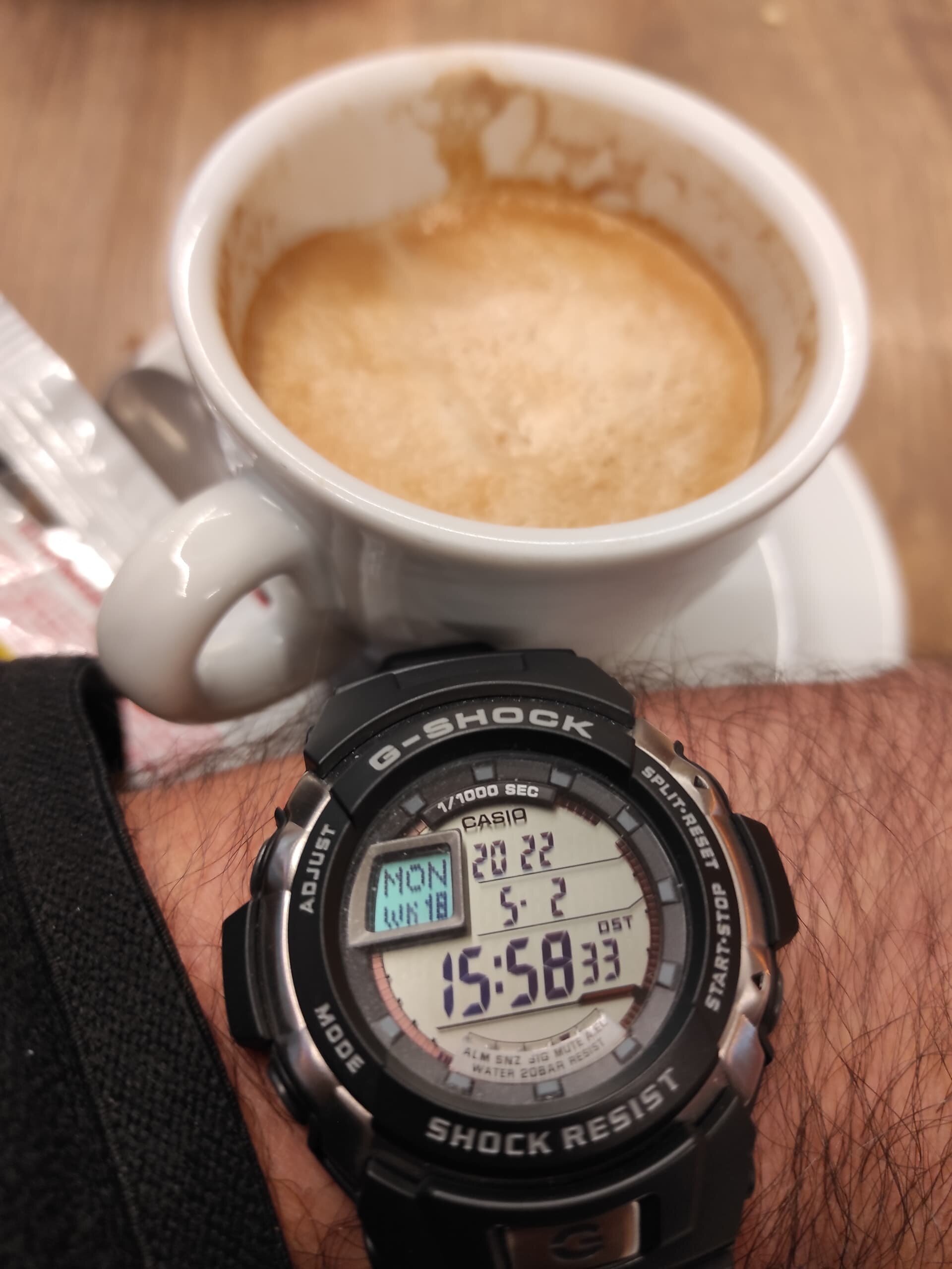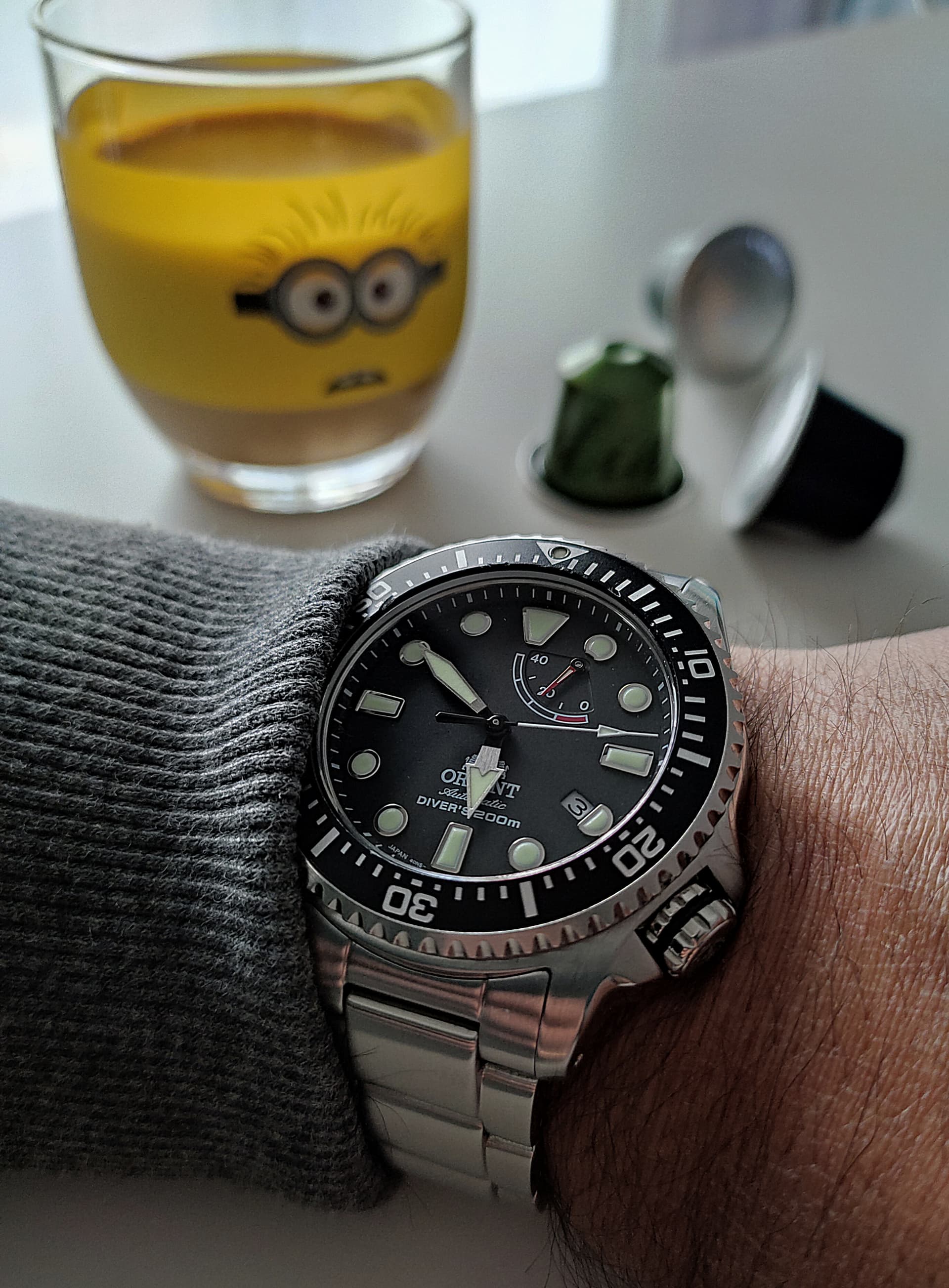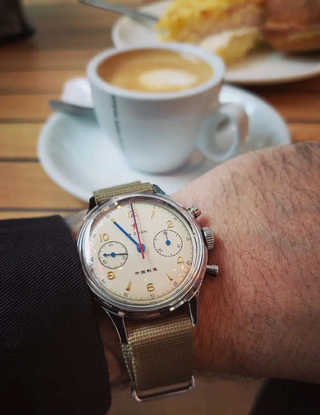 Un café de un tostador de mi ciudad, que se llama Astro, y mi pequeño Seiko military, al que le tengo cariño por ser mi primer automático