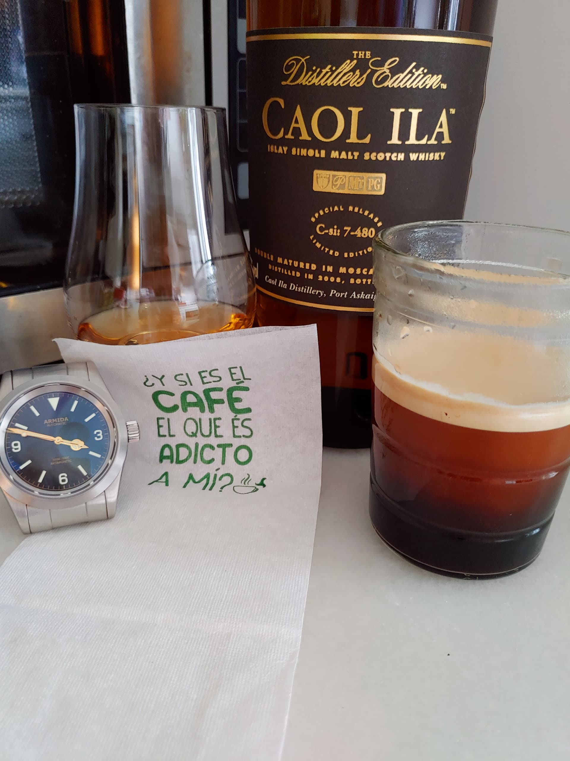 A mí me gusta más el café post-comida. Siempre acompañado. Hoy estreno botella y sí, está rica pero no le llega a la altura a mi amado Lagavulin.