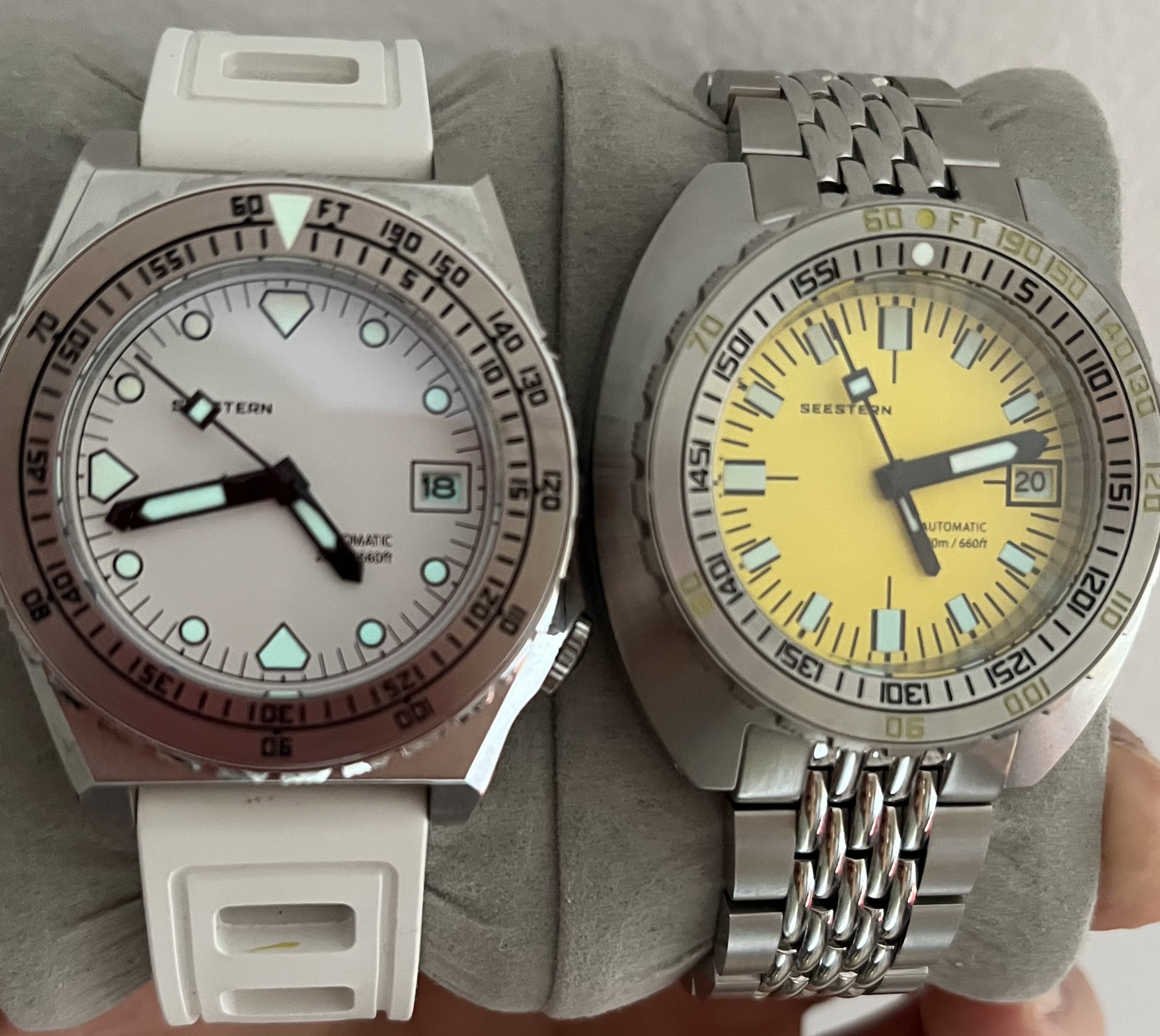 Entiendo este hilo como relojes que a uno le gustan y a tu entorno justo lo contrario. En mi caso eso es bastante habitual, ya que al tener una colección donde los divers de diversos colores son predominantes, mi mujer digamos que no elogia mucho lo que suelo llevar en la muñeca . Mención especial a estos dos: de mis favoritos y de sus más criticados