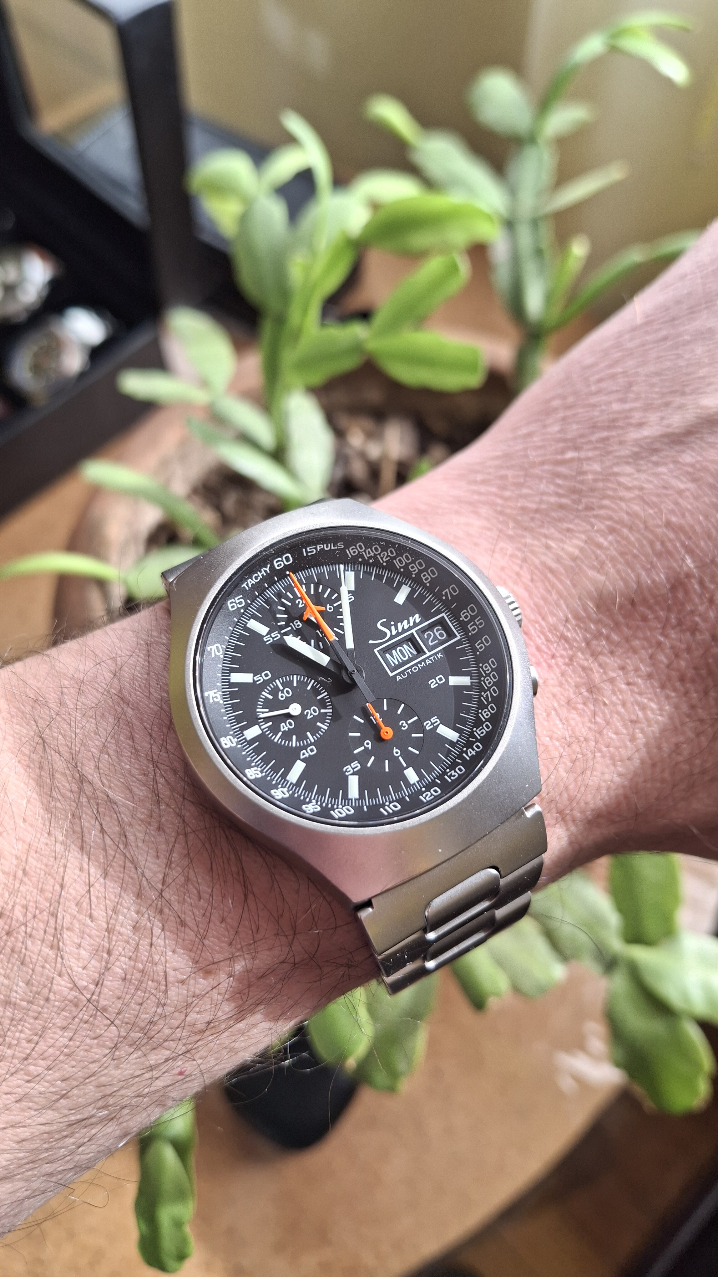 Mi primera opción era un Omega Speedmaster Mark 4.5, pero no aparecía nada a un precio razonable… y de repente chafardeando, un día apareció este modelo de Sinn que desconocía y fue um flechazo… siempre me habían gustado loa diseños funcionales y sencilloa de Sinn. Aquel primer 157st ti (en titanio) se me escapó, pero años después apareció este otro en acero, y completamente restaurado.
