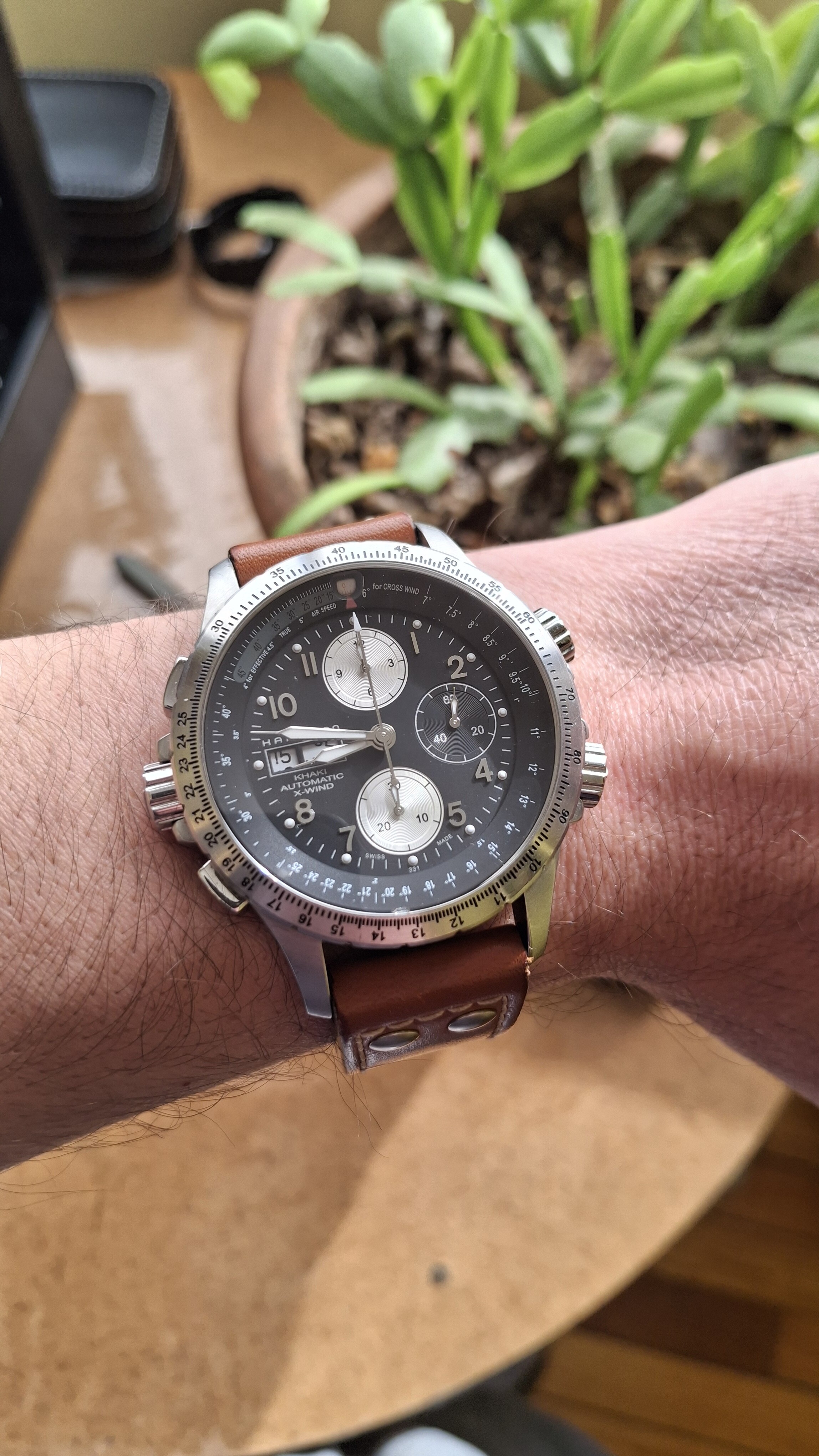 Me encantaba porque el diseño de los Khaki es de los que más me gusta, y si lo juntas con la original complicación de cálculo y lo contundente de sus 44mm y sus coronas (aunque en muñeca es sorprendente lo bien que queda), era lo que necesitaba… por esta época me habían hecho fijo en mi trabajo y me autoconvencí para regalarme un reloj más caro.