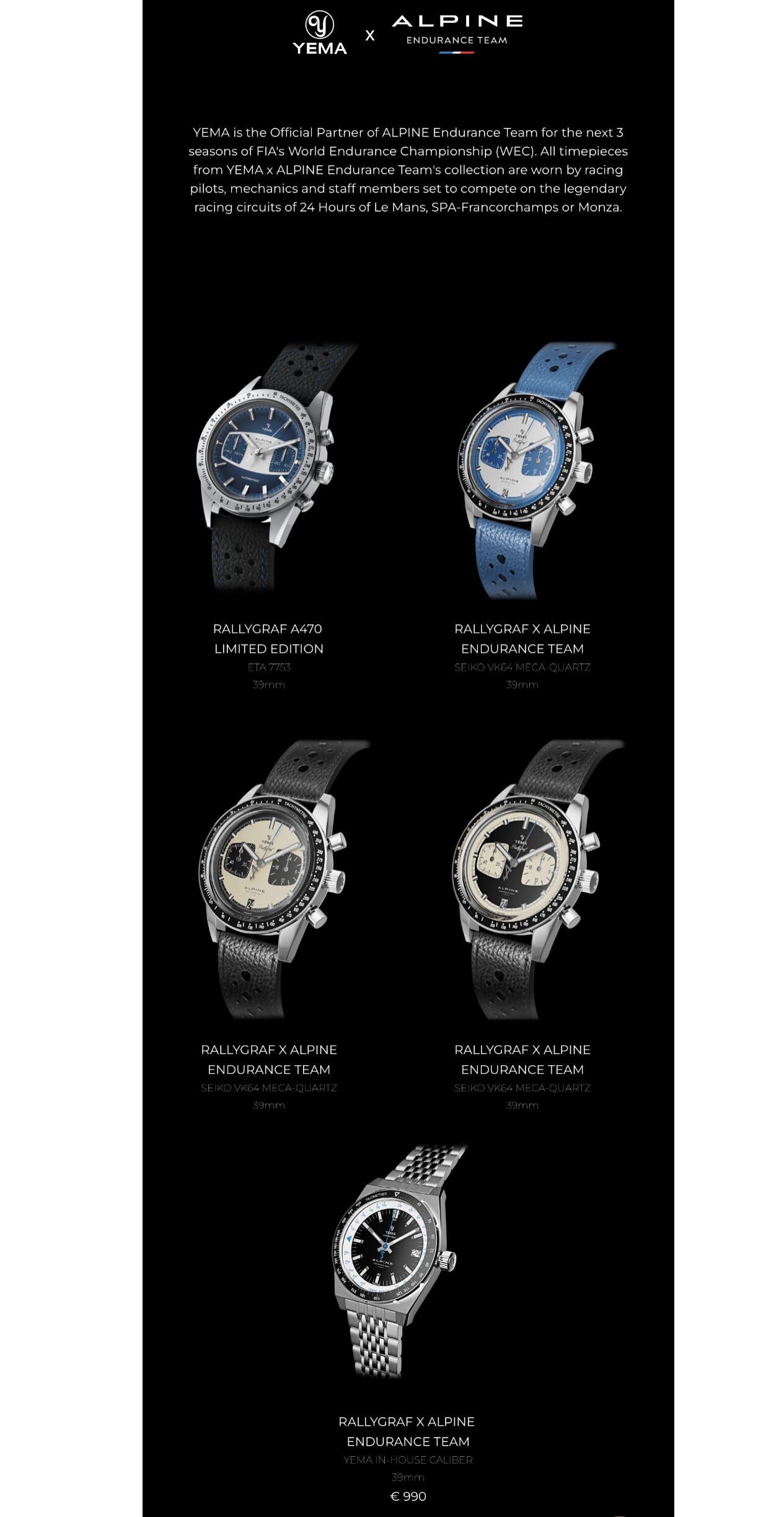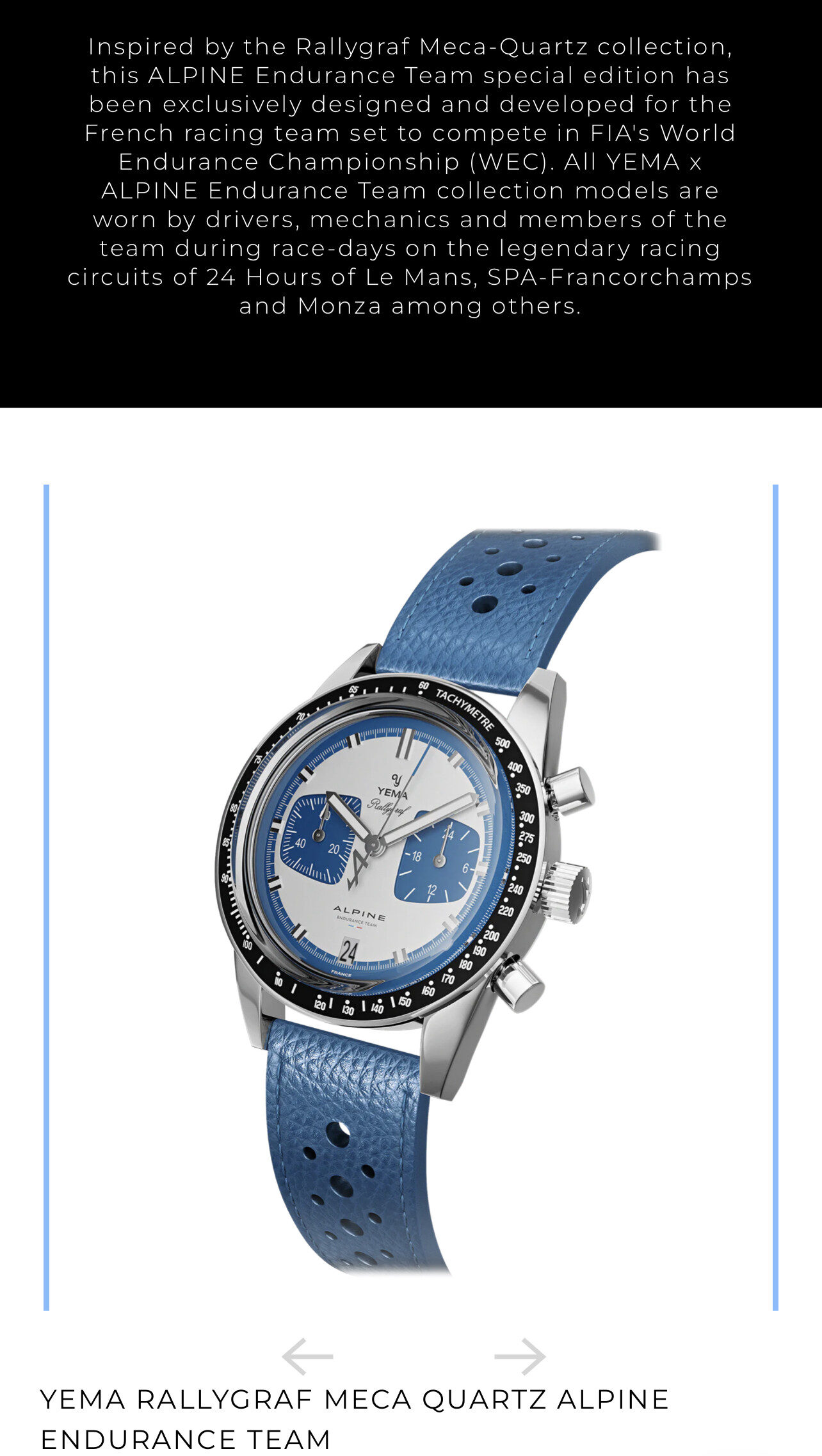 Estoy suscrito a la newsletter de Yema y lo vi ayer. De momento estoy dudoso con el rallygraf azul y blanco. Me gusta bastante la personalización que han hecho, en especial la segundera, pero ya tuve un rallygraf distinto, que en una oferta me costó la mitad que lo que piden ahora, y el reloj en general tampoco me terminó de convencer.
