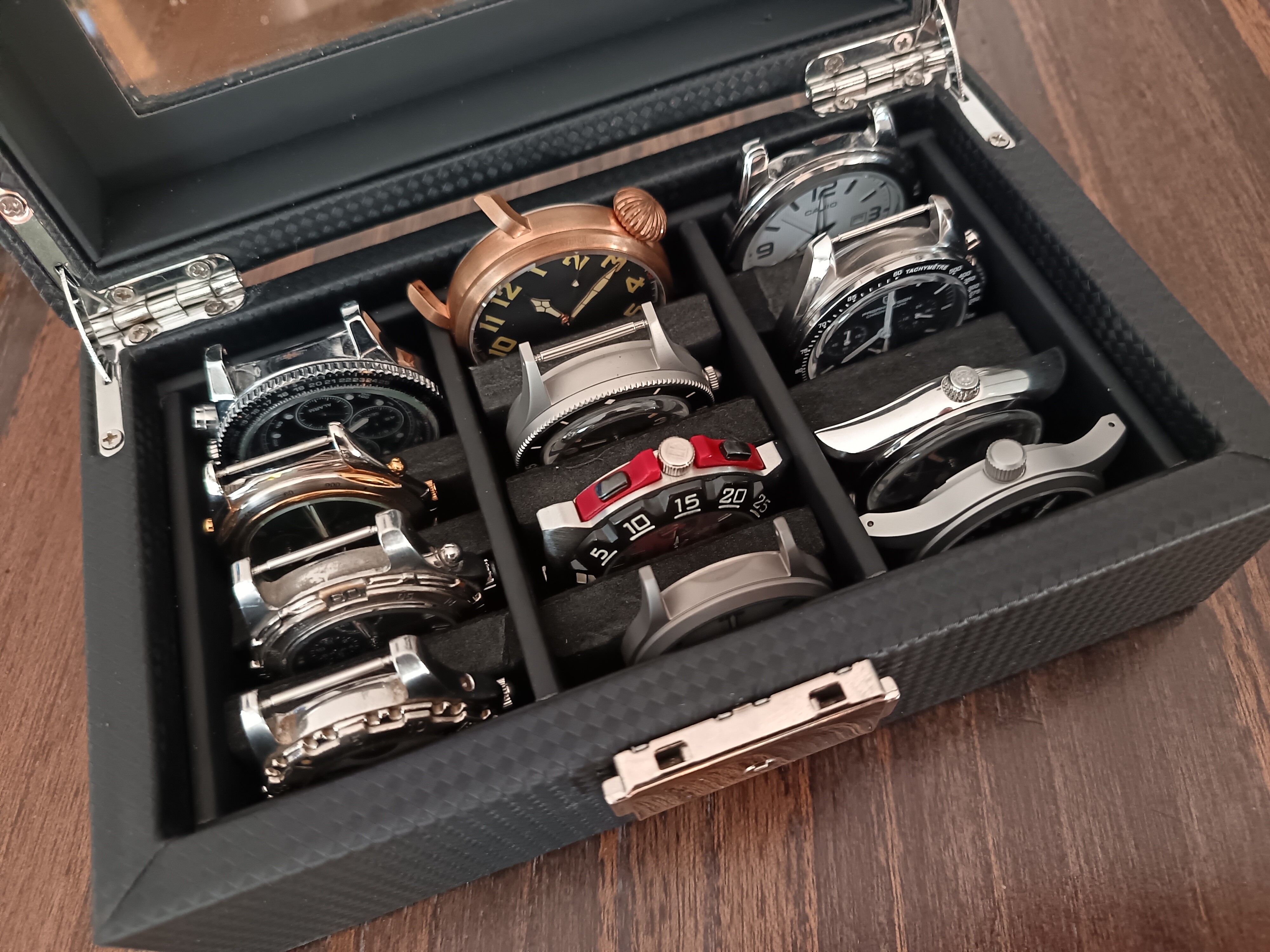 Aquí descansan, como pequeñas lápidas, los relojes que no uso de forma frecuente (aunque nunca olvidados).