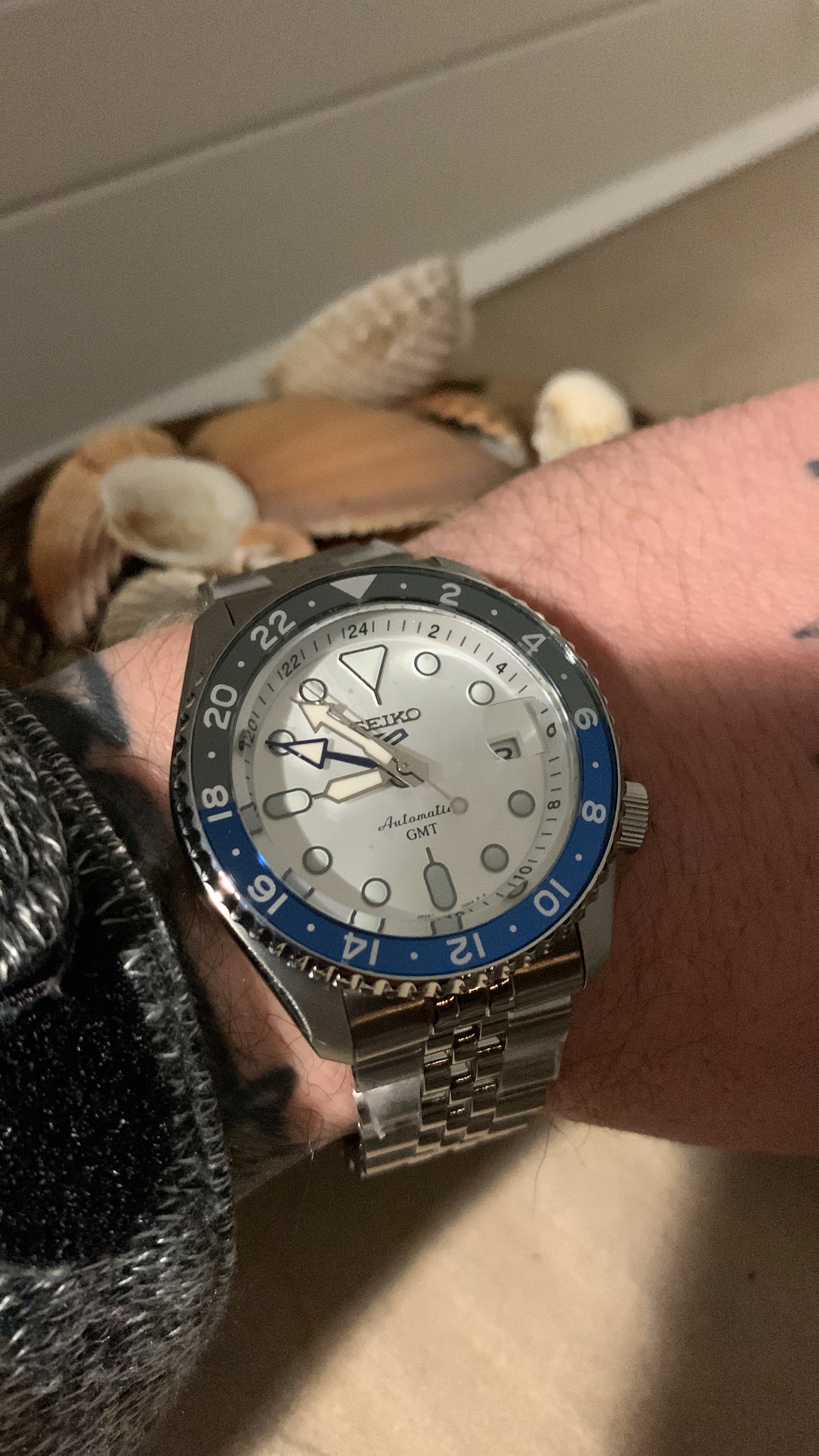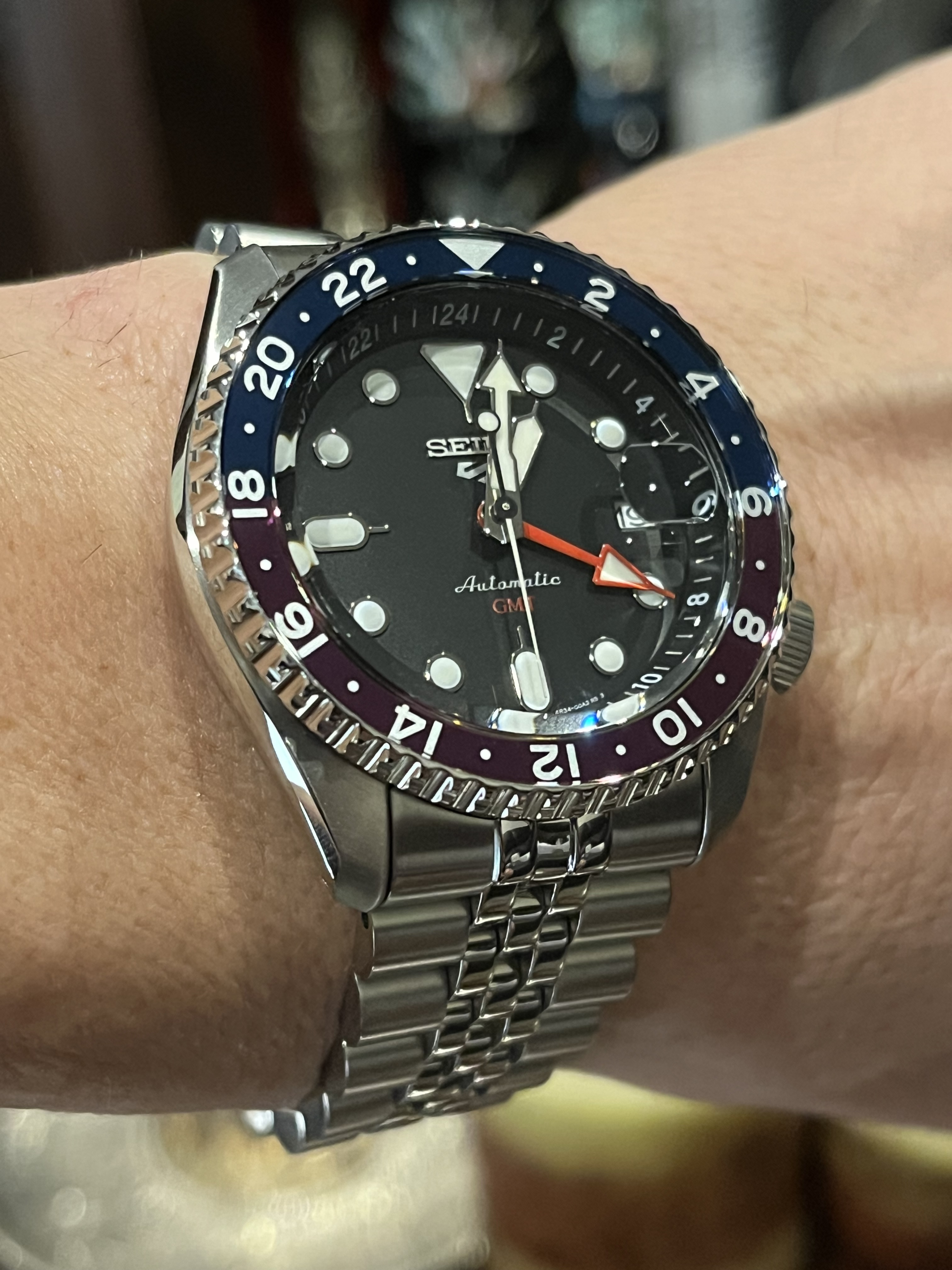 Lo que más me gusta, y no se si los seiko 5 no GMT lo tienen, es cristal que cubre el bisel. Le da un aspecto guapísimo.