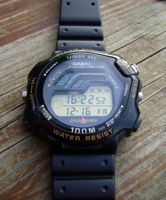 un reloj de los 90 dificil de conseguir en buen estado, un crono duro como una piedra y que siempre me ha gustado por su estetica un tanto peculiar y sus 6 pulsadores