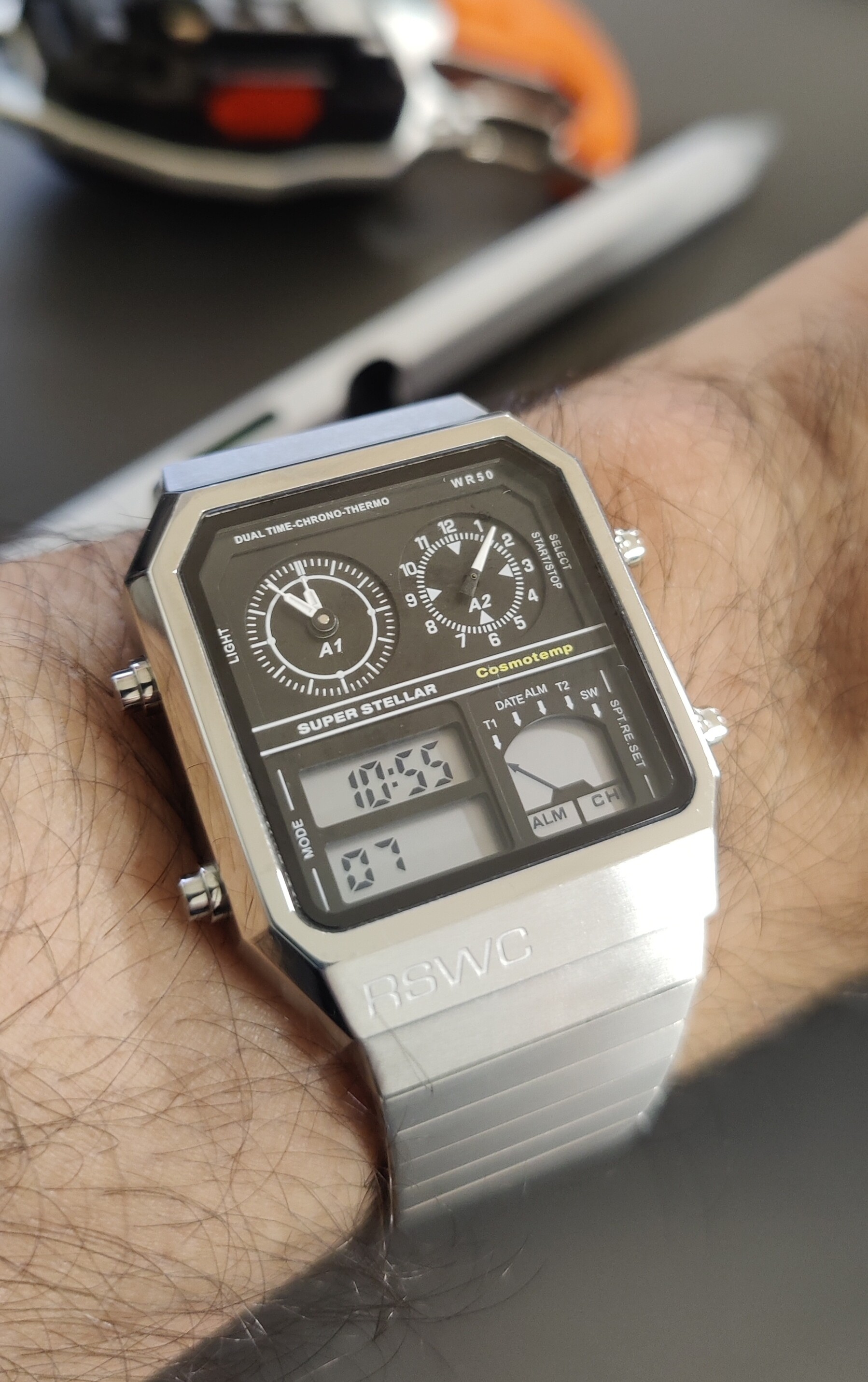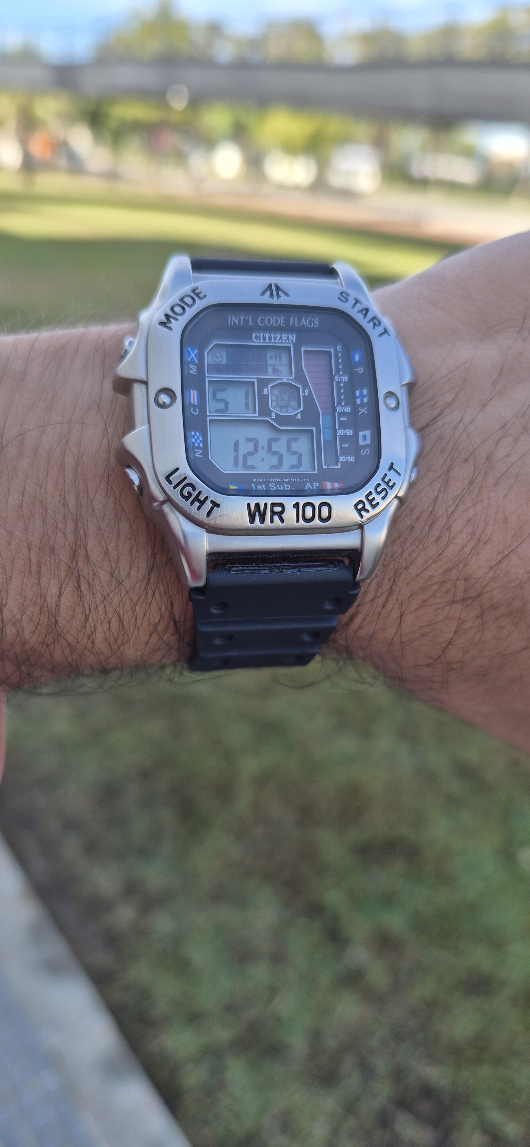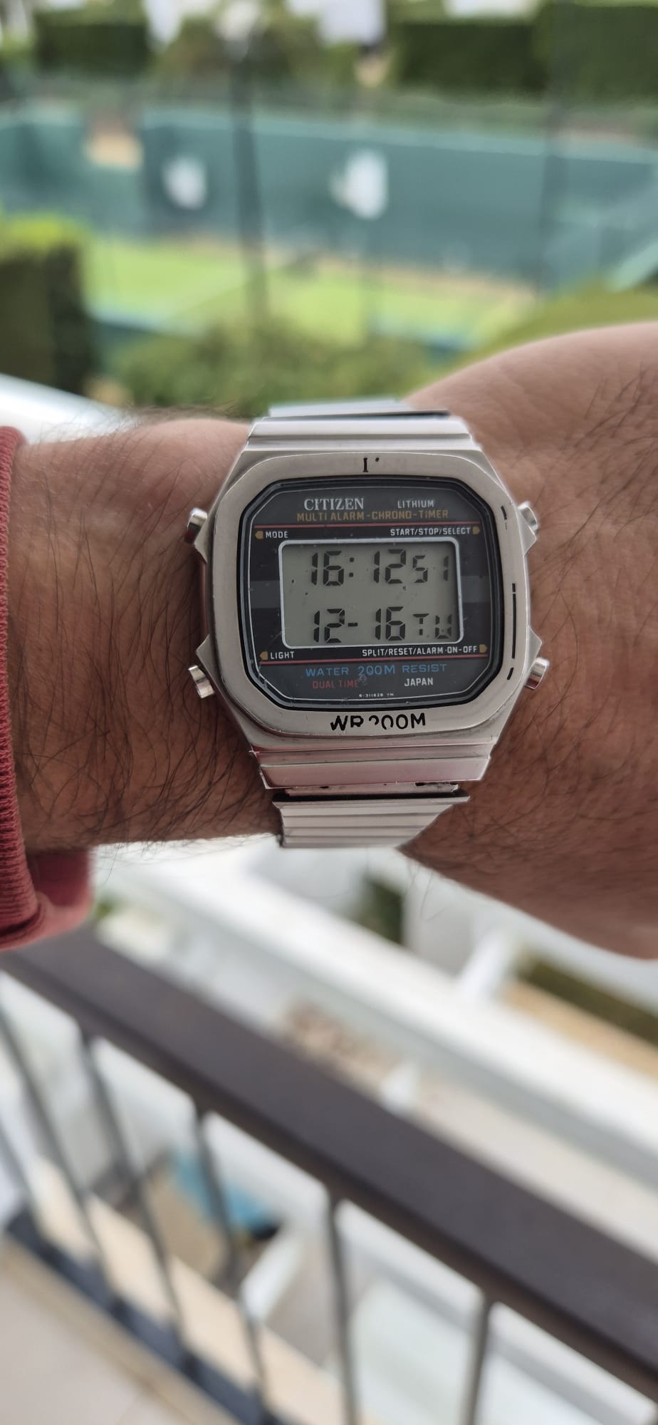 Es un dq 7031.Un relojazo.Todo de acero, roscado, 200 WR.El módulo es idéntico al del “Gshock” de Citizen.4 Alarmas, cuenta atrás y crono
