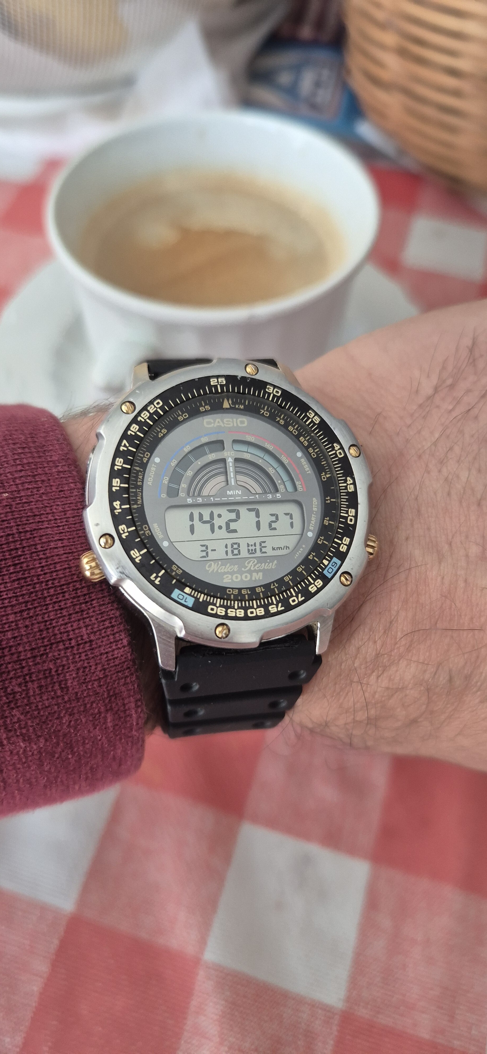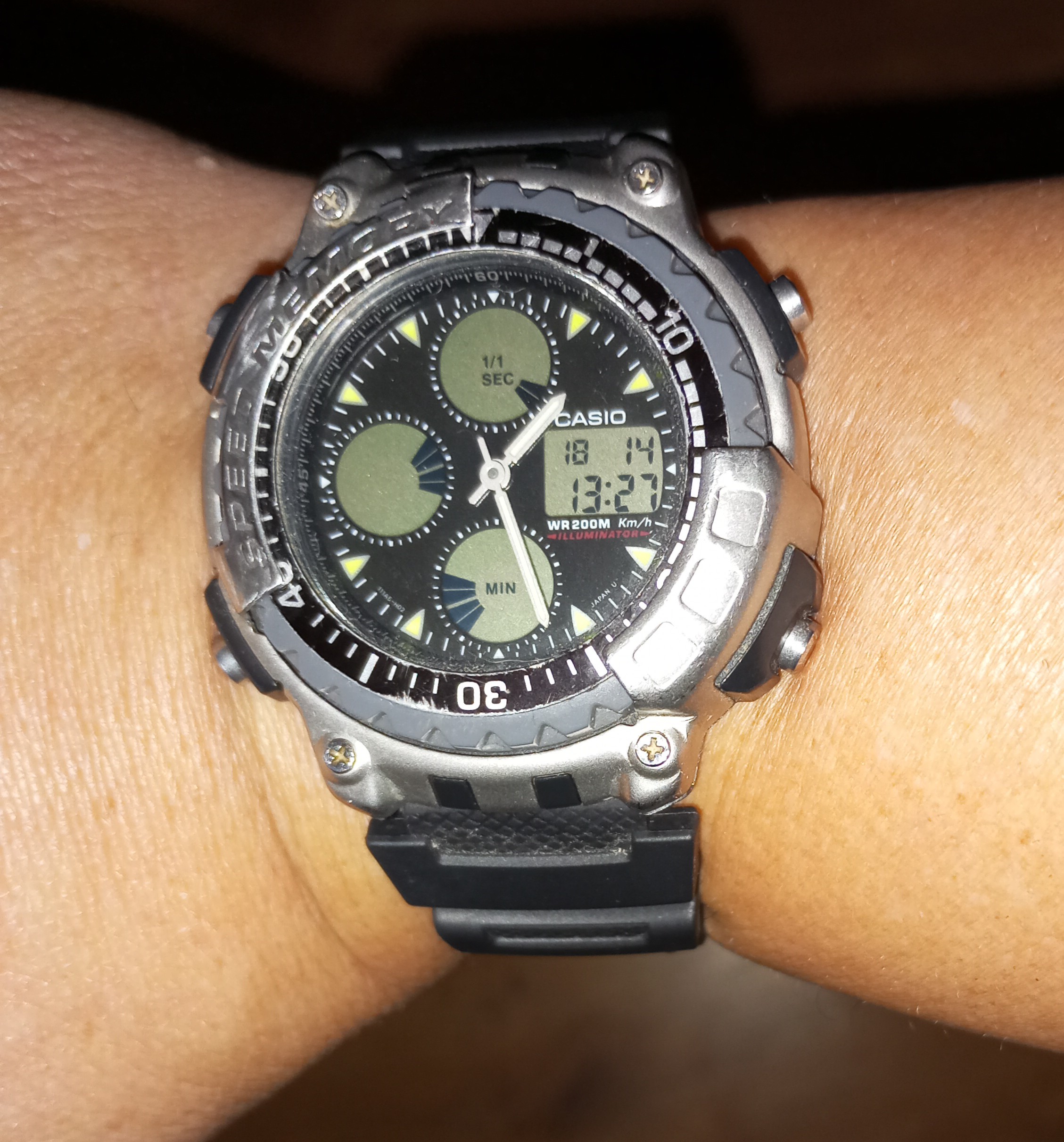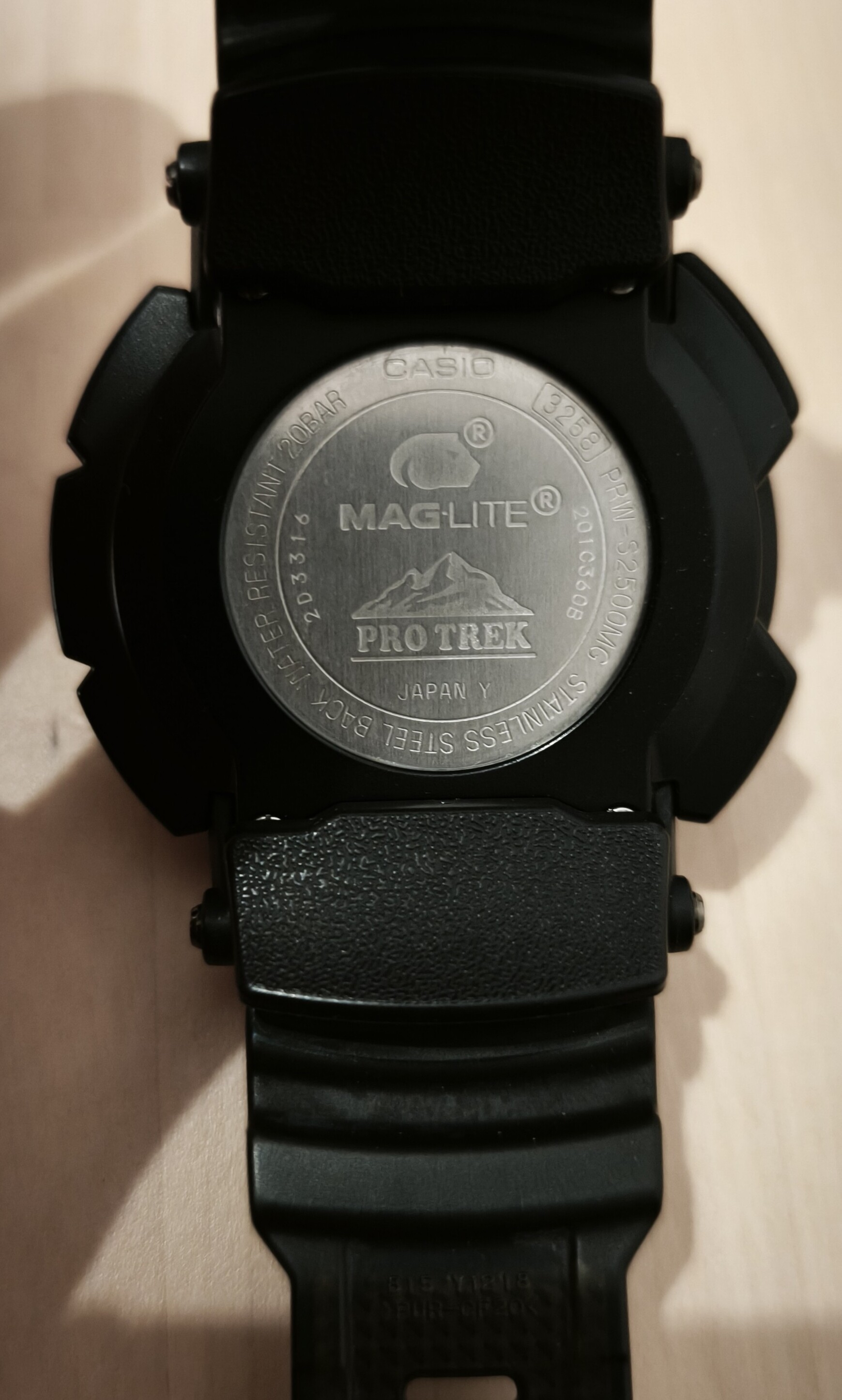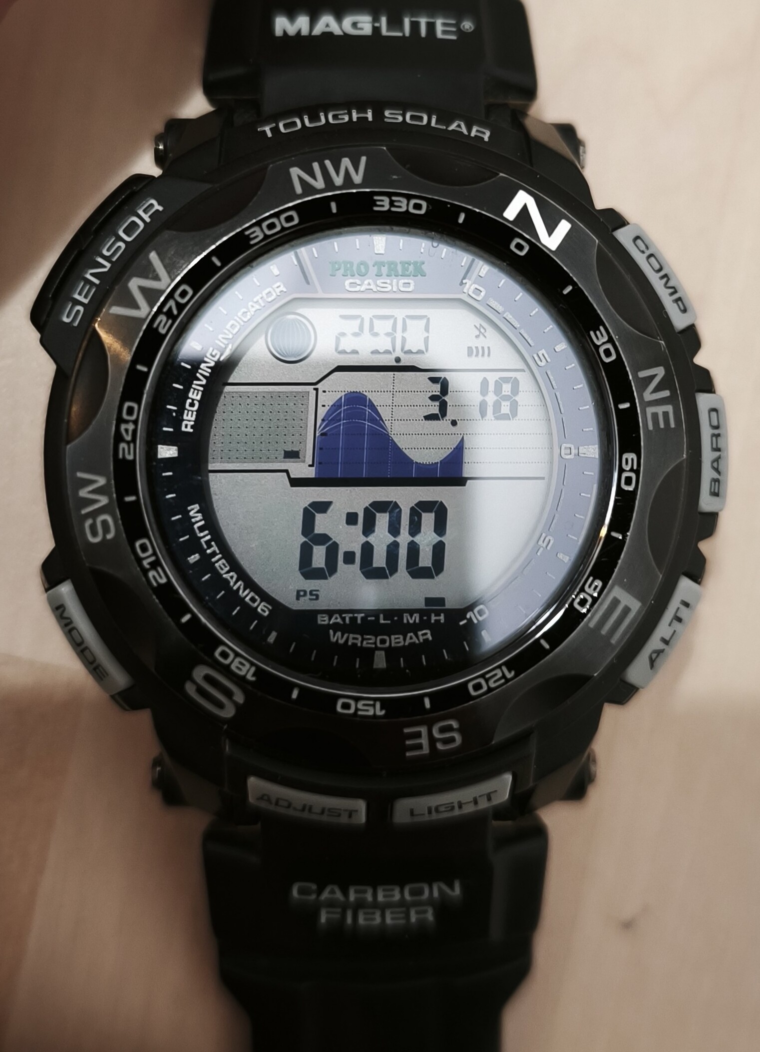 Día variado, y saco unas horas este magnífico ProTrek 2500 serie Maglite, con zafiro, bisel diferente en acero y menos voluminoso, carbono, y detalles varios.