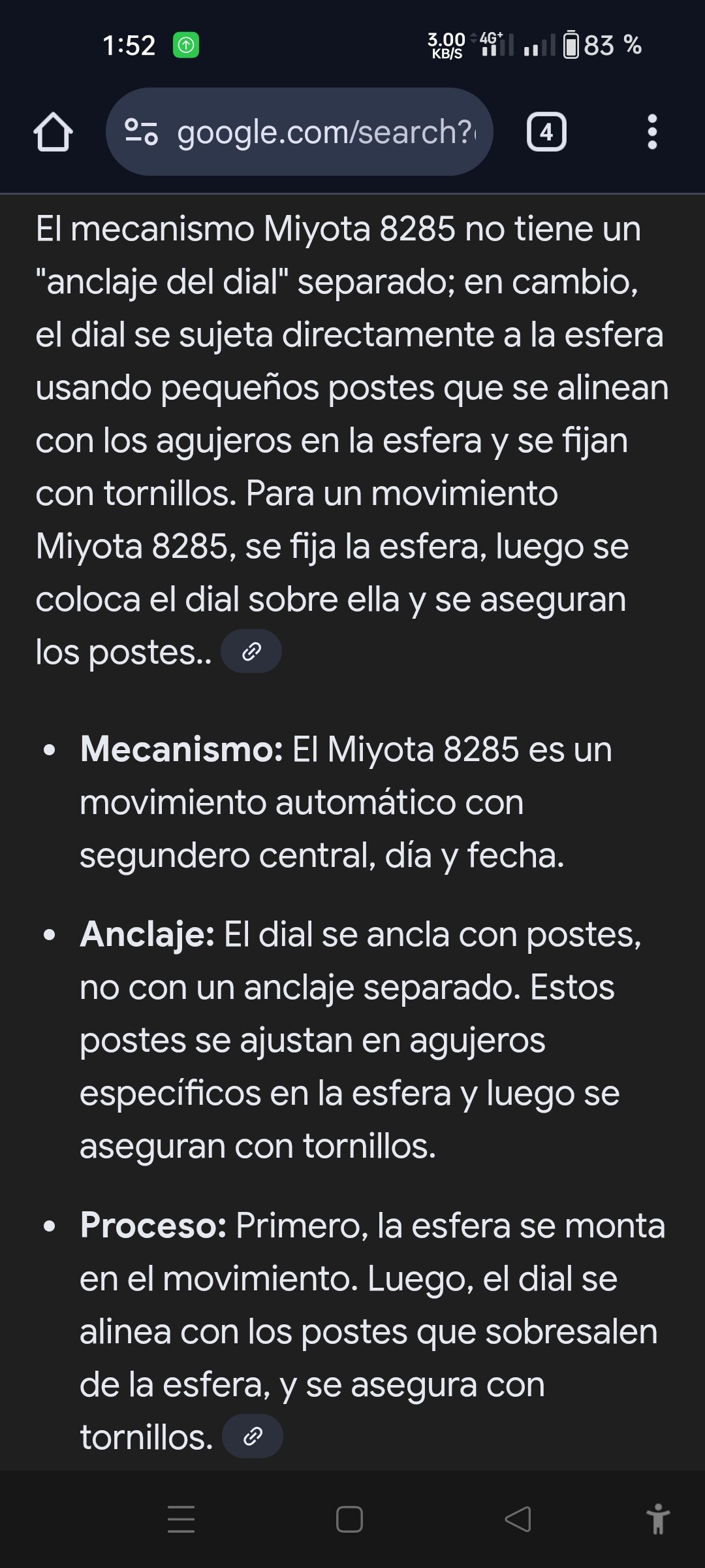 Hola buenas, estoy montando un reloj tipo day date con un movimiento miyota 8285 (no oficial de la marca).