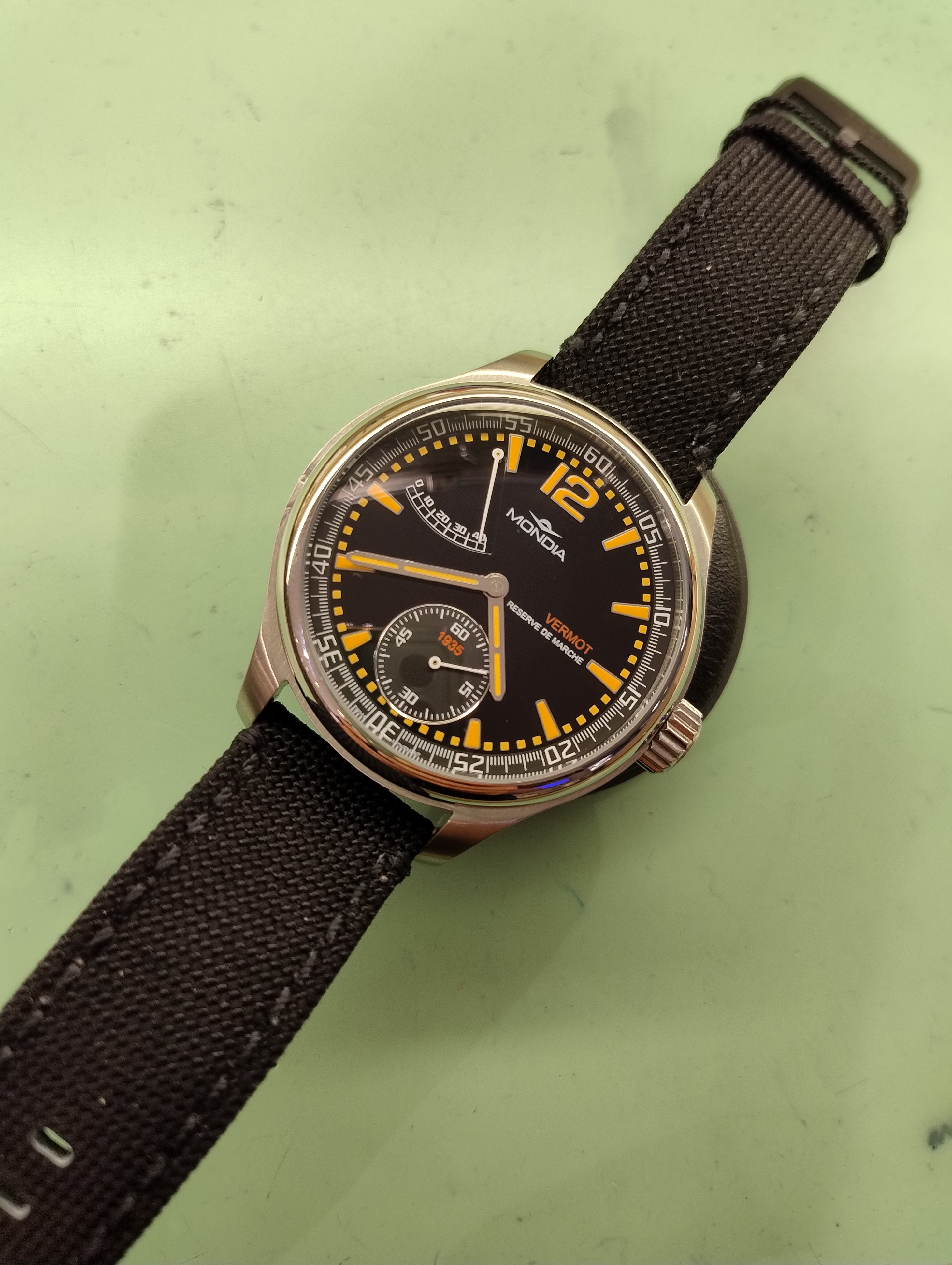 Especial mención a su calibre unitas 6498 manual, con la complicación de indicador de reserva de.marcha,y al acabado de su esfera lacado brillante.