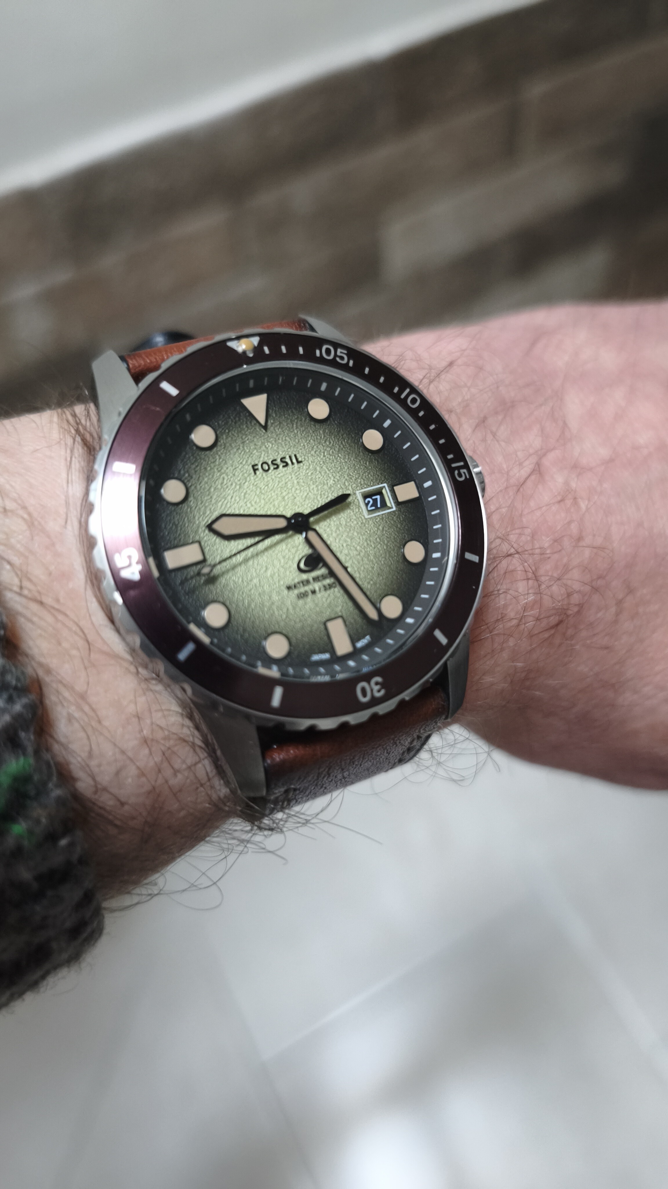 Hoy toca Fossil (y sí, le quité el cíclope). Este dial me enamora, igual que el color de las agujas y los índices: