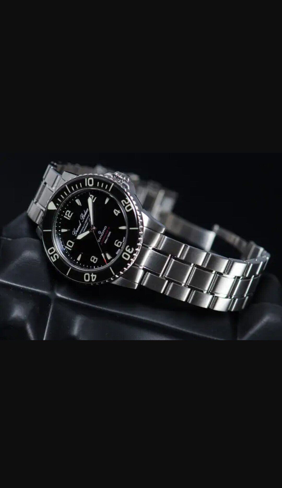 Es un diver de fondo negro y bisel negro.