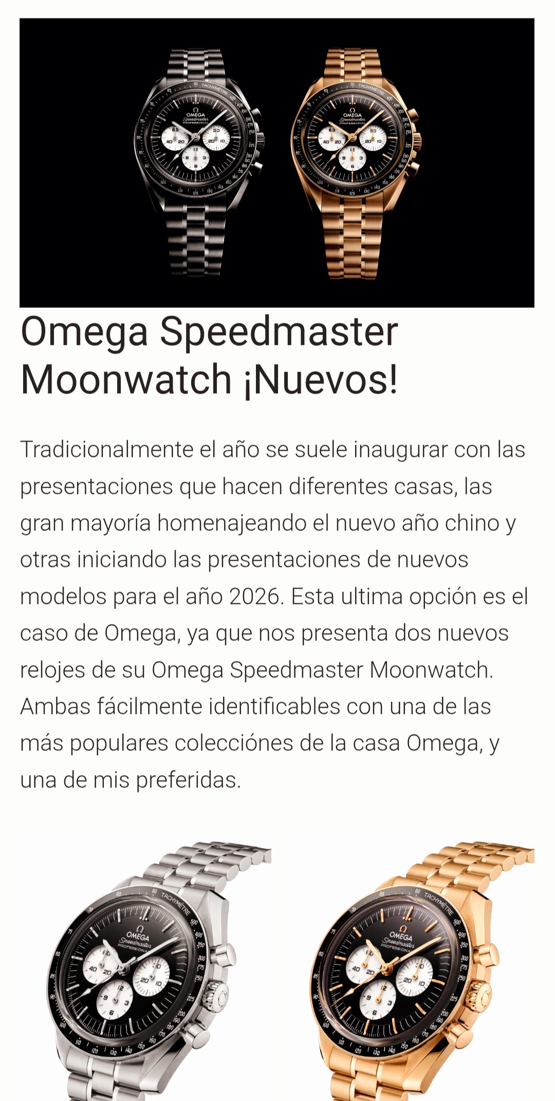 Y sobre el título del tema, pues a mí el speedy me gusta mucho, pero a los precios de hace 15 años. Pero como no van a volver me contento con otras piezas suizas, chinas y sucedáneos del speedy y otros archigriales, que también me alegran el día.