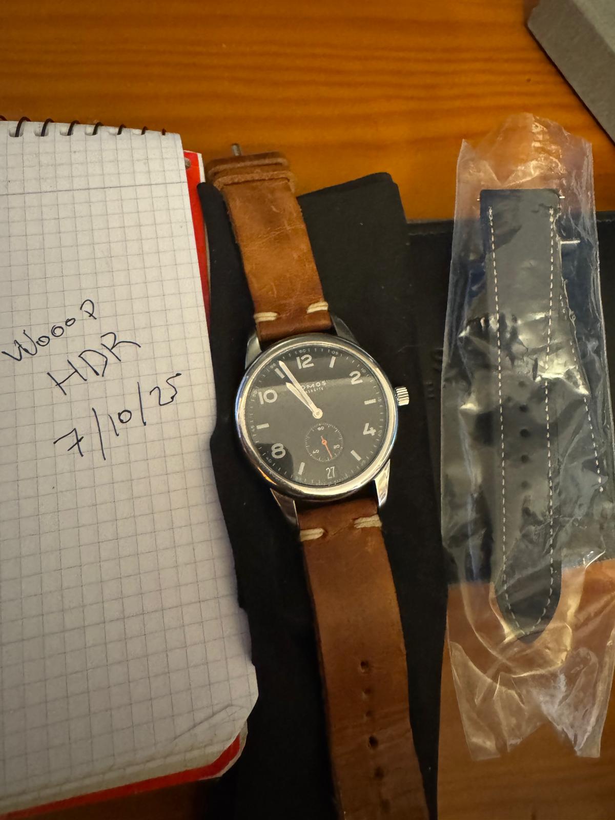 Agujas rodiado, con incrustación de superluminova en blanco, segundero naranja fluorescente