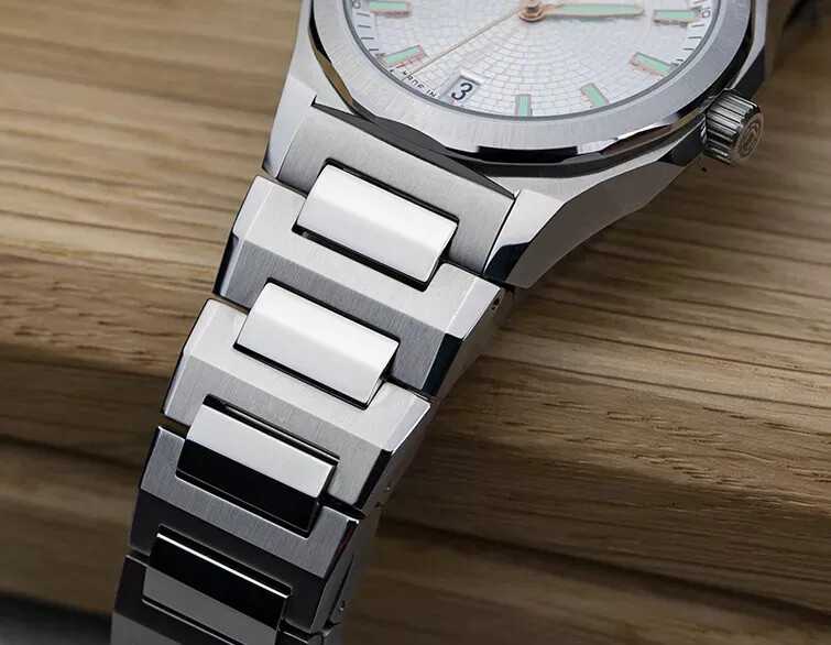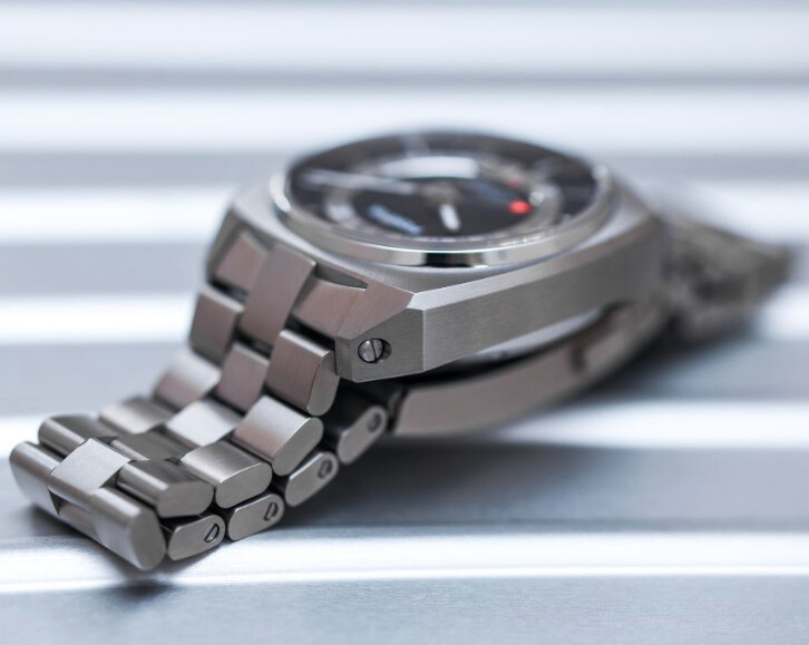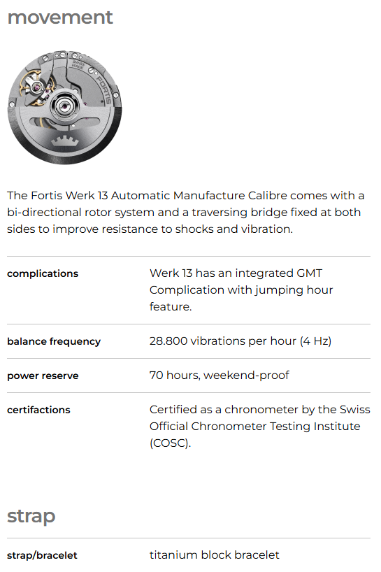 Calibre manufactura a 28800 con 70 horas de reserva (a prueba de fines de semana, dice ), con caja de titanio grado 5 (que debe ser mejor que el grado 4, además de tener mejor rima).