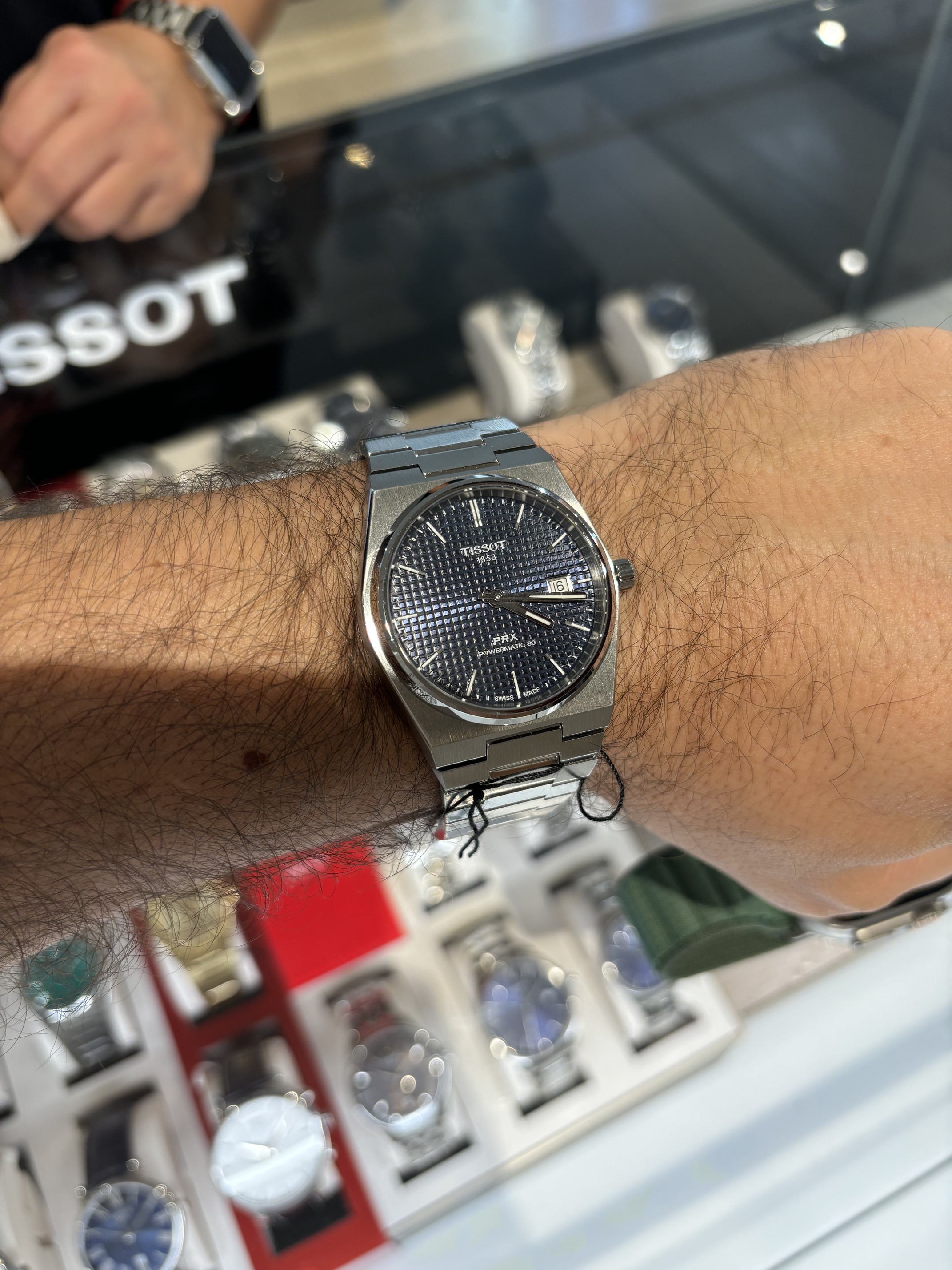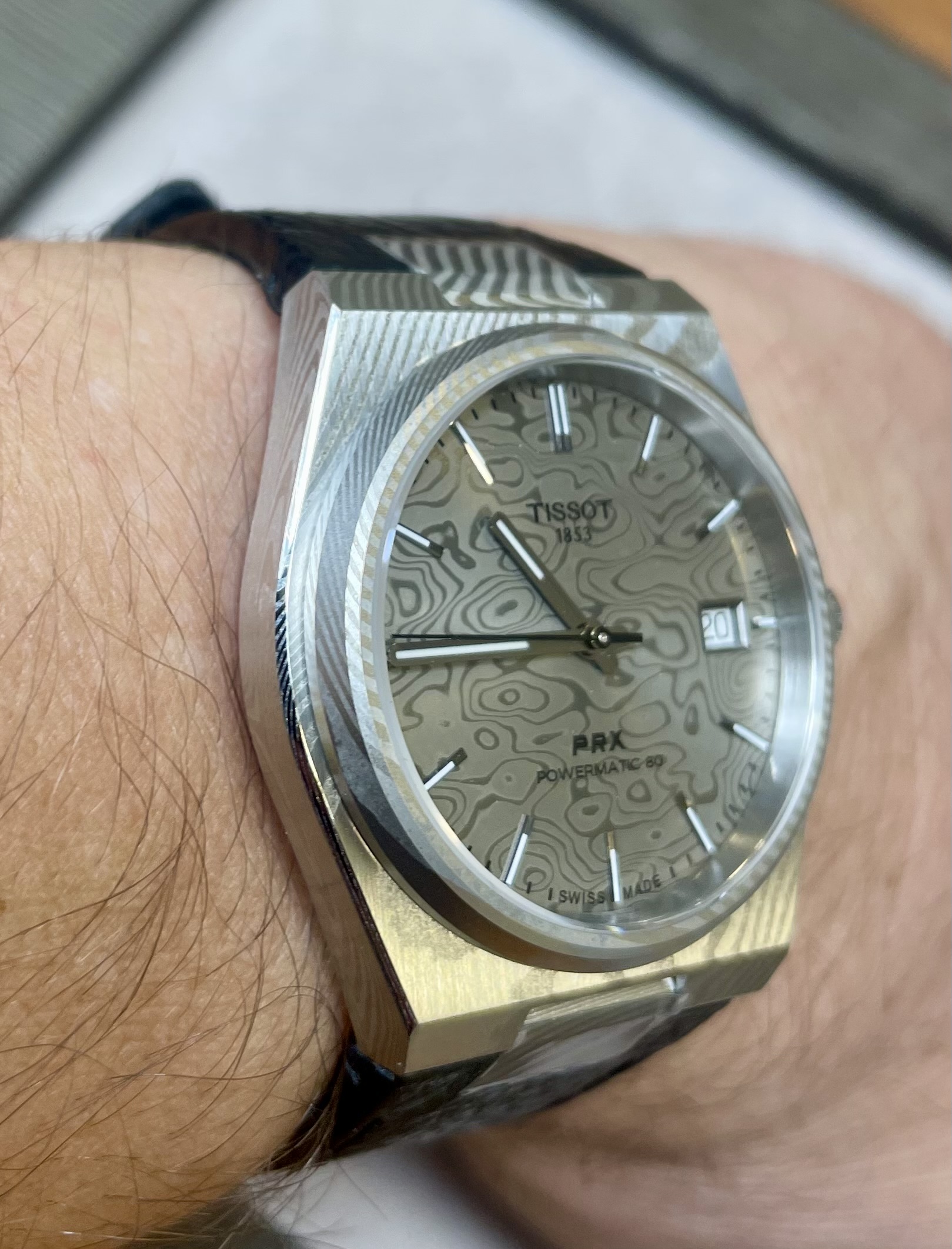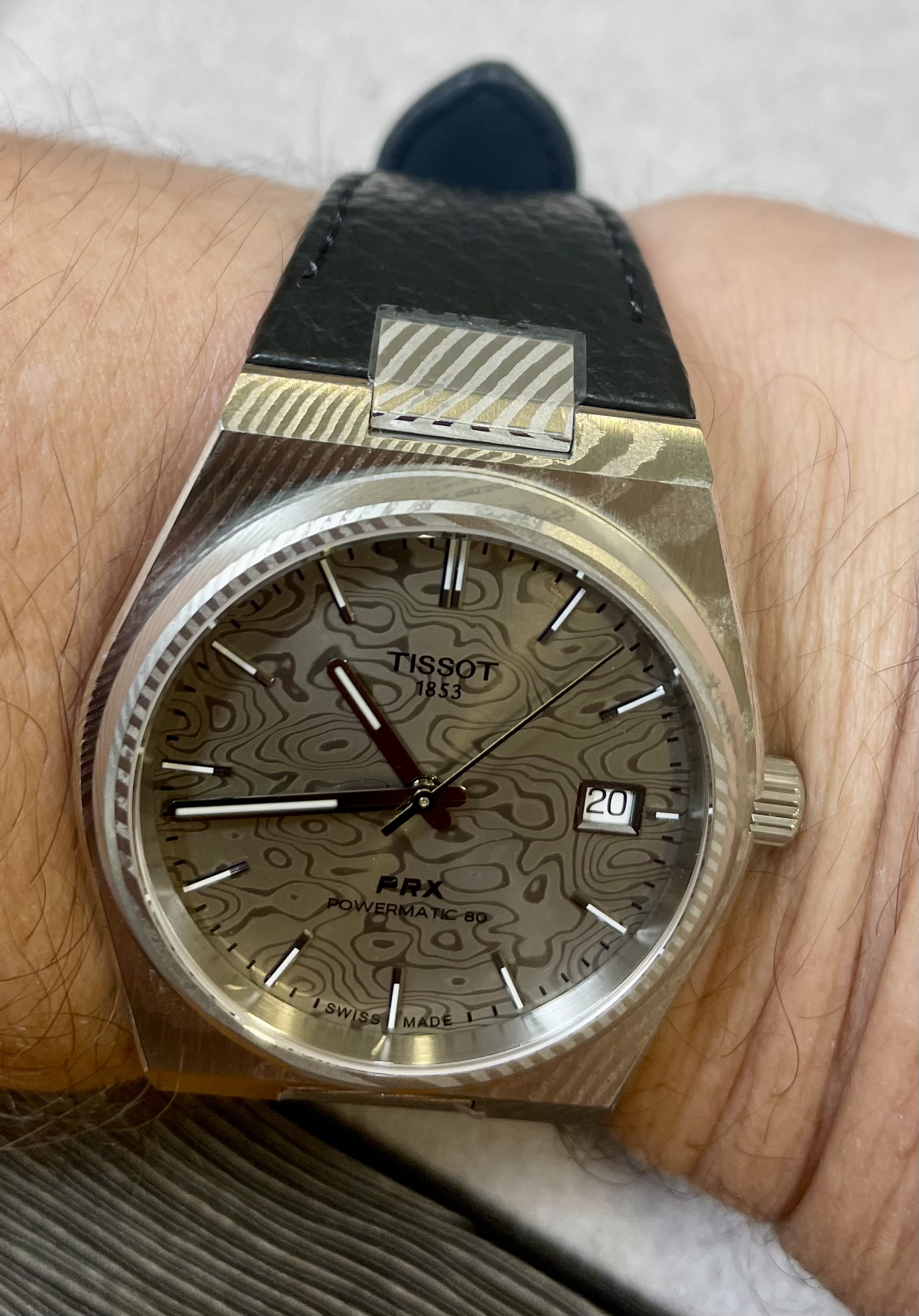 38mm Tissot PRX Titanium y Acero Damascus. El mismo que menciona @Airboy.