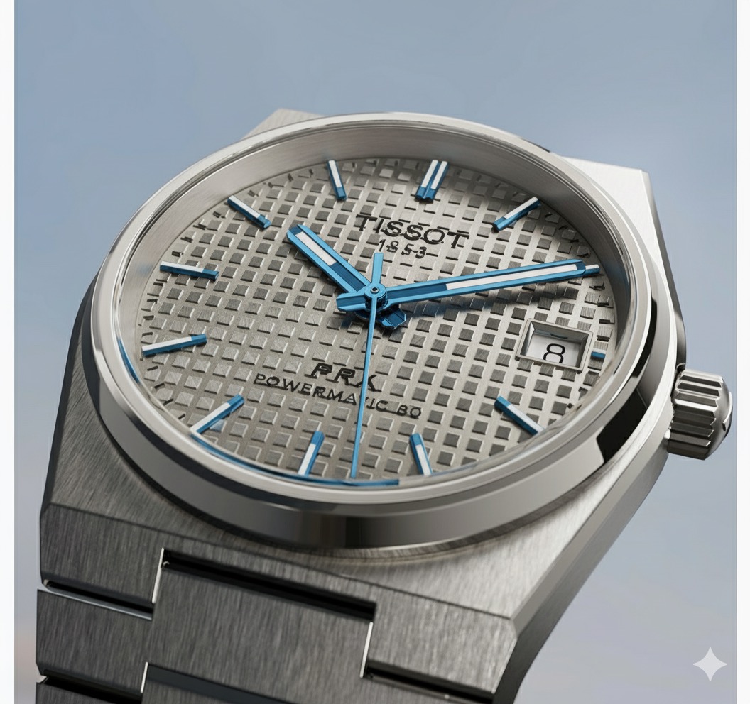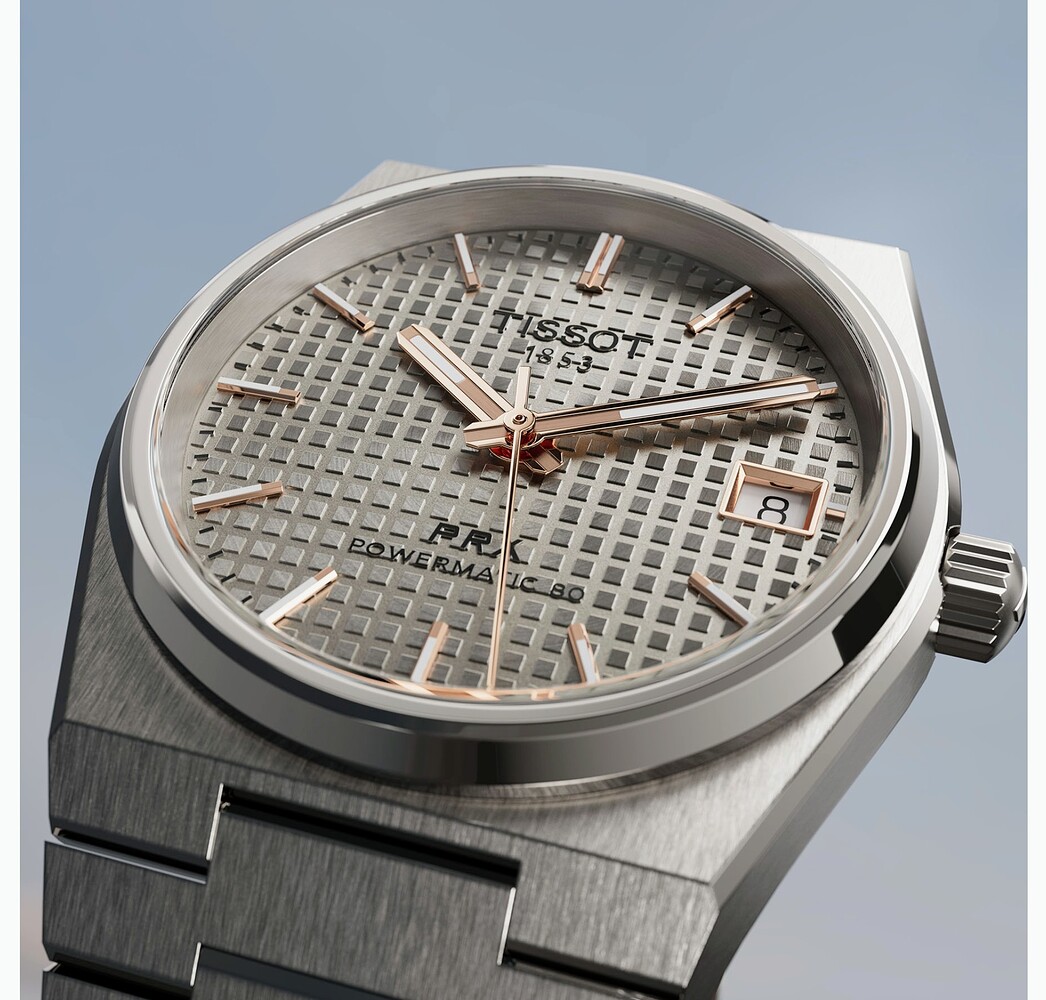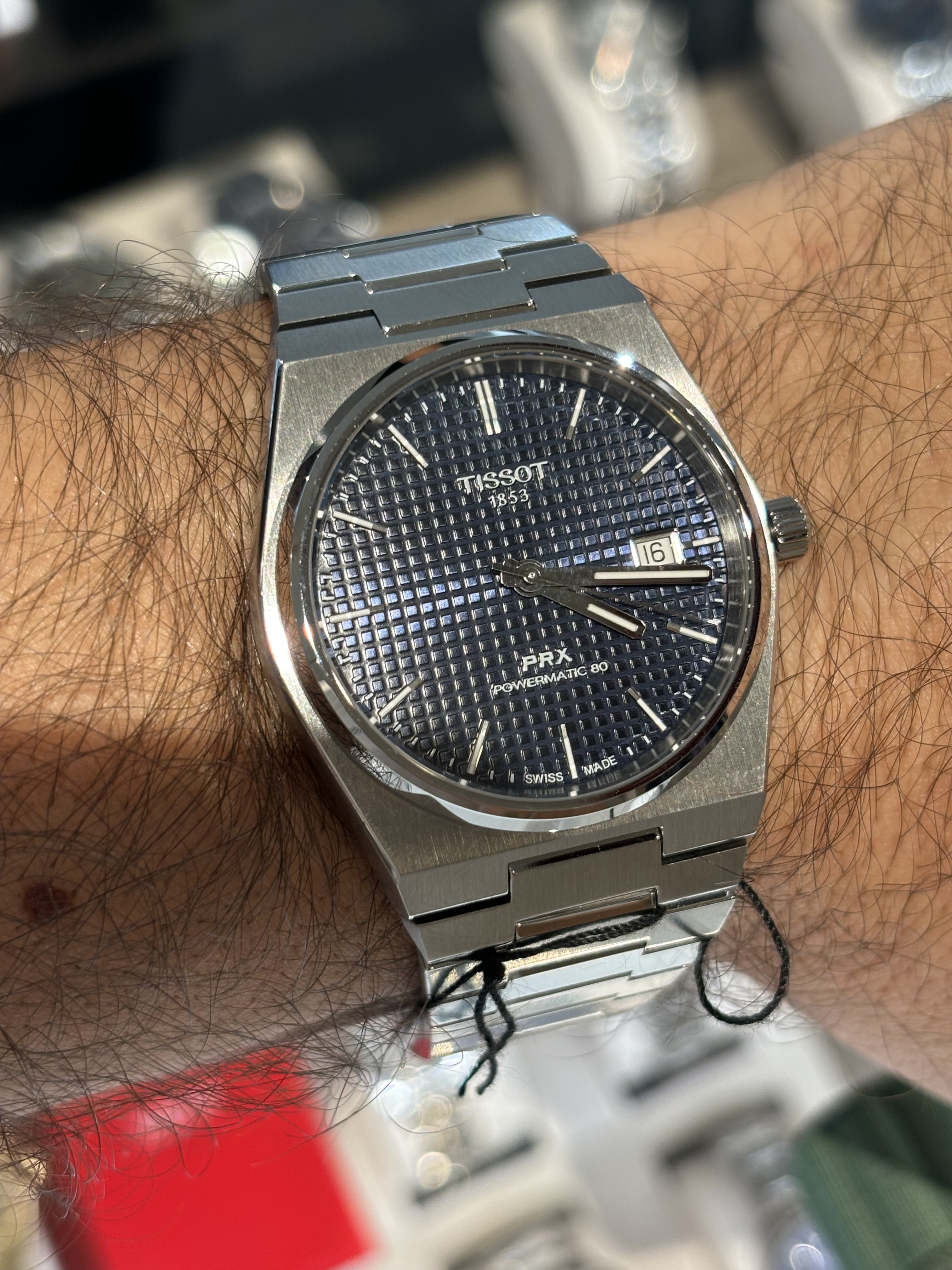 38mm Tissot PRX Titanium y Acero Damascus. El mismo que menciona @Airboy.