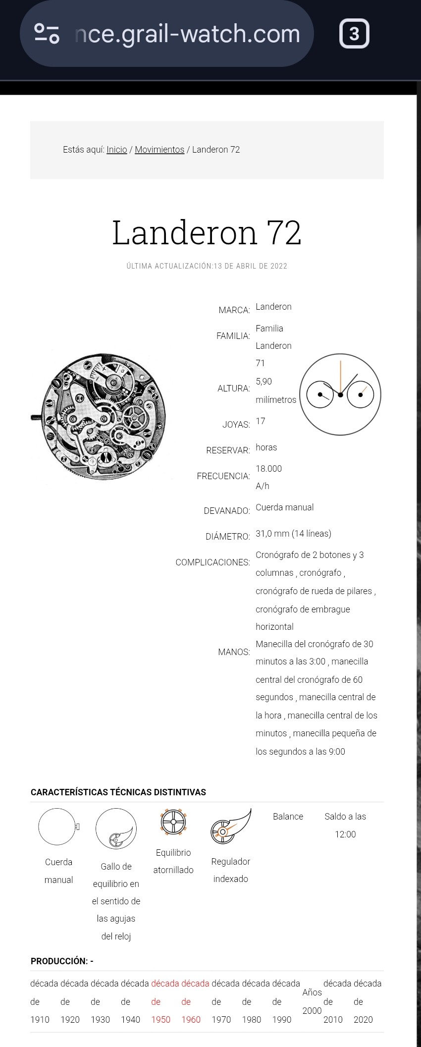 Bonito es un rato. A ver si alguien puede aclararme porque pone que monta un Landeron 72 automatico que va a 4hz, cuando el Landeron 72 es de cuerda manual y va a 18.800. Se trata de otro tipo de movimiento y te lo venden bajo el mismo nombre? Y efectivamente, el precio me parece una fumada considerable.