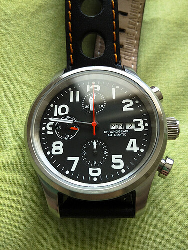 Detalle de la hebilla firmada (la correa que lleva ahora no es la original, pero con el pespunte naranja creo que queda muy bien):