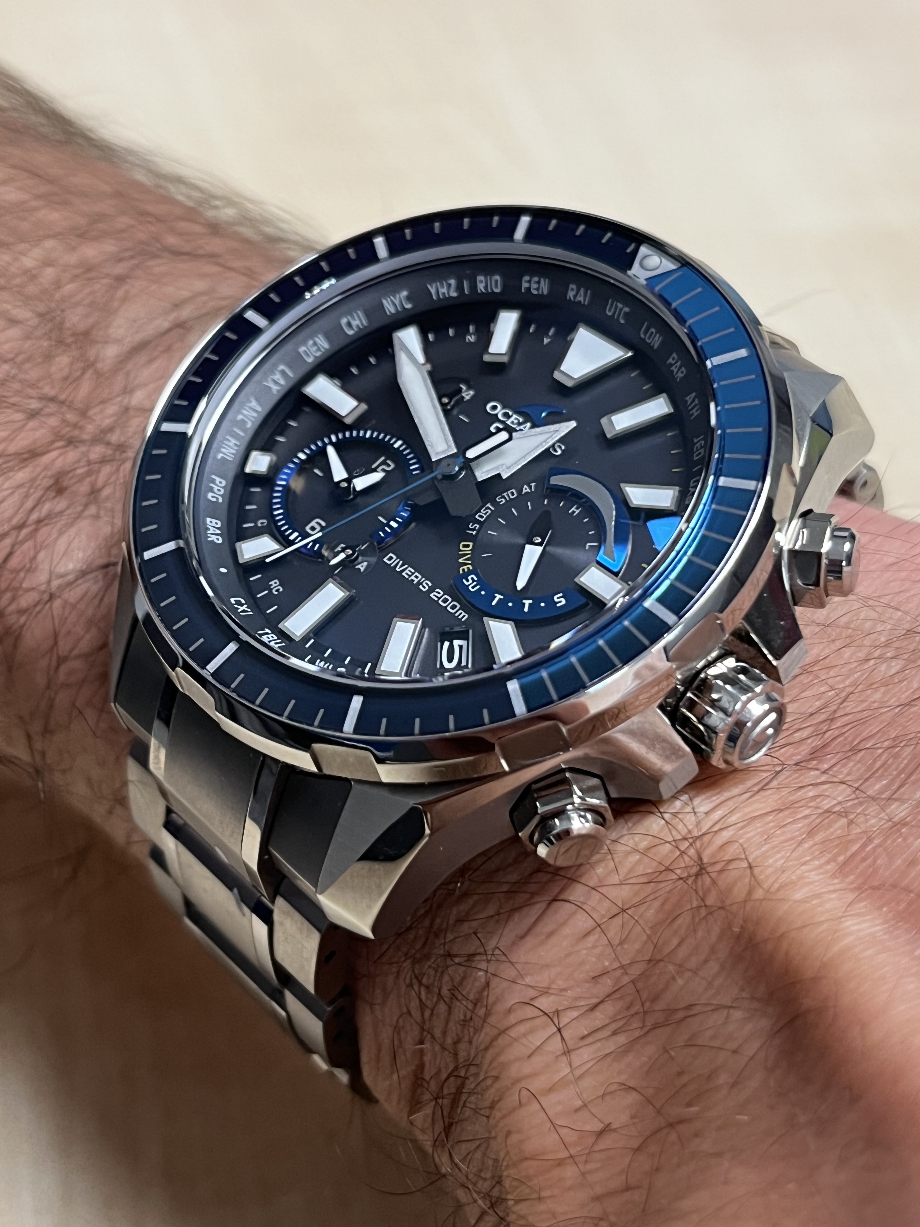 Buenos días, los oceanus son tremendos, pero fuera de mi alcance, éste en particular el bisel me parece cojonudo además de un dial muy bonito, en fin otro por el que babear y van…