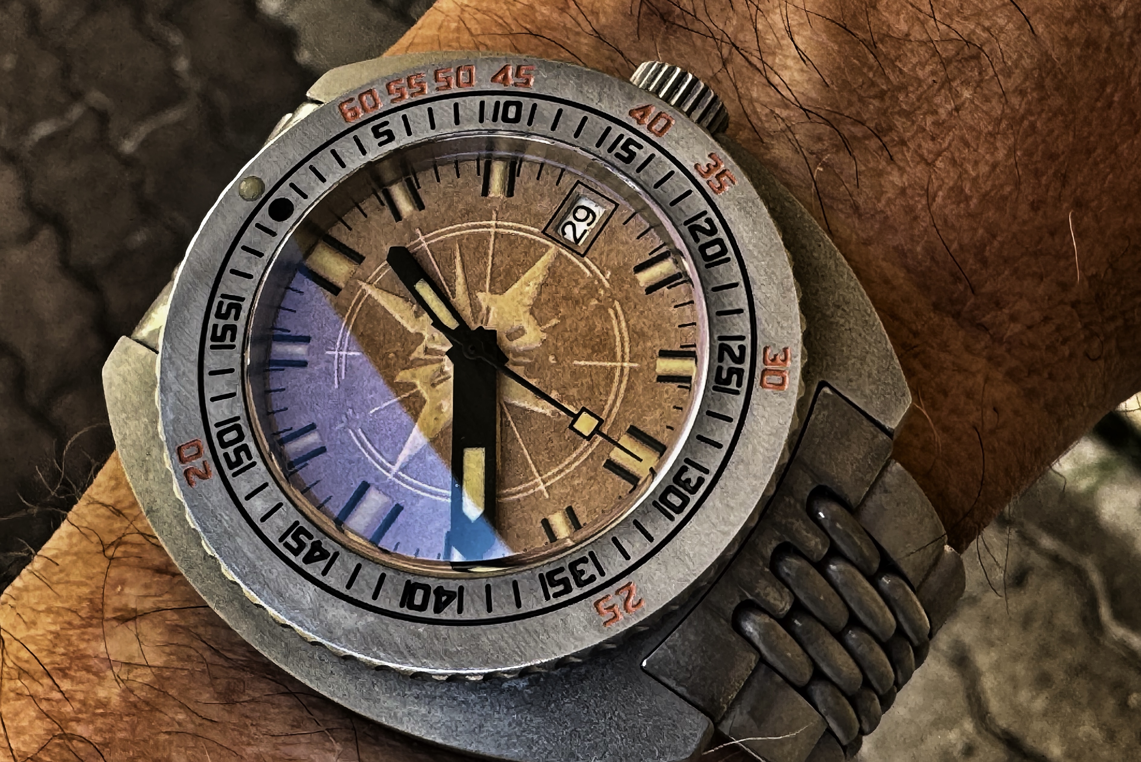 Una cuestión: ¿Alguien ha envejecido alguna esfera y agujas y lumen con café y betún de judea con aguarrás? Tipon Laco Erbstück.